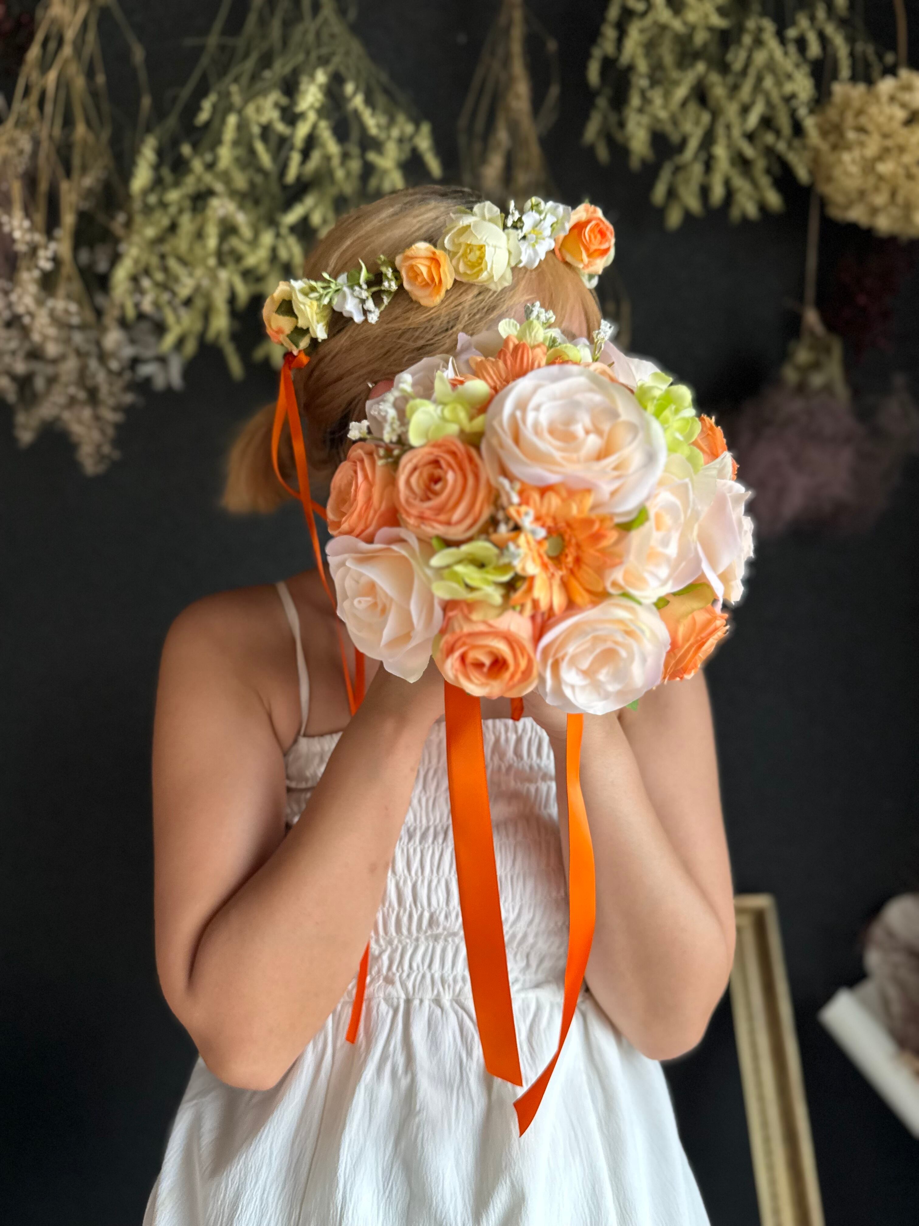 【造花の花冠】オレンジ小花のナチュラル花冠《キッズ撮影・夏婚・前撮りに》