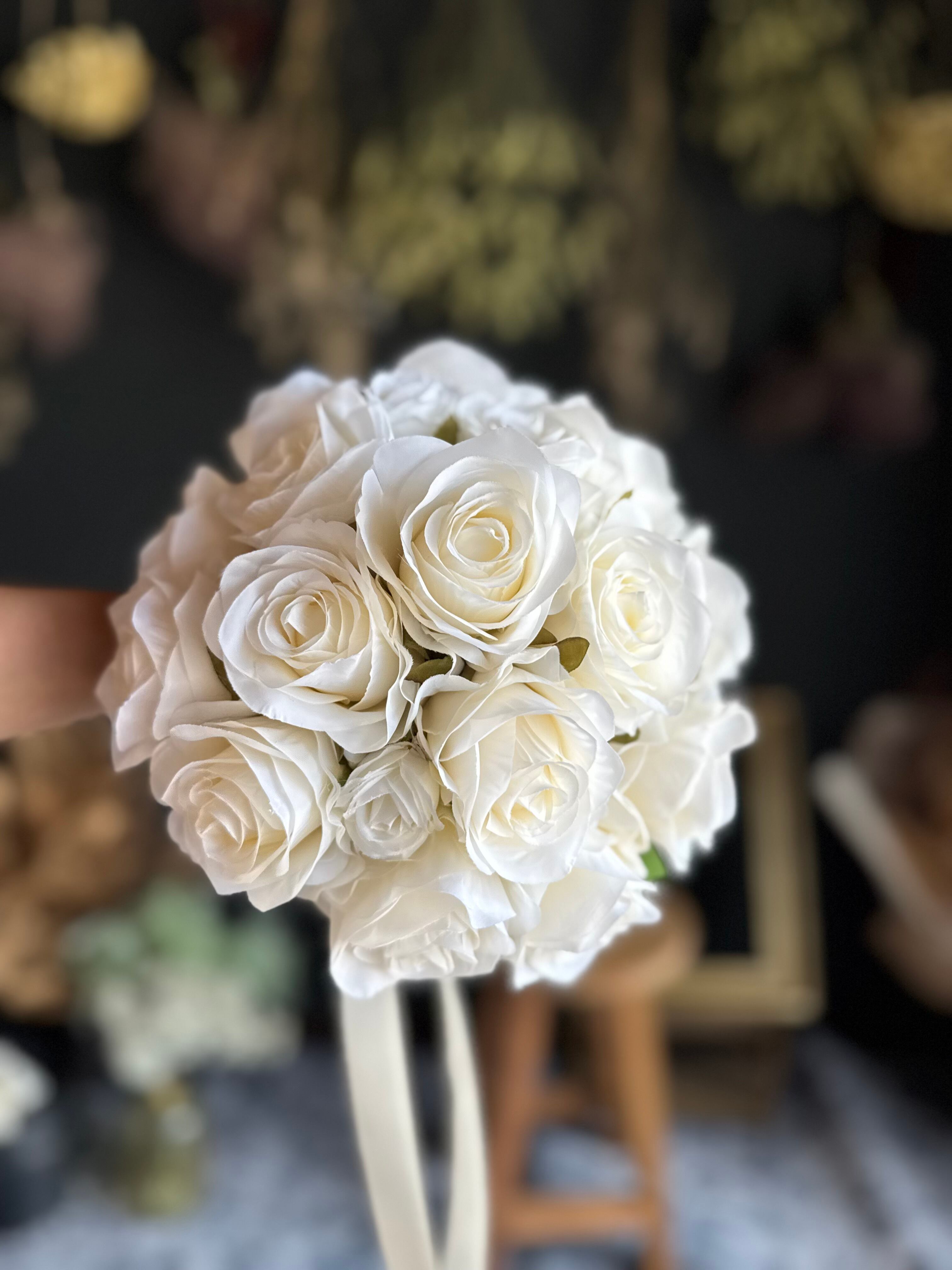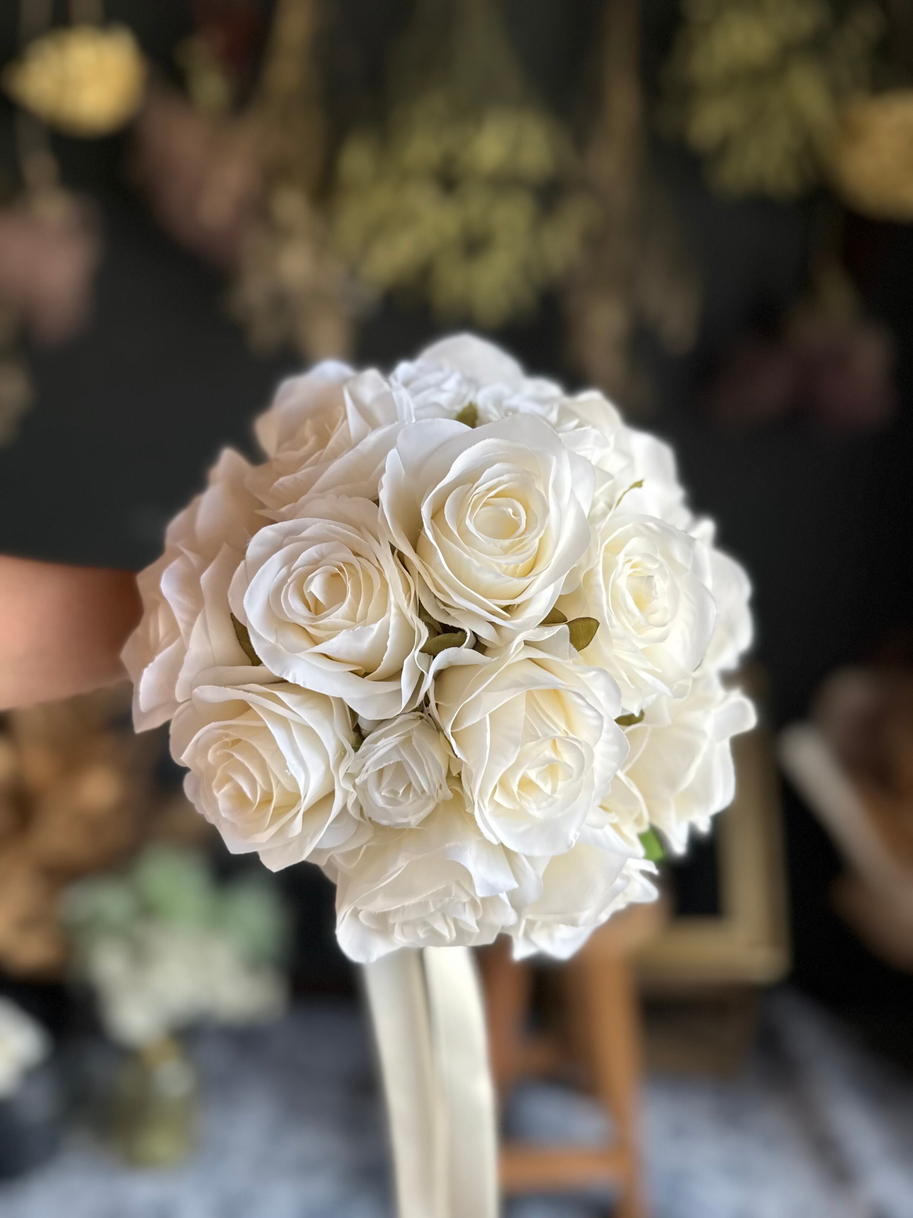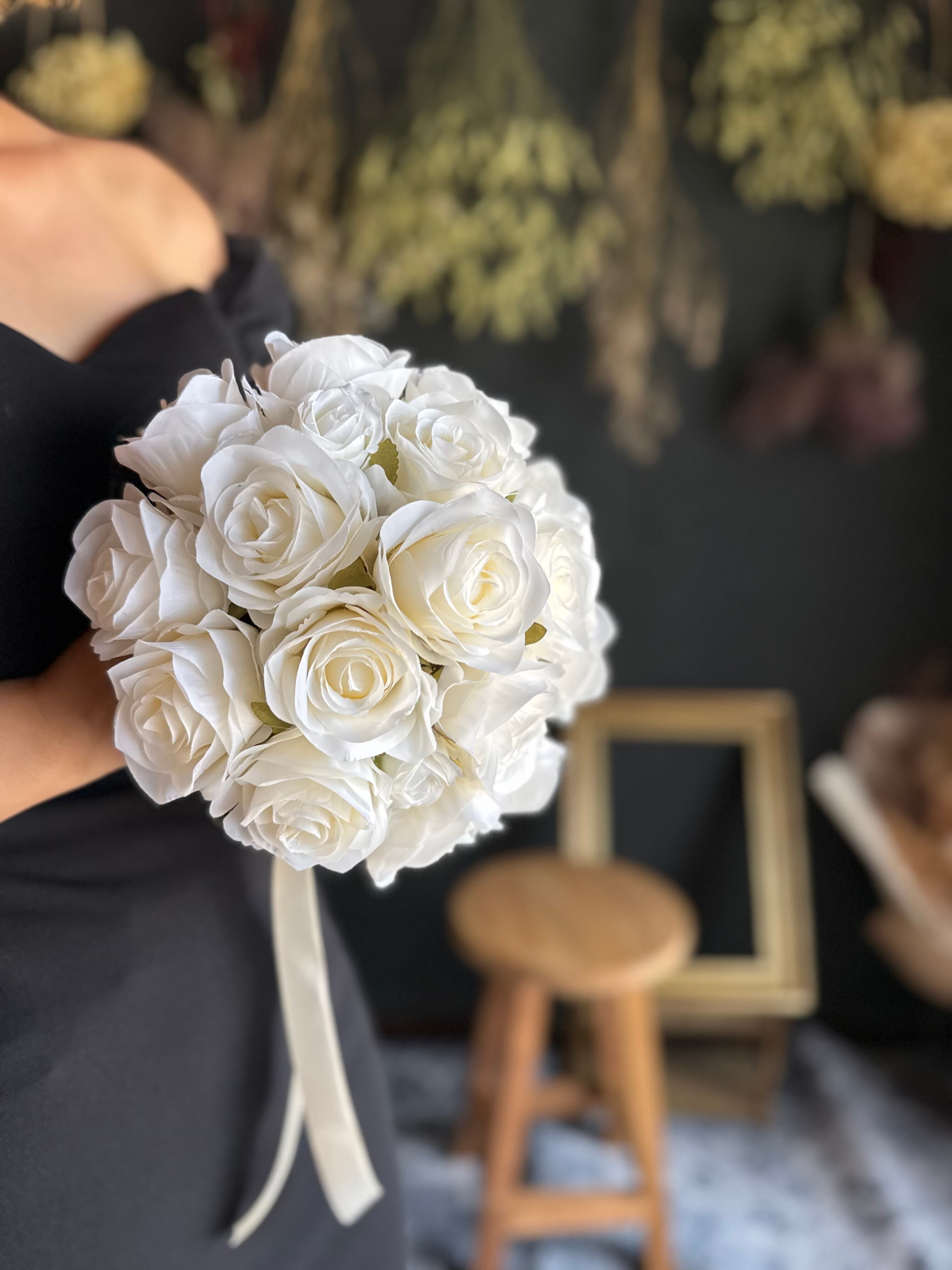 アイボリーのバラは清楚で品格があり、特別な日の演出にぴったりです♪シンプルで持ちやすく、ウェディングにぴったりのブーケです♪