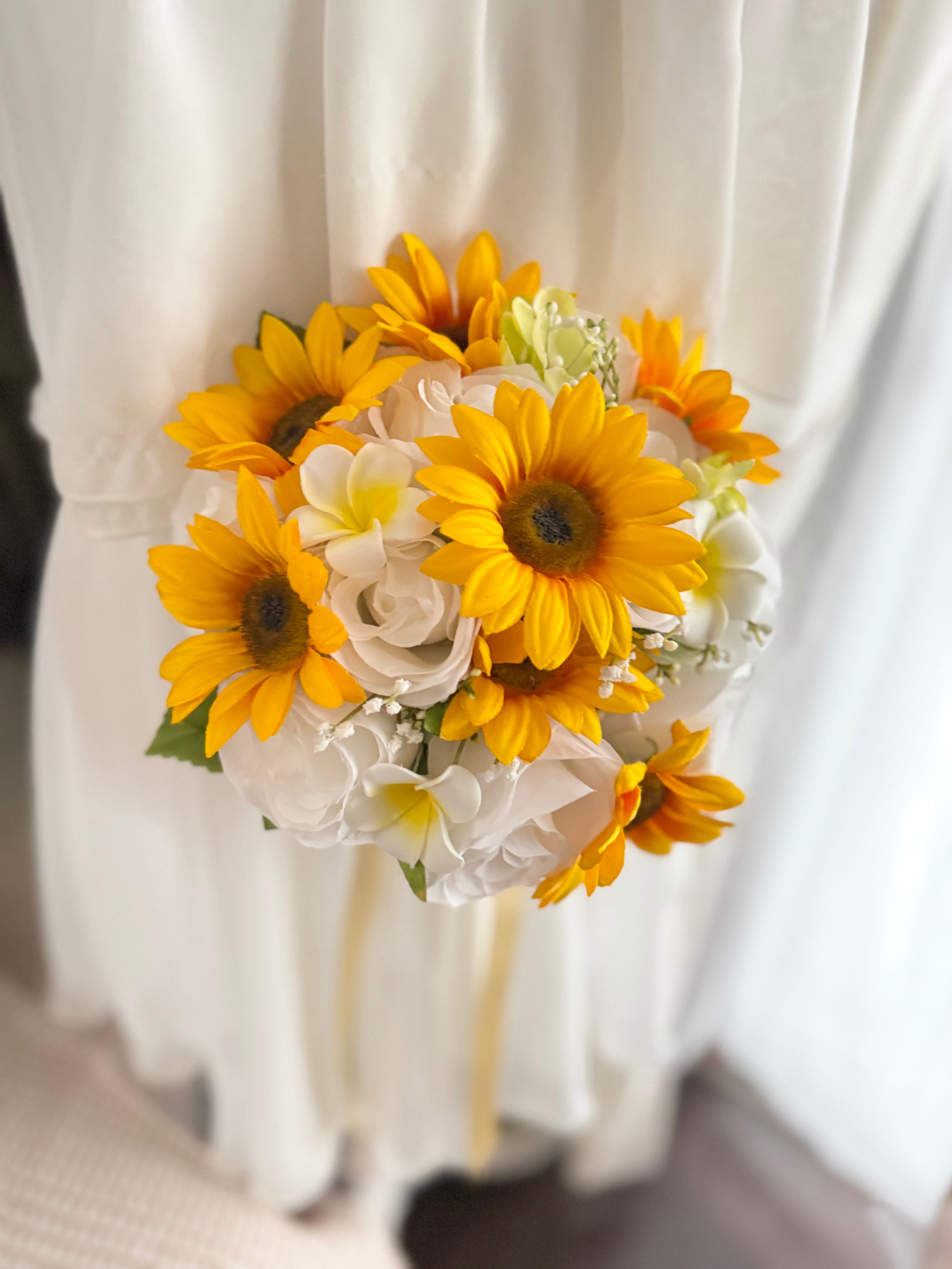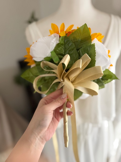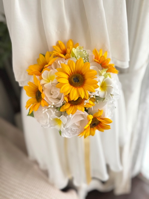 ひまわり好きな方にぜひ!ウェディングドレスに合わせやすいデザインです•*・