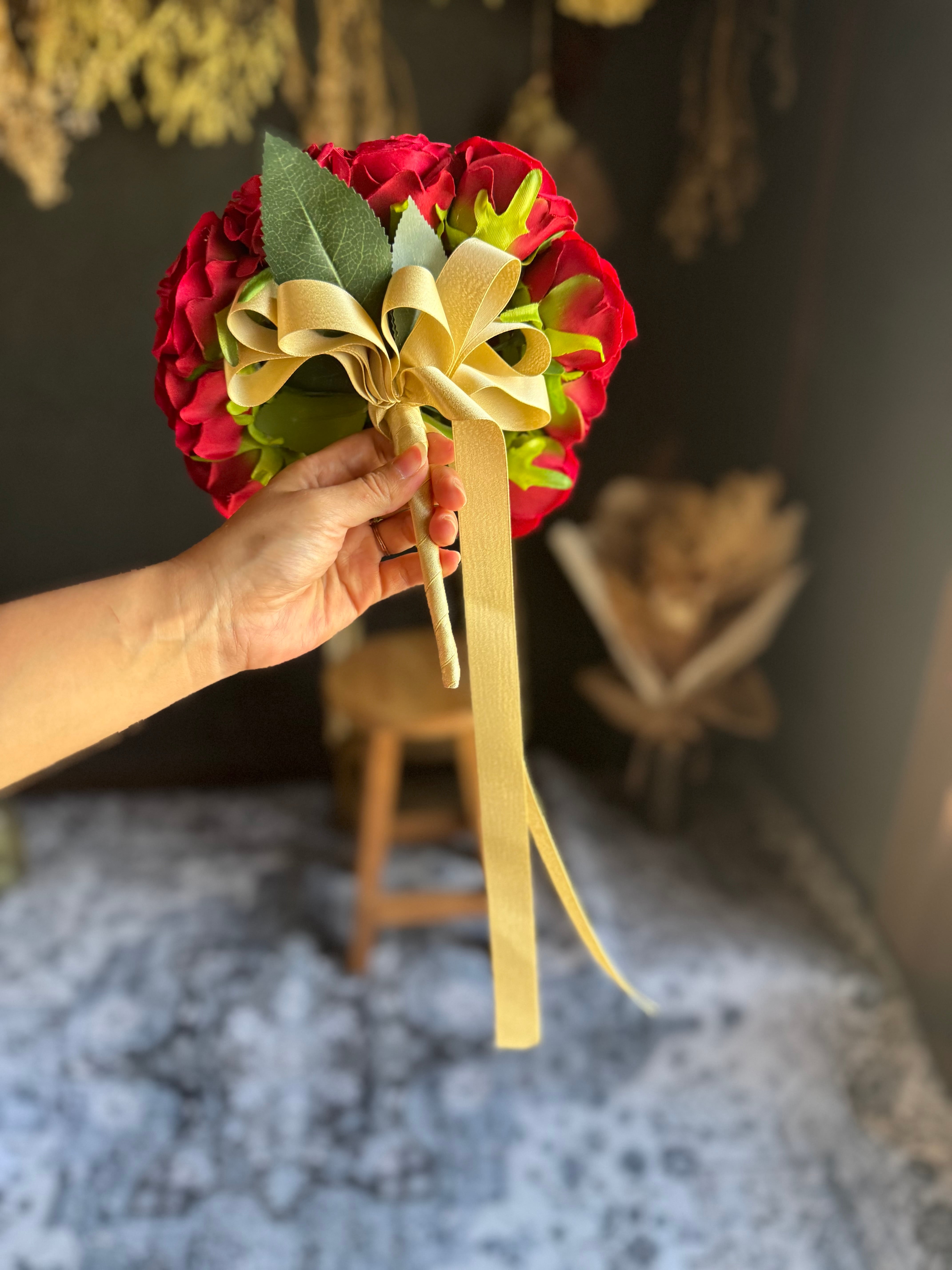 ラウンドブーケ、キャスケードブーケは式後、お部屋に飾れるようアレンジ出来るようになっています(*^^*)アレンジの仕方はYouTubeでもアップしてますのでほうき星 ブーケと検索ください♪