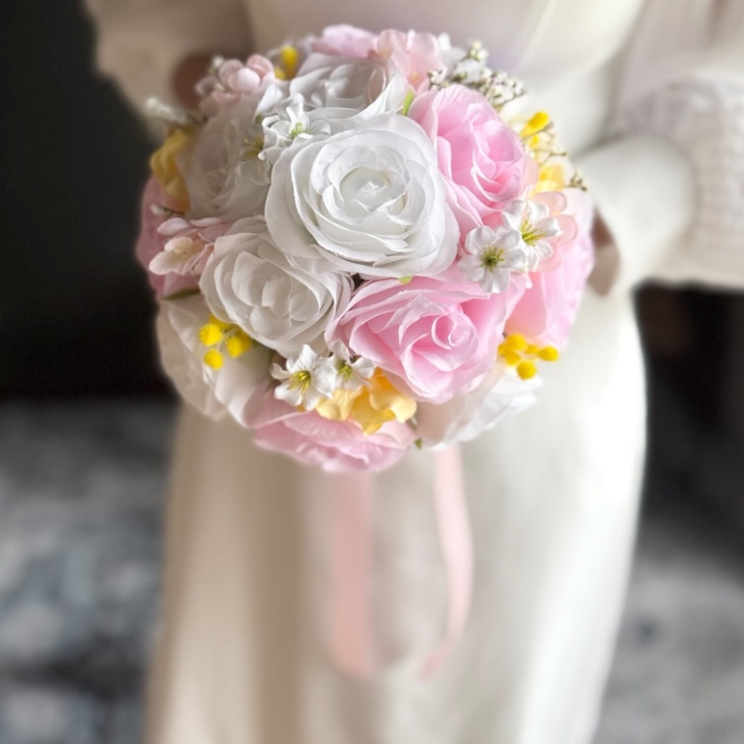 アーティフィシャルフラワー・造花のブーケです(‷ˊᗜˋ‷)ブートニア付き♪