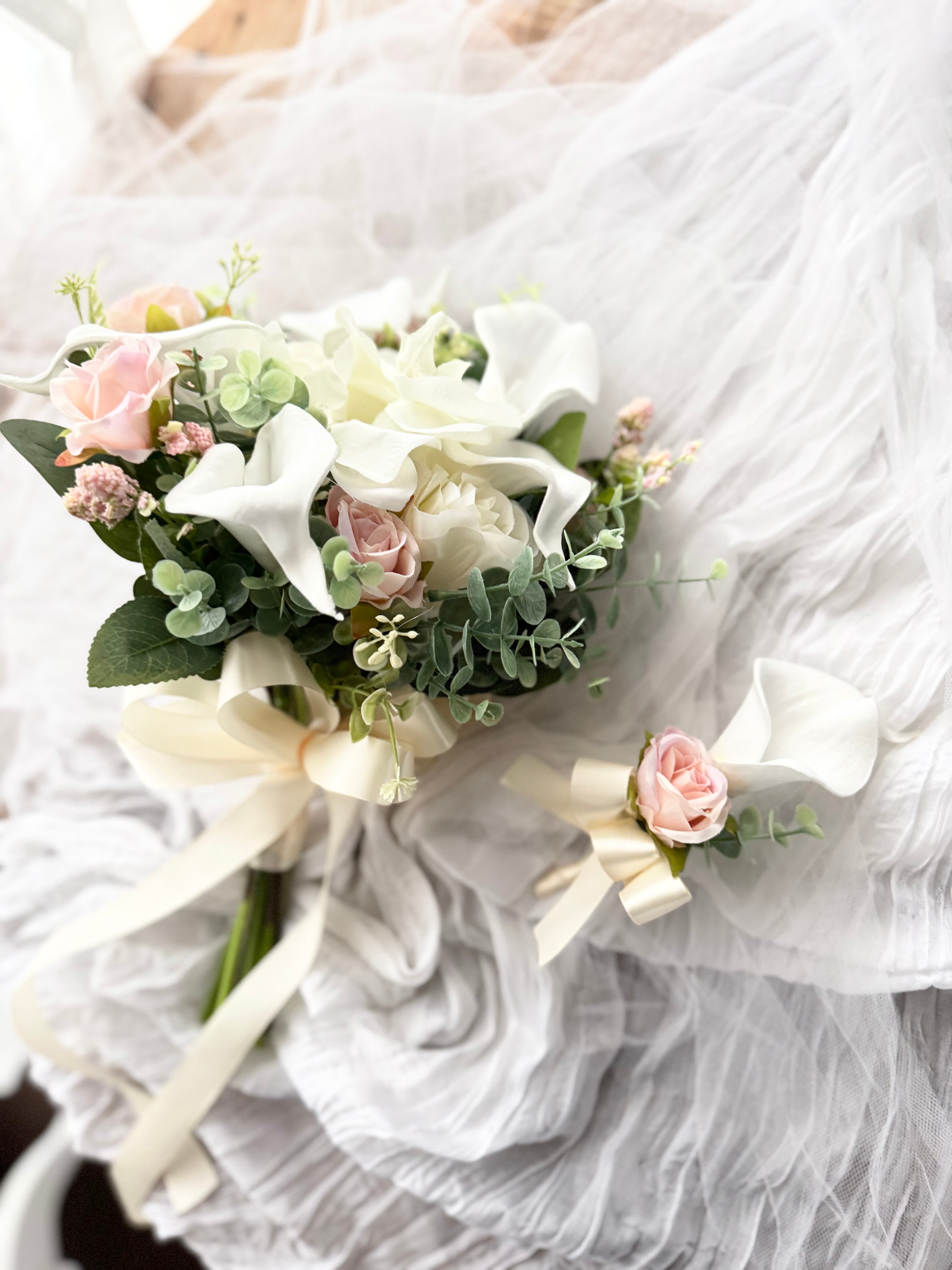アーティフィシャルフラワー・造花のブーケです(‷ˊᗜˋ‷)ブートニア付き