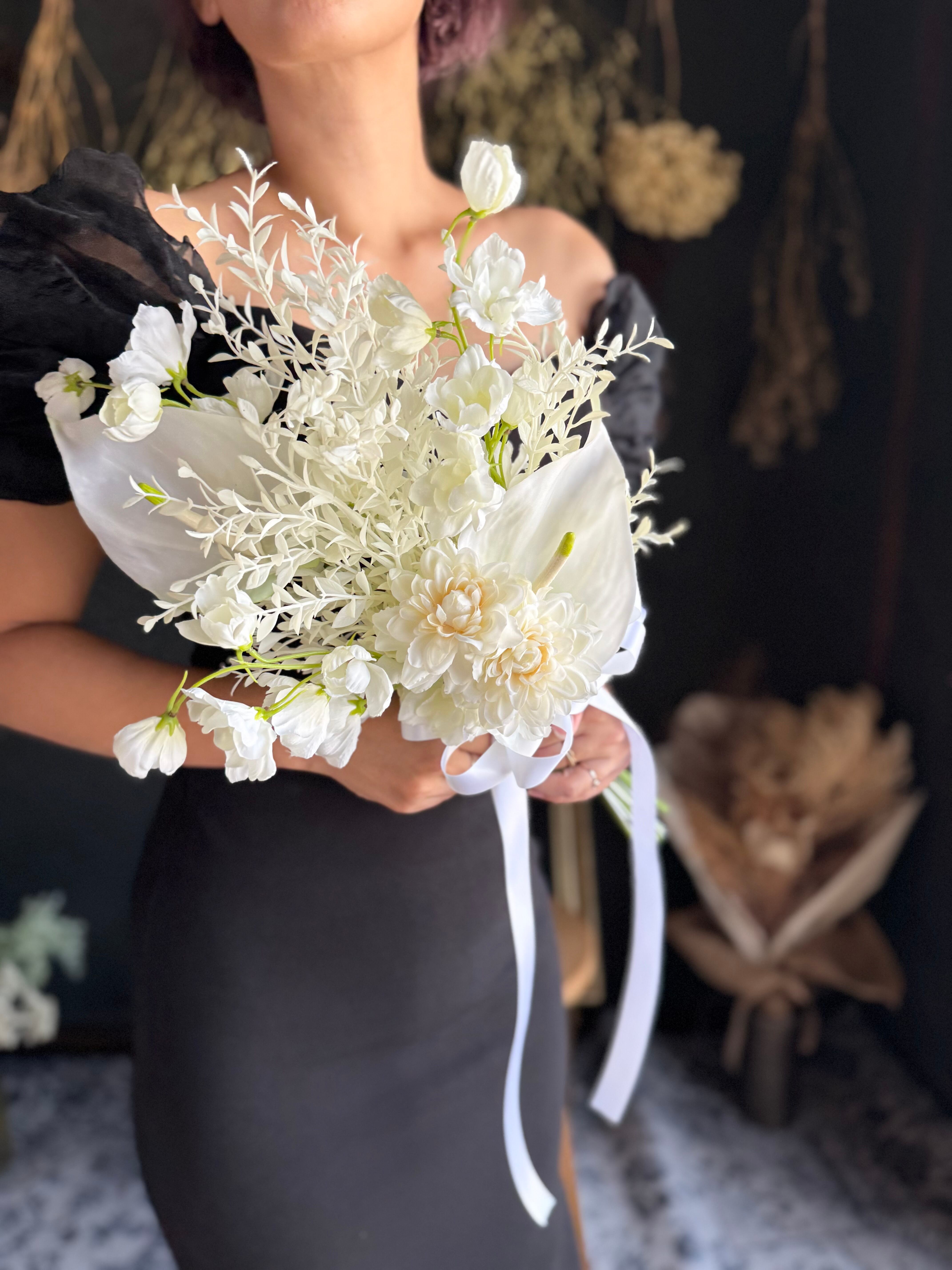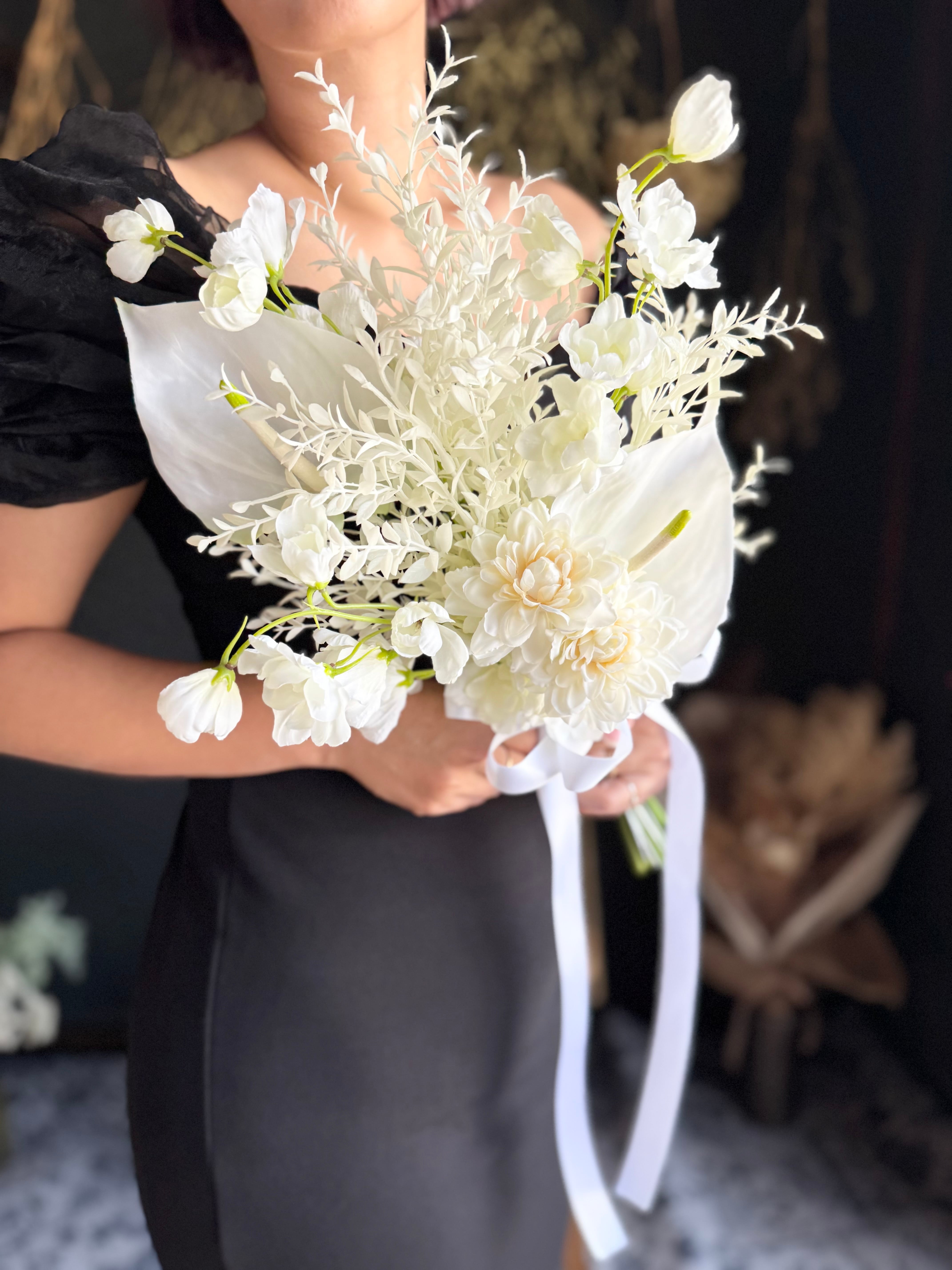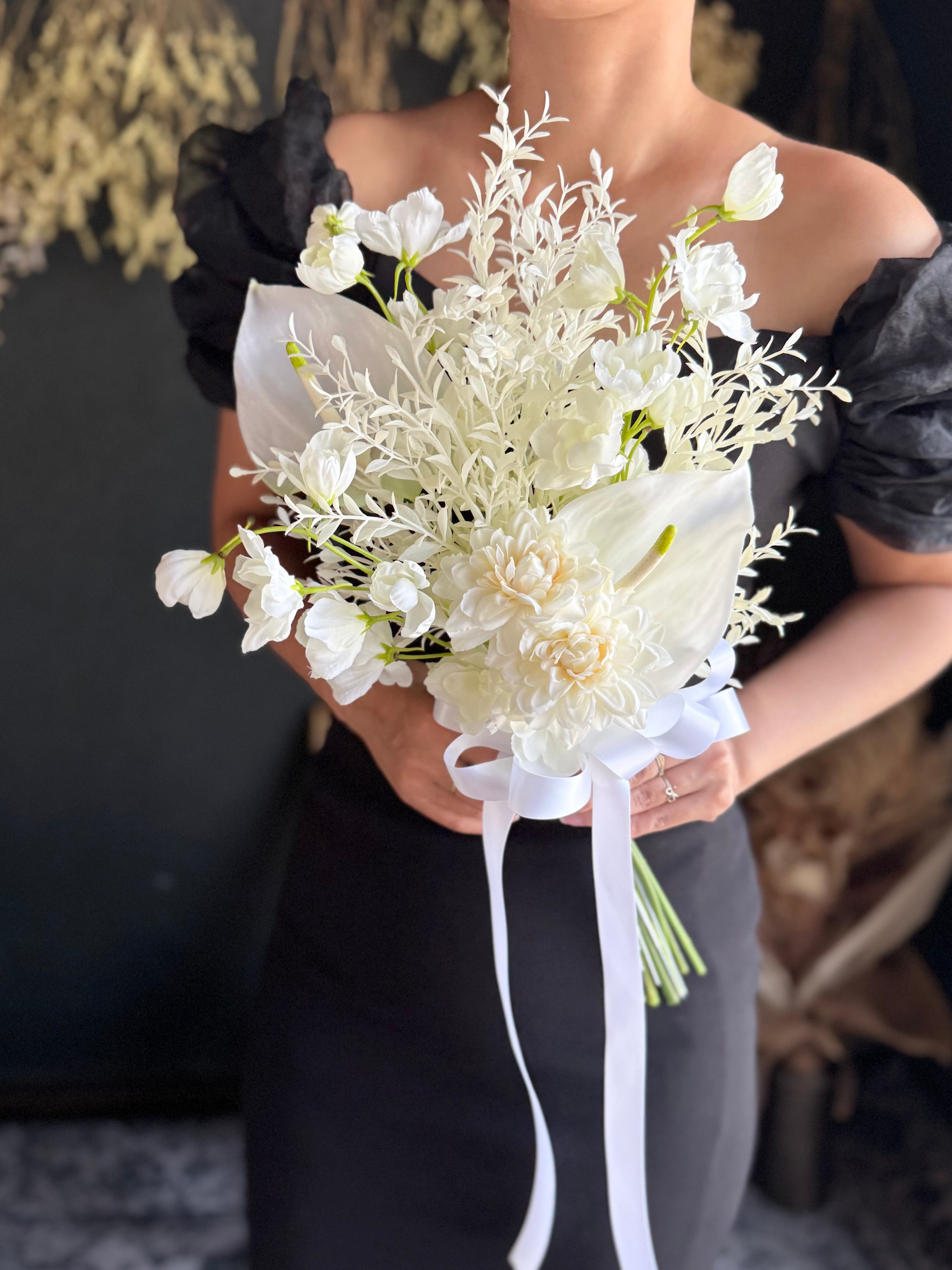 清楚さと洗練を併せ持つ、大人の花嫁にふさわしい一束。