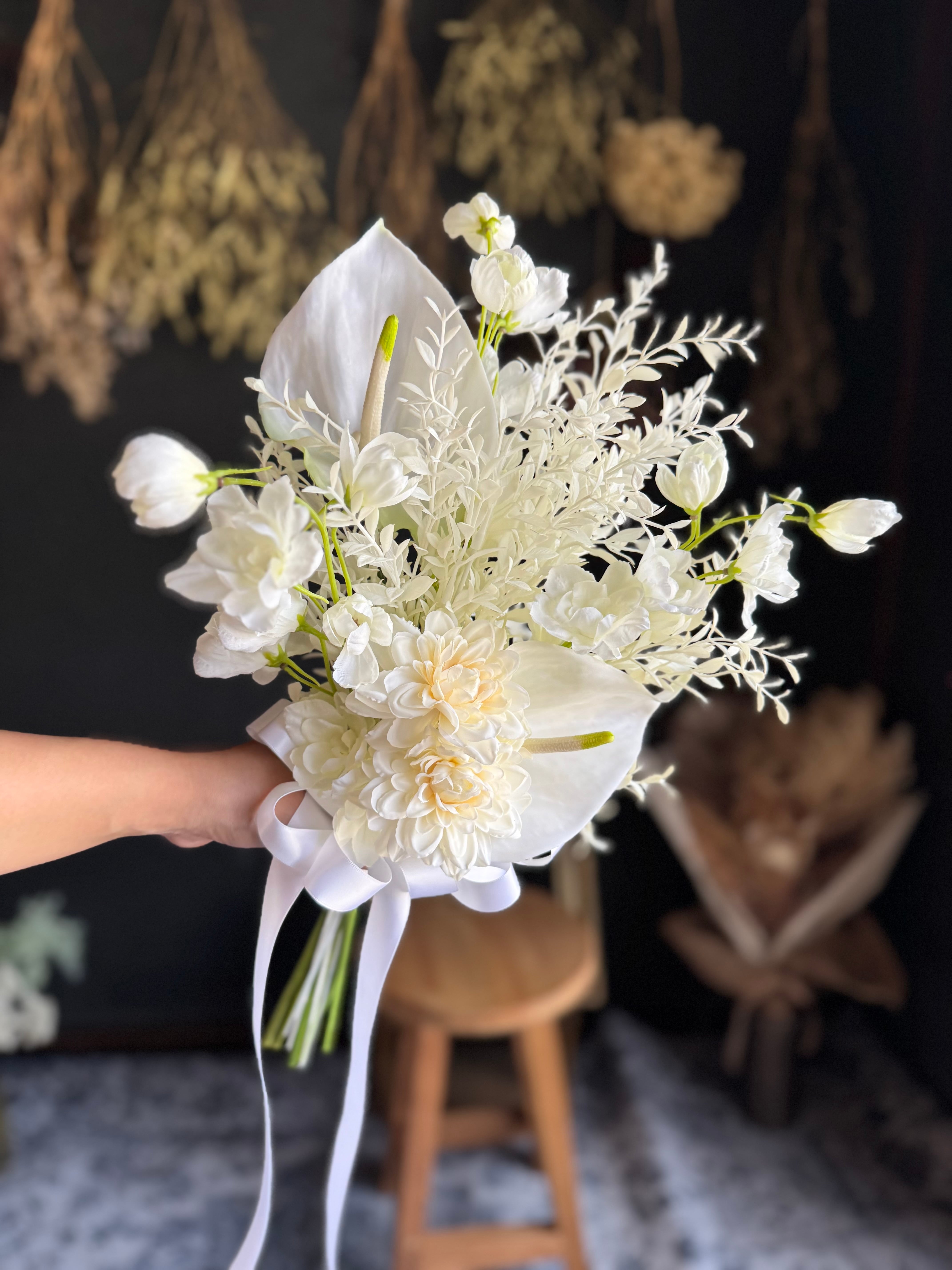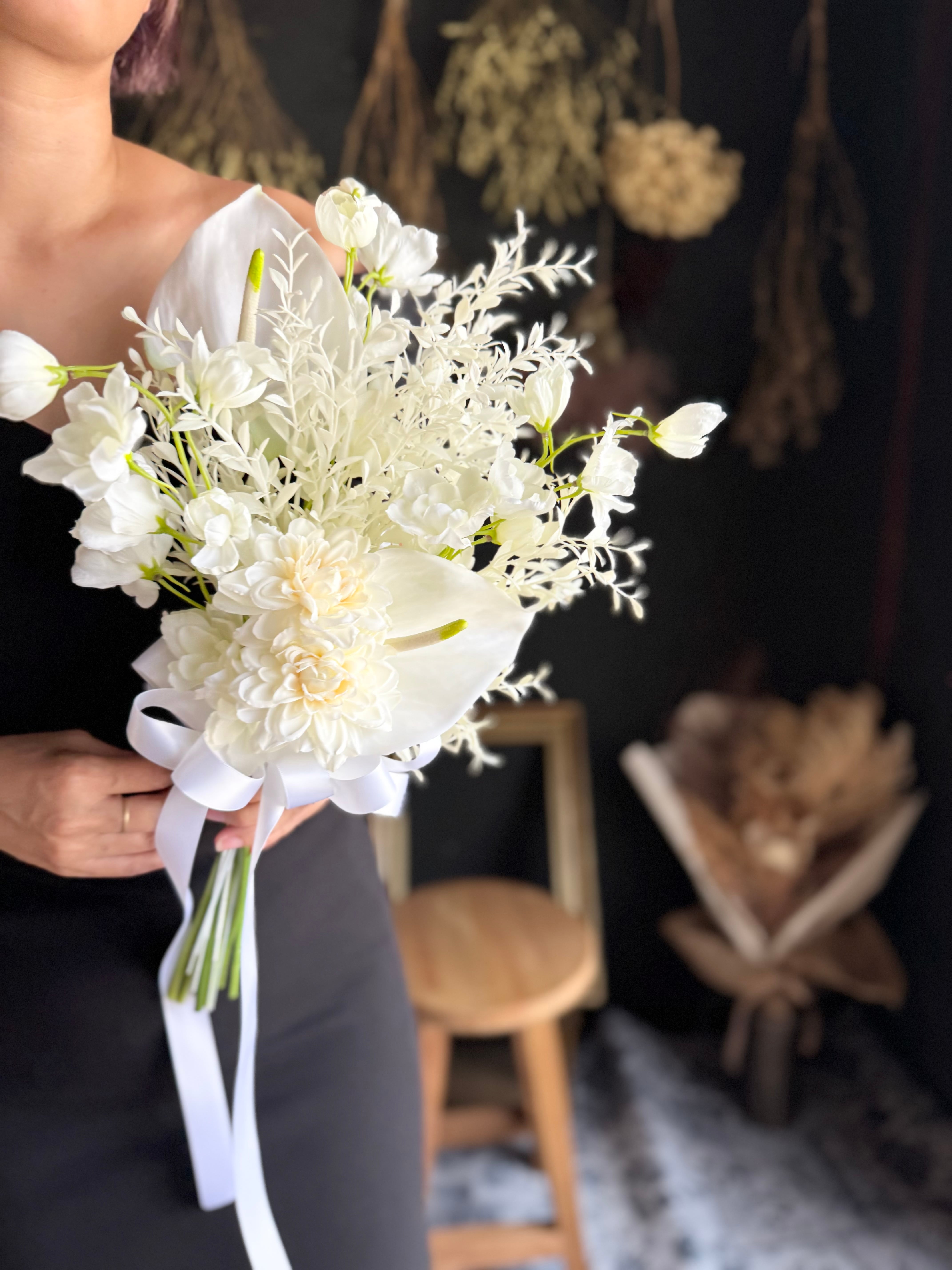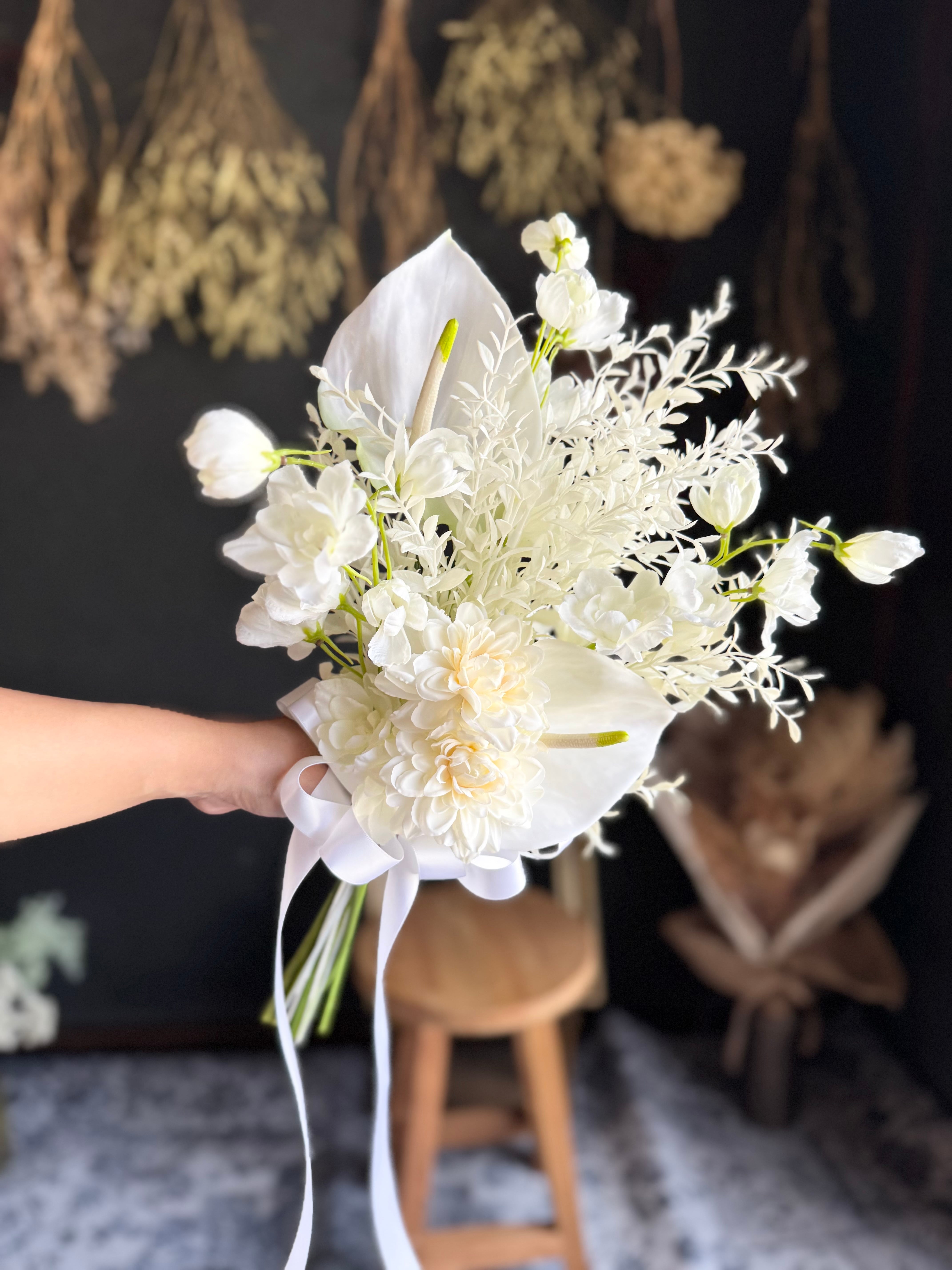 清楚さと洗練を併せ持つ、大人の花嫁にふさわしい一束。