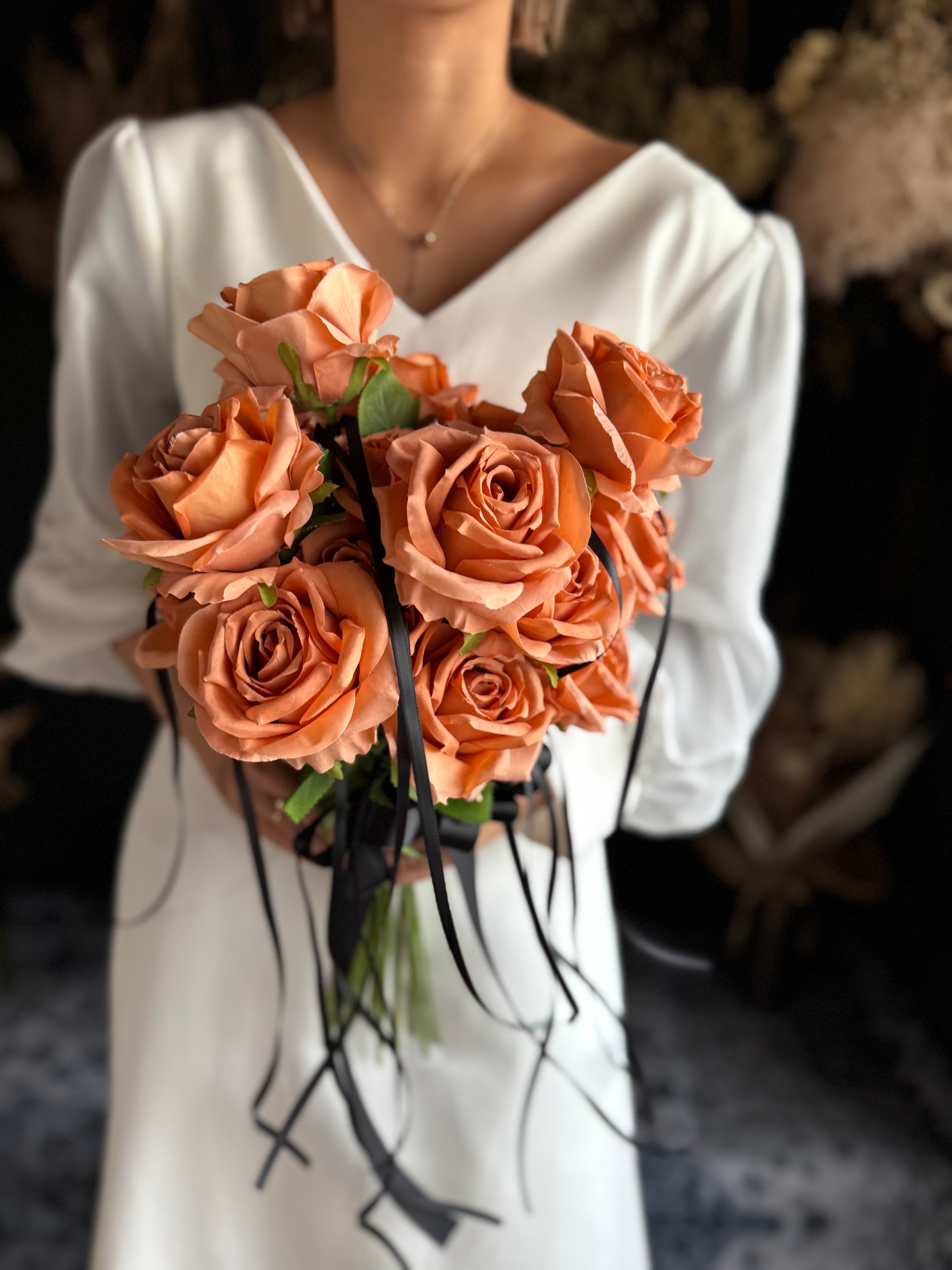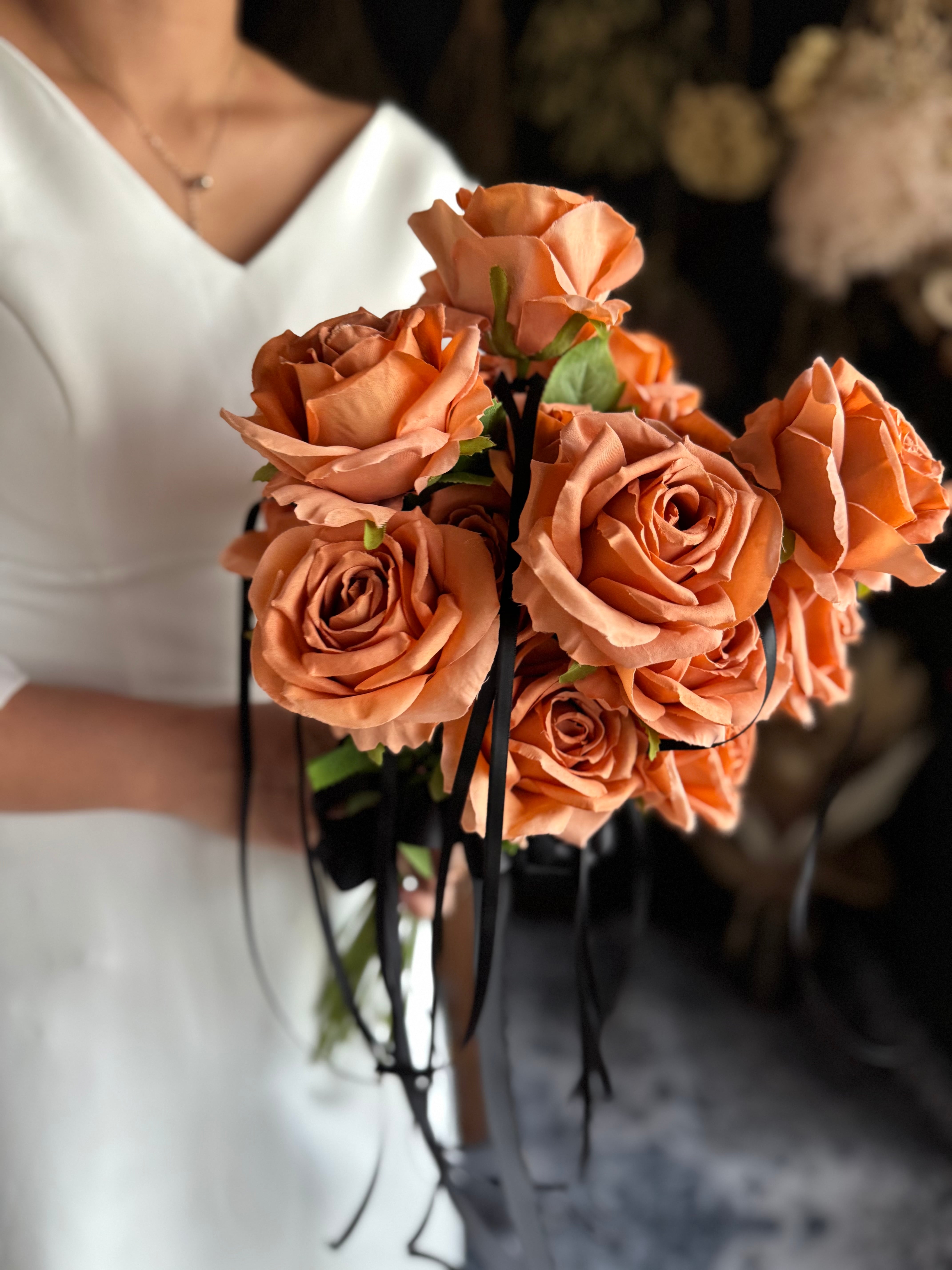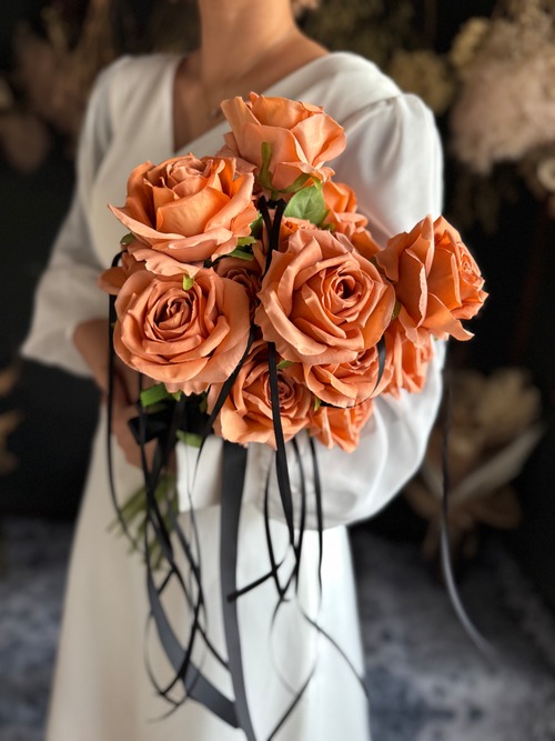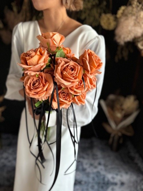 くすみ感のあるテラコッタカラーのローズを贅沢に束ね、