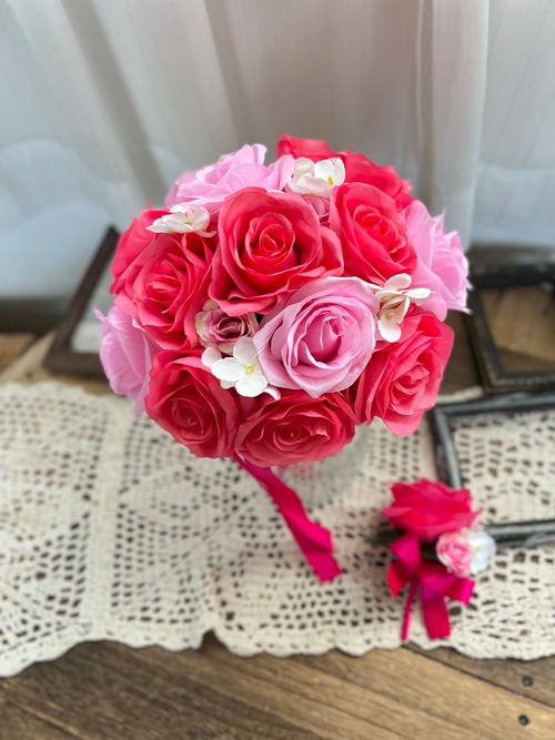 造花のブーケです(‷ˊᗜˋ‷)ブートニア付き
