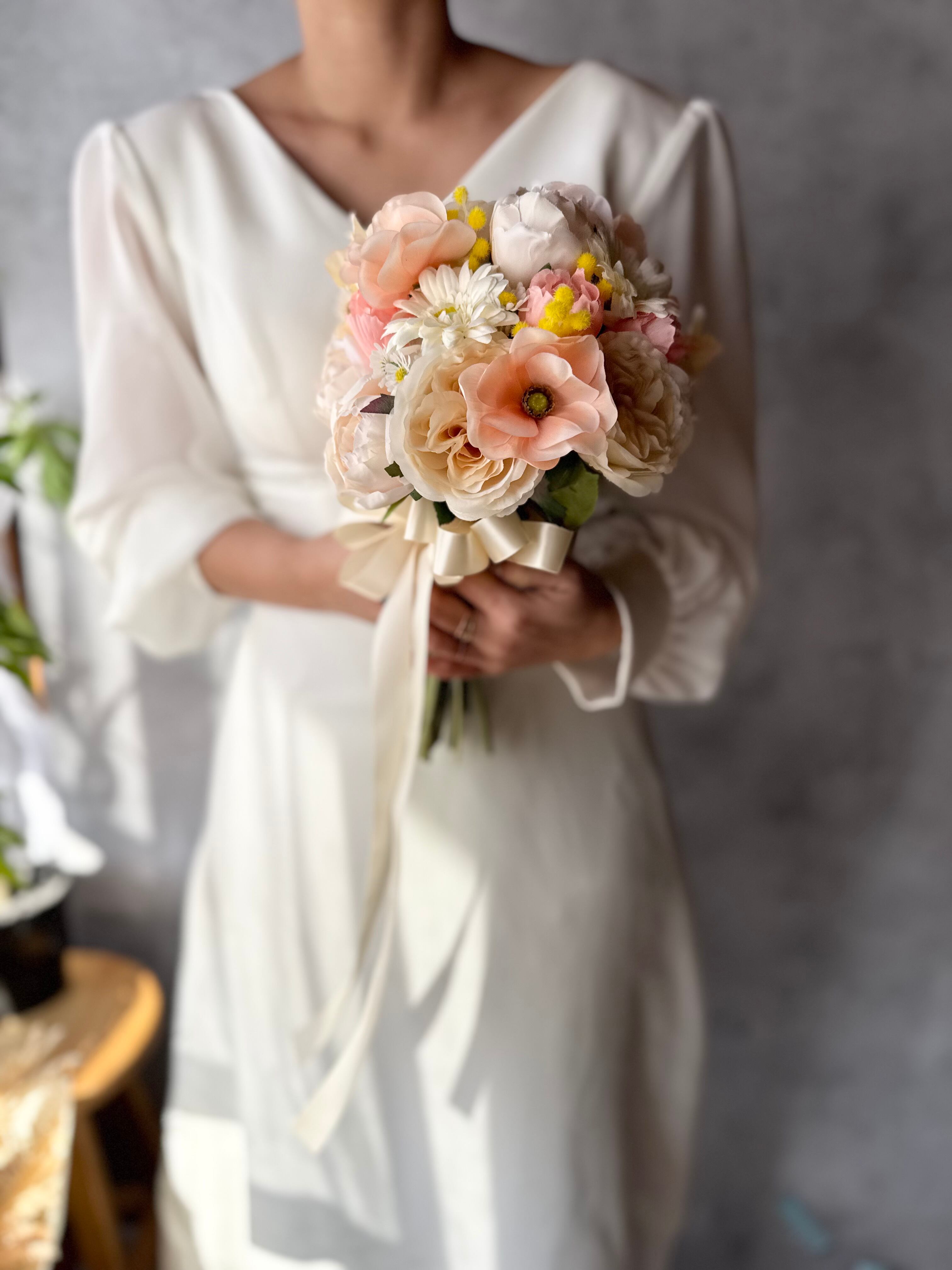 アーティフィシャルフラワー・造花のブーケです(‷ˊᗜˋ‷)ブートニア付き