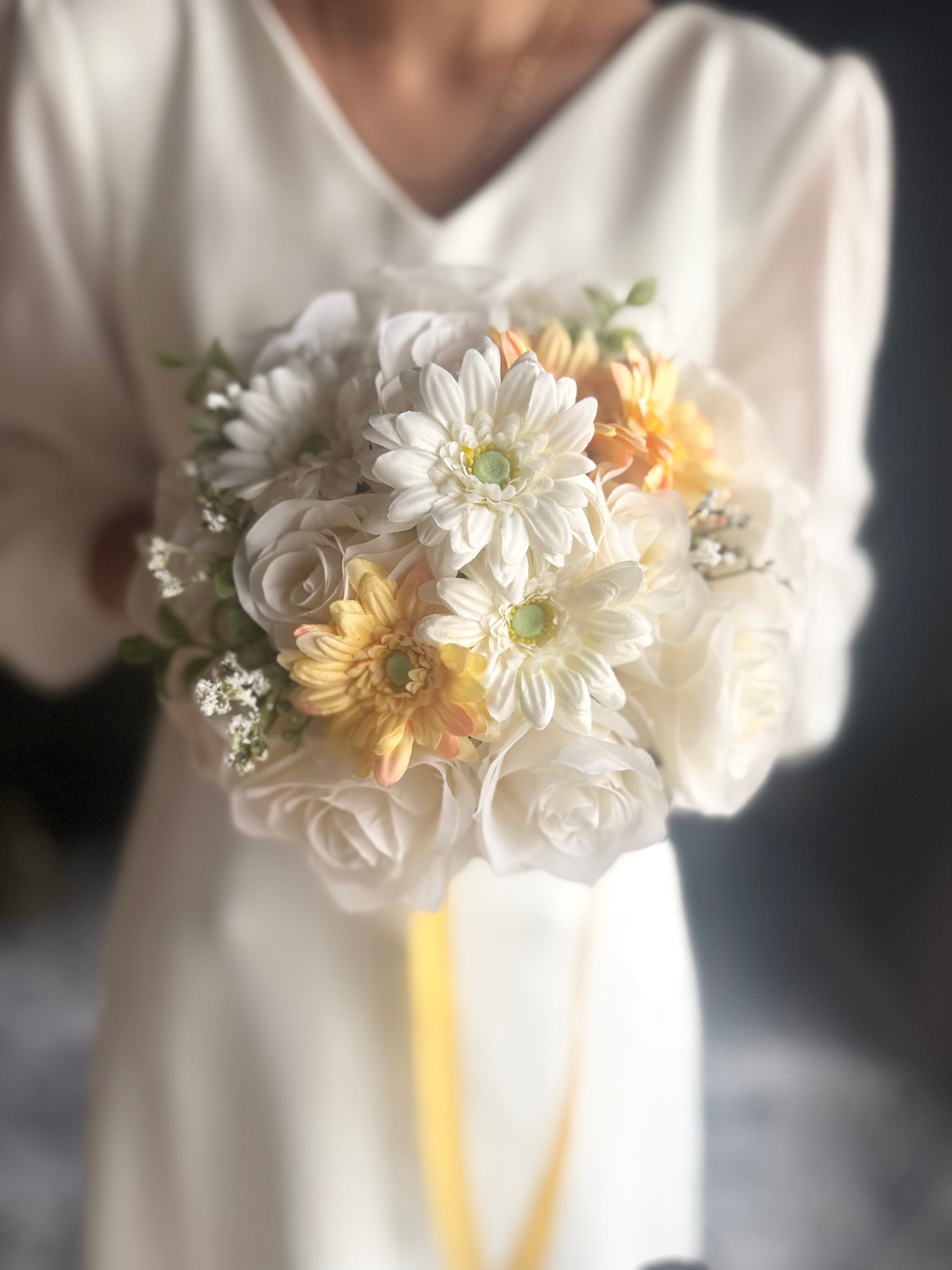アーティフィシャルフラワー・造花のブーケです(‷ˊᗜˋ‷)ブートニア付き