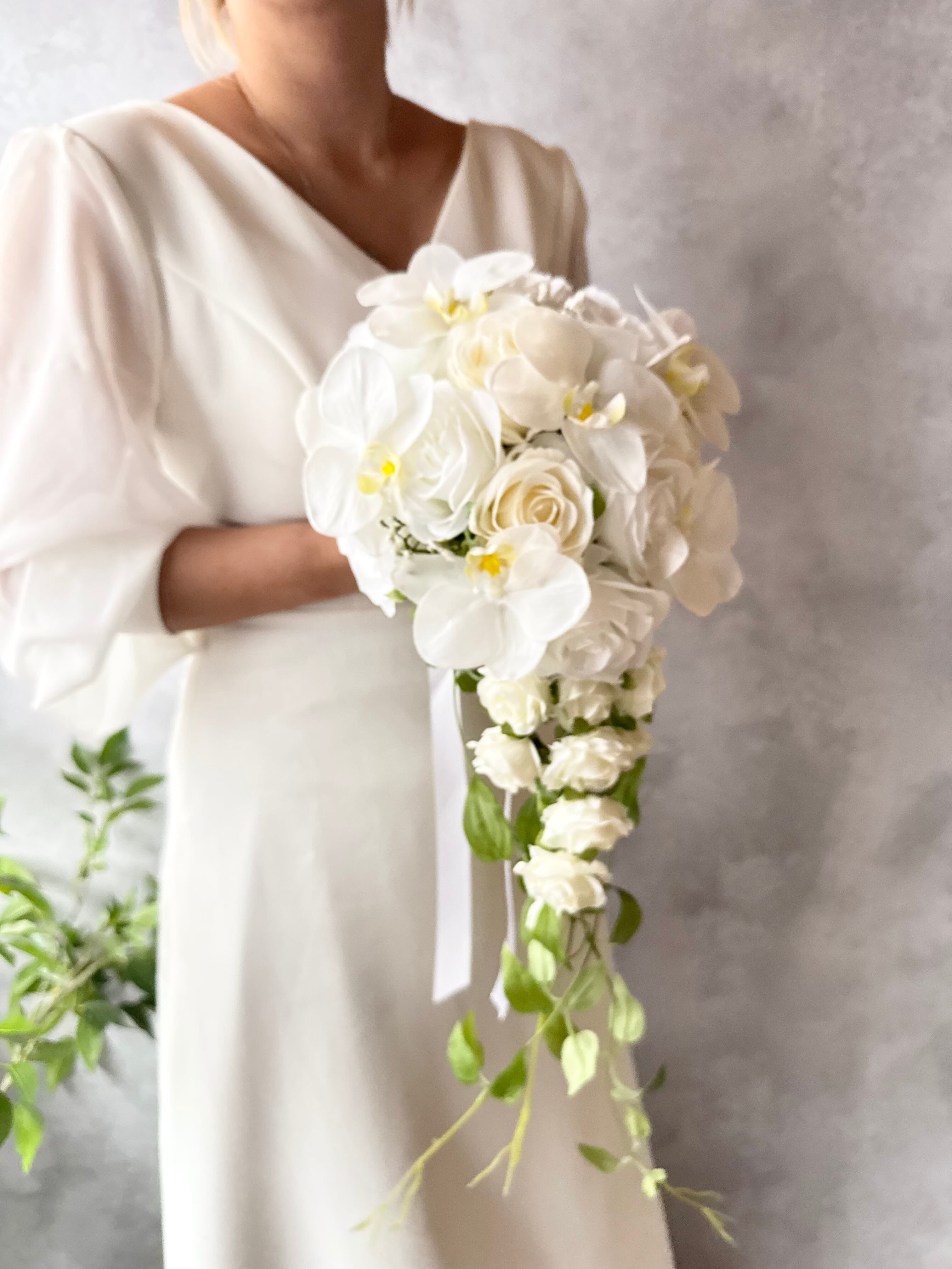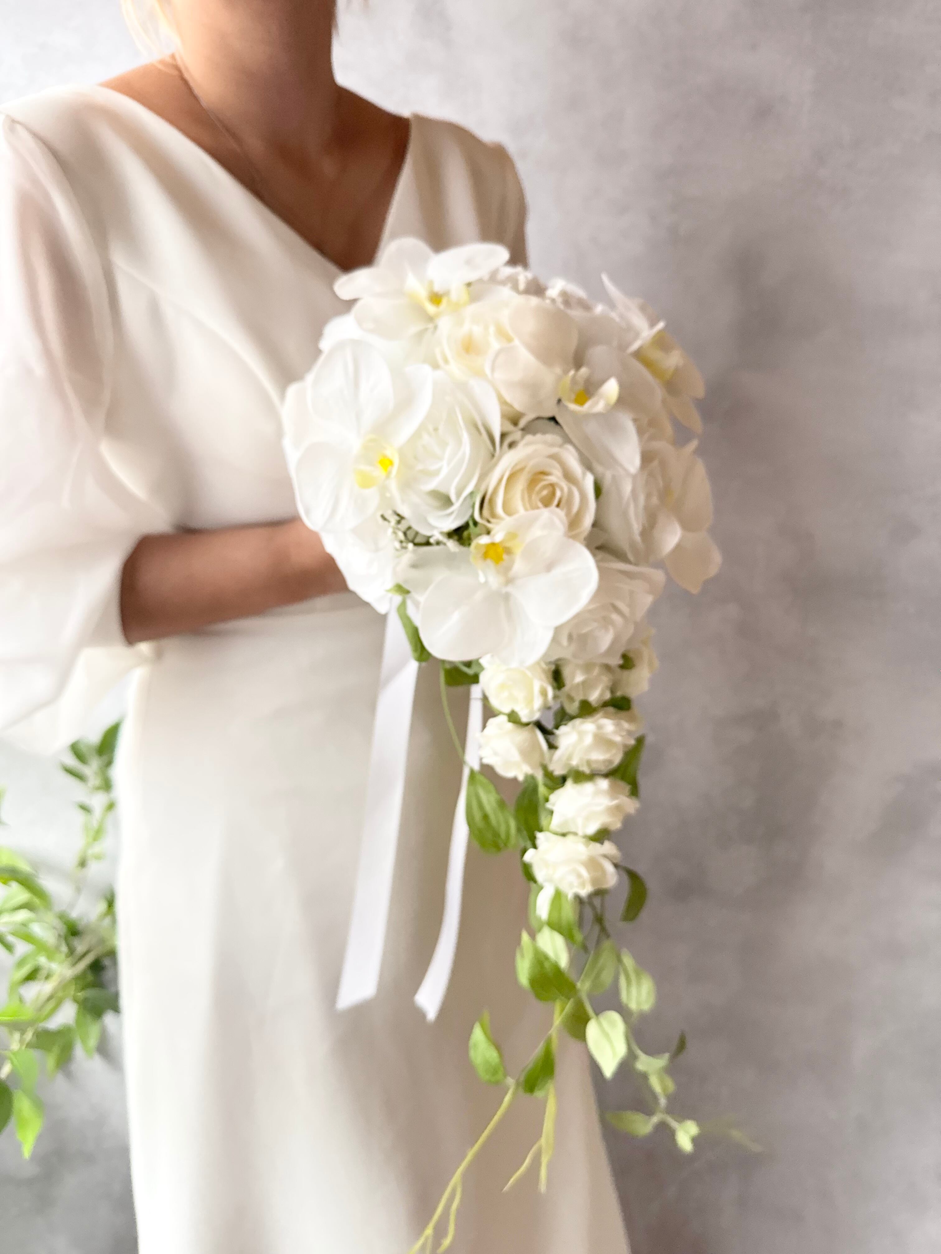 造花(アーティフィシャルフラワー)なので、前撮りや結婚式本番はもちろん、挙式後もそのままインテリアとして飾っていただけます。