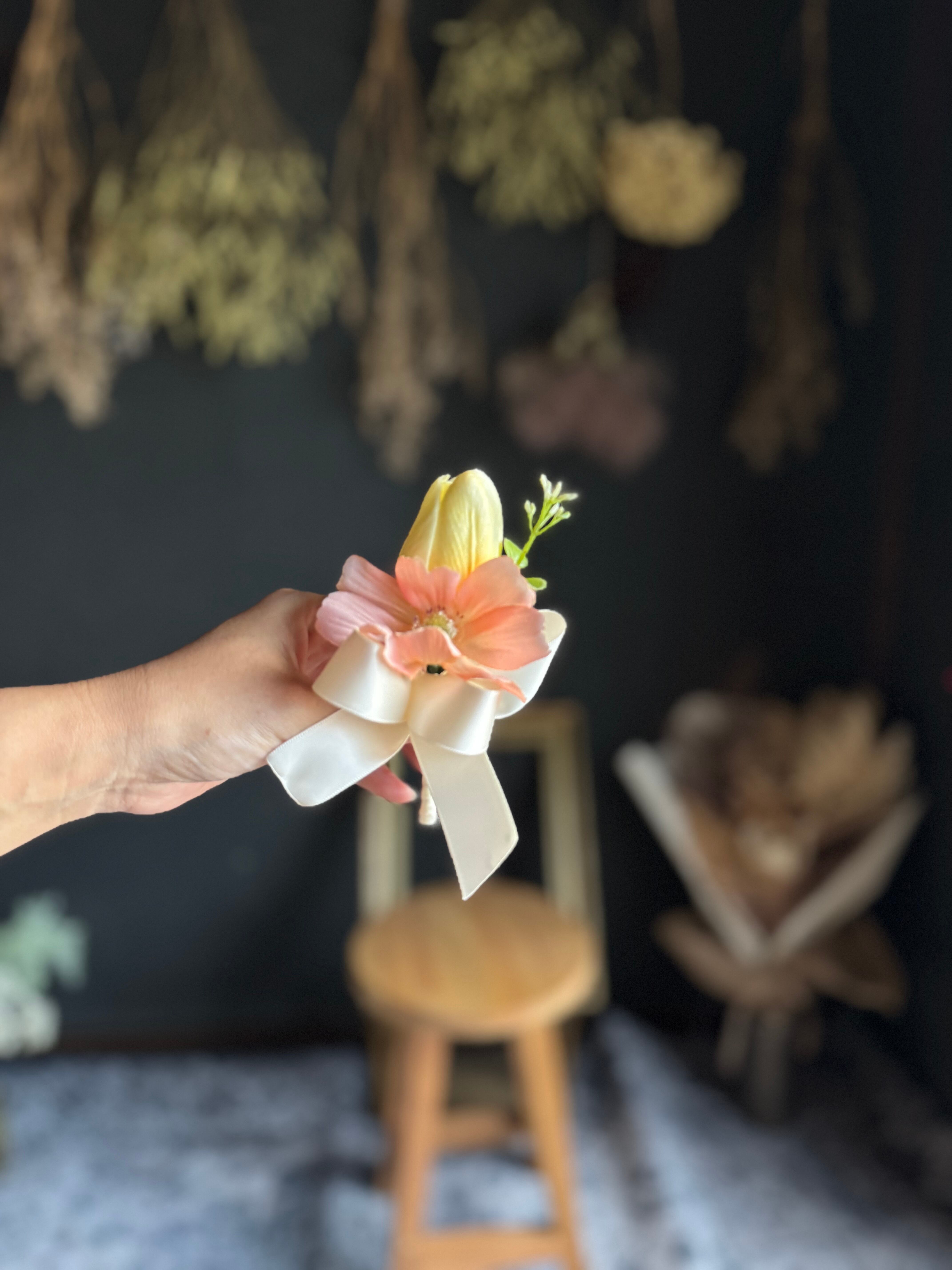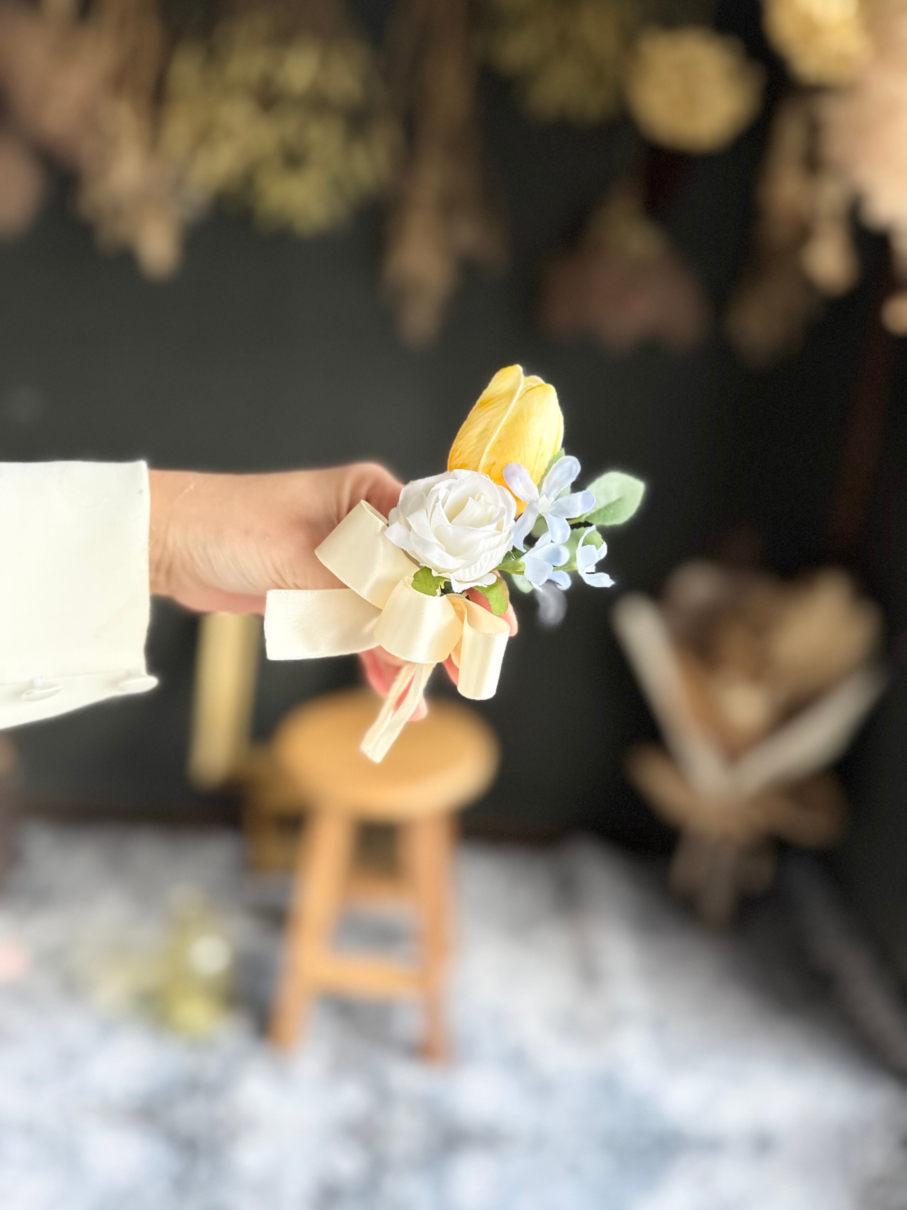 アーティフィシャルフラワー・造花のブーケです(‷ˊᗜˋ‷)ブートニア付き♪
