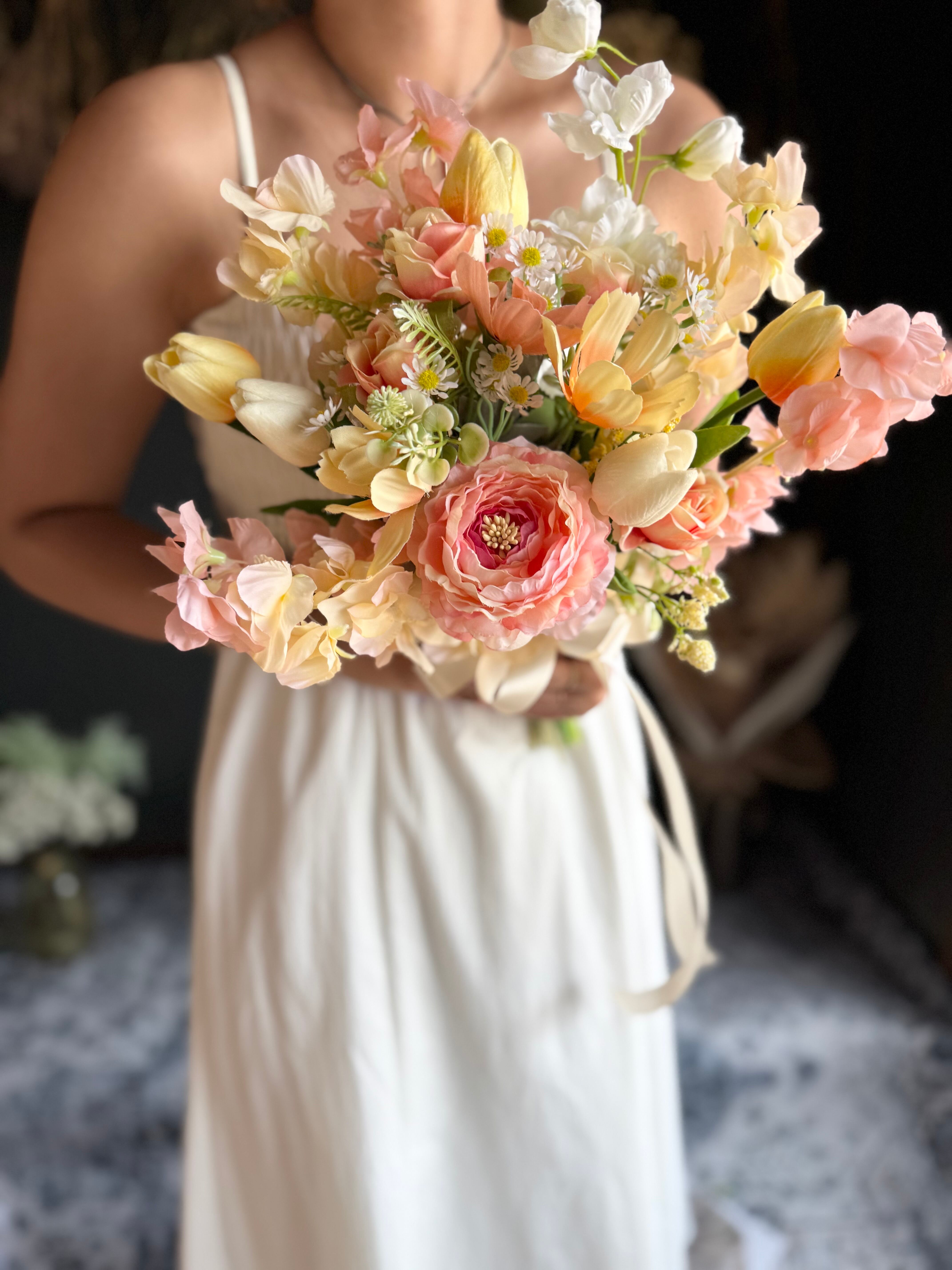 優しい黄色とオレンジのビタミンカラーのブーケ•*・鮮やかに華やかに花嫁様を彩ります•*・