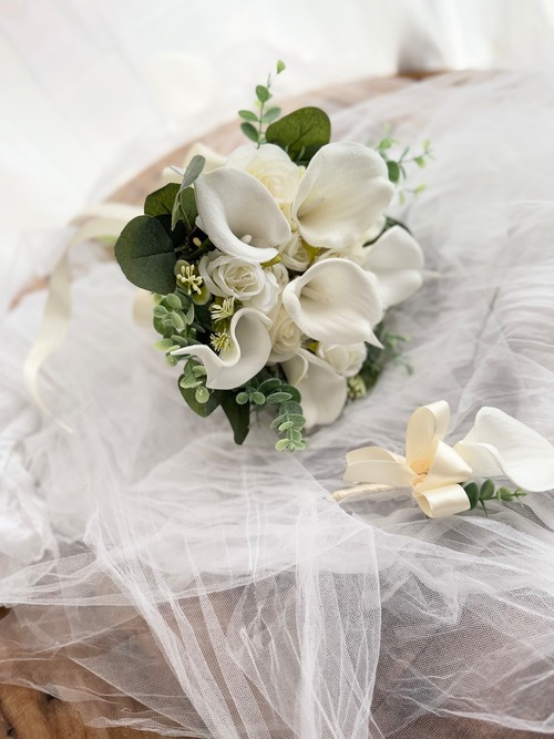 アーティフィシャルフラワー・造花のブーケです(‷ˊᗜˋ‷)ブートニア付き