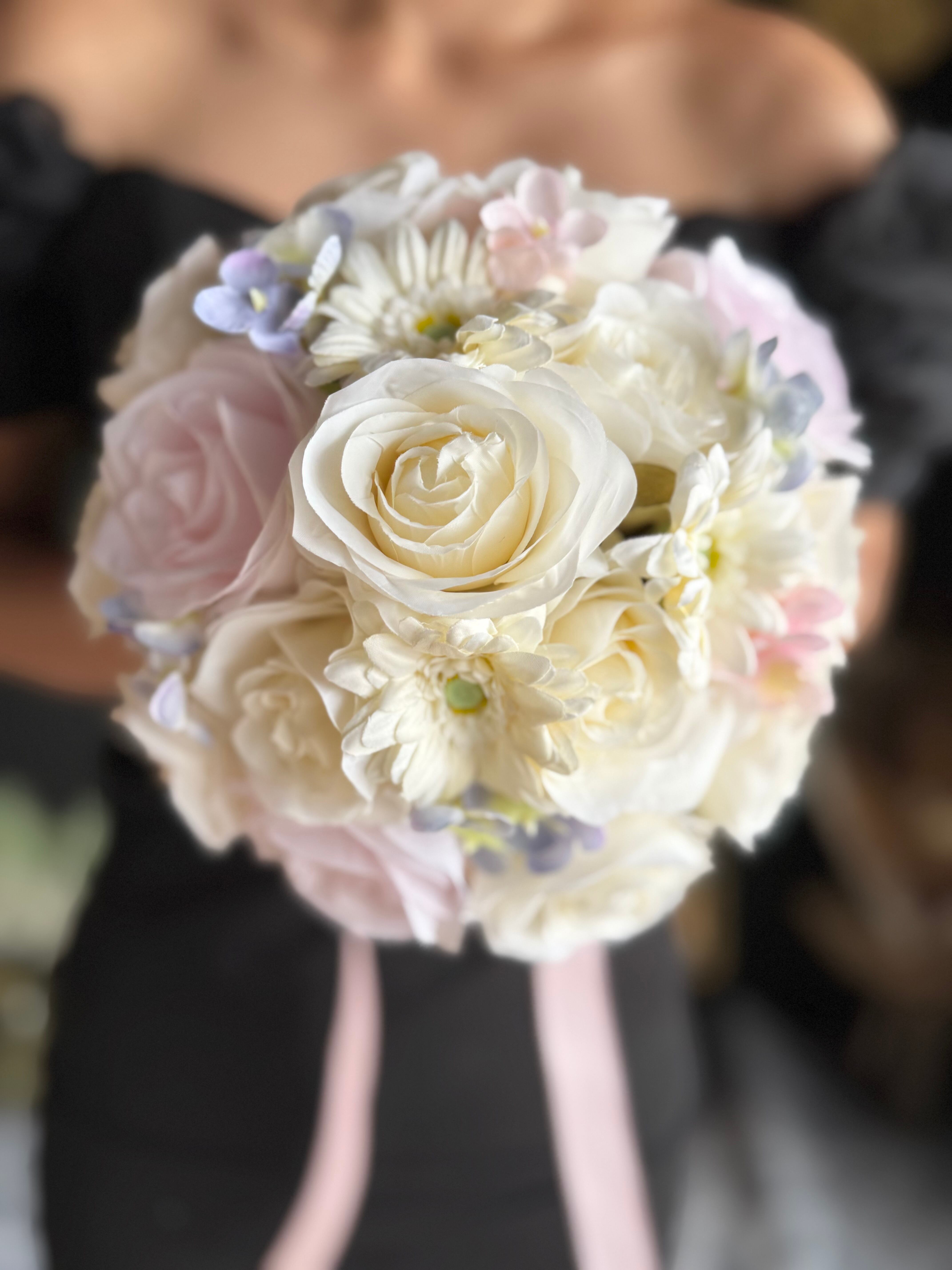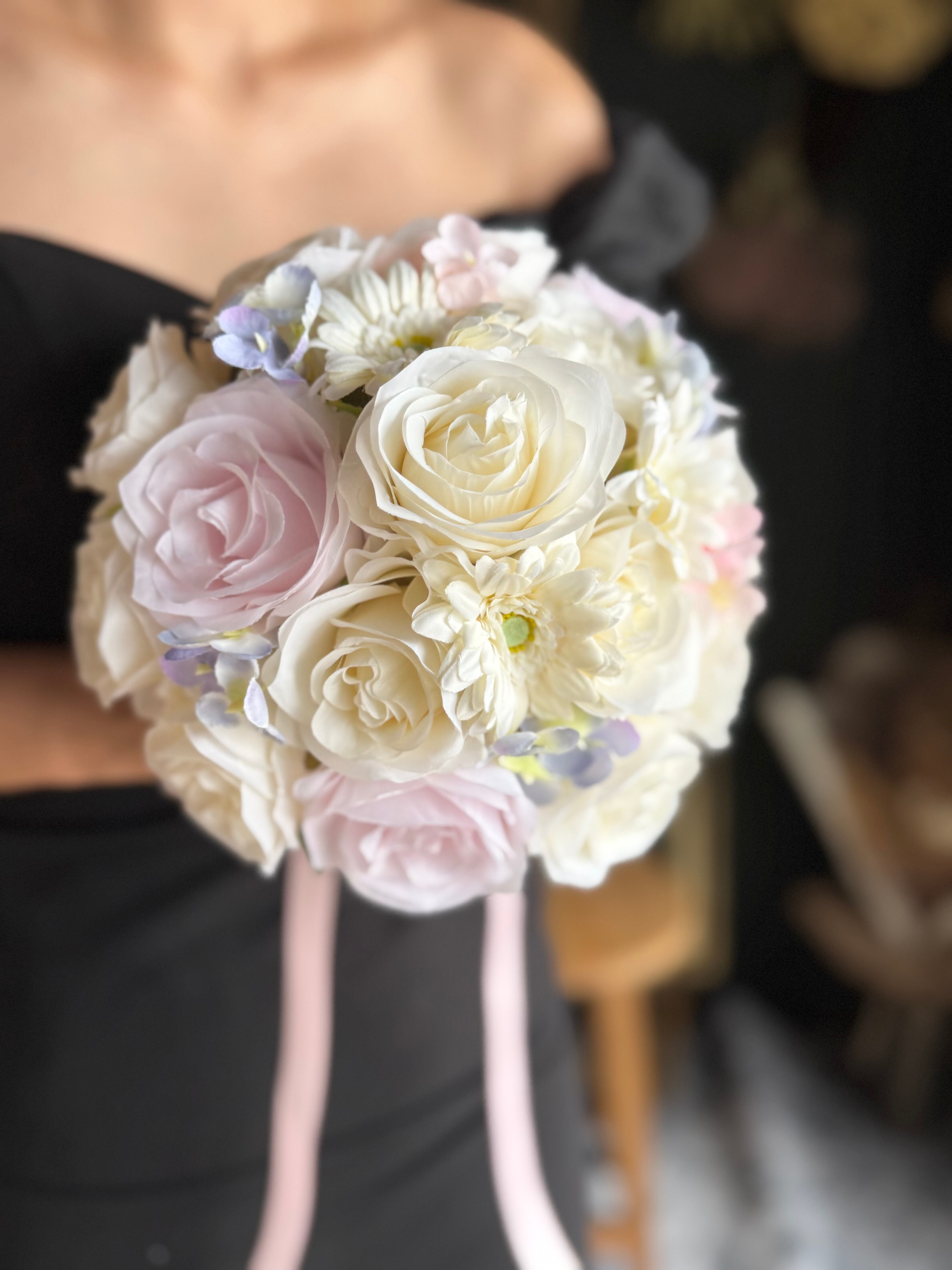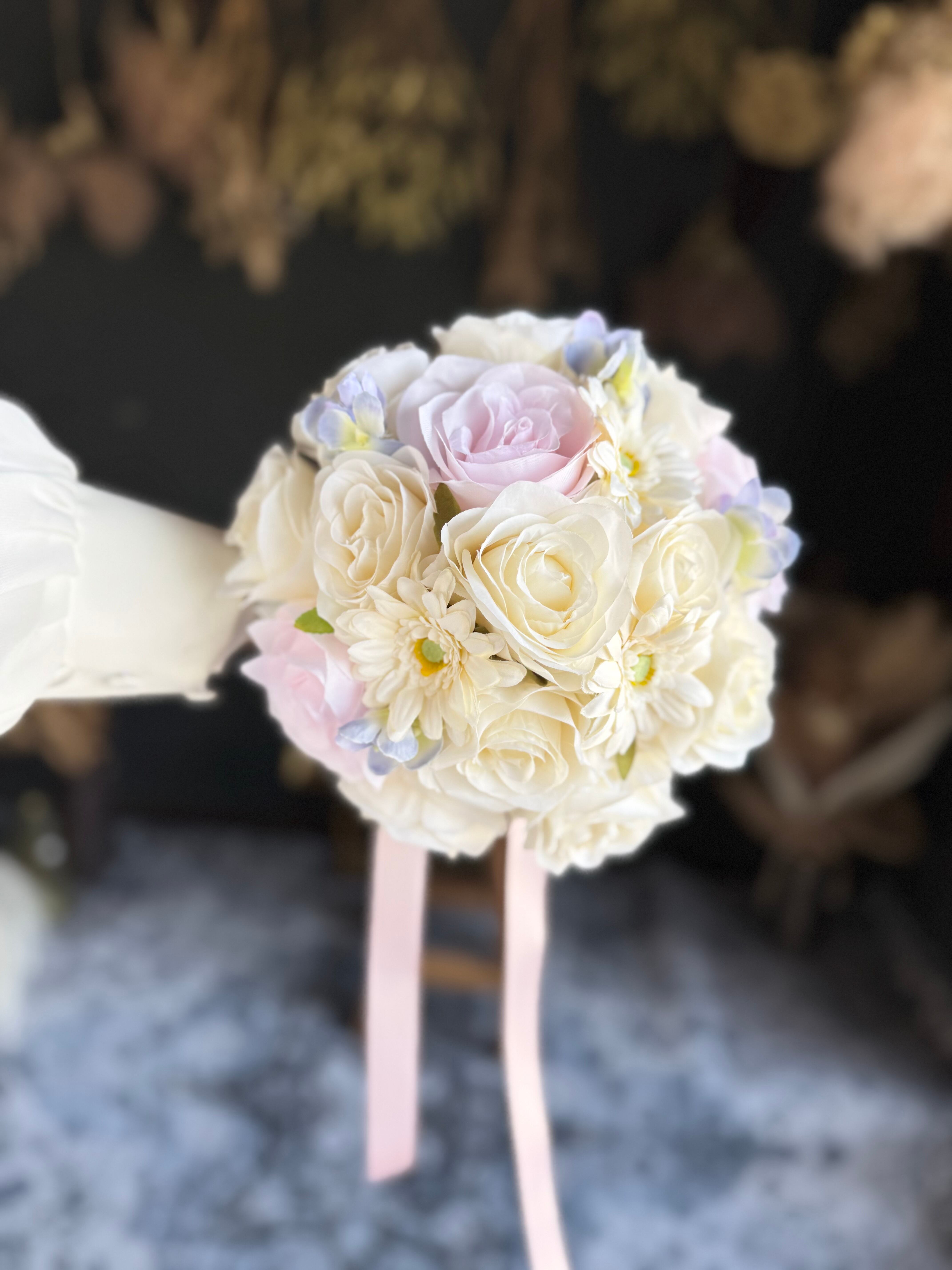 可愛く淡い色味のラウンドブーケ•*・