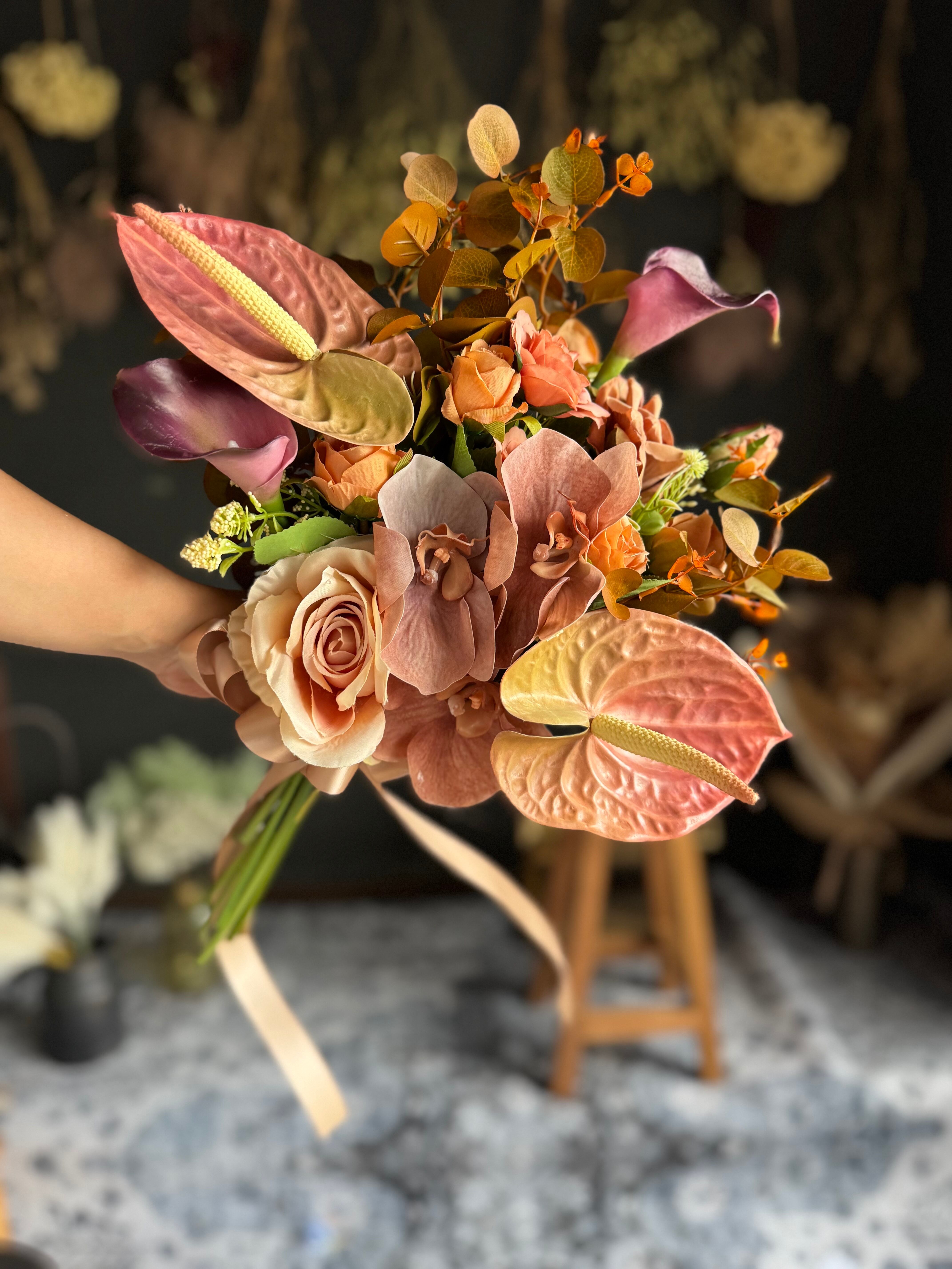 くすみピンクやテラコッタ、バーガンディの色合いが大人の花嫁を引き立てます。