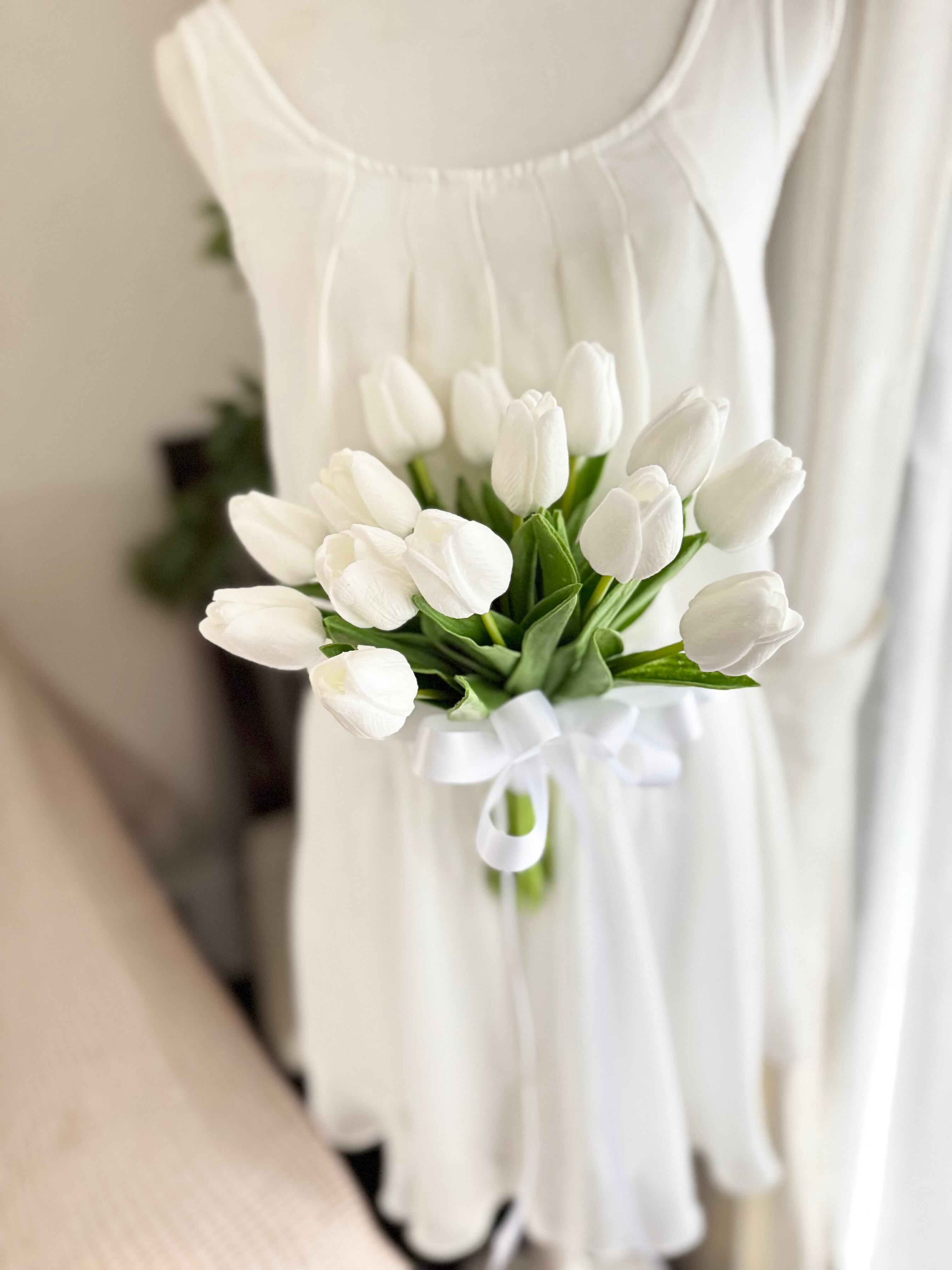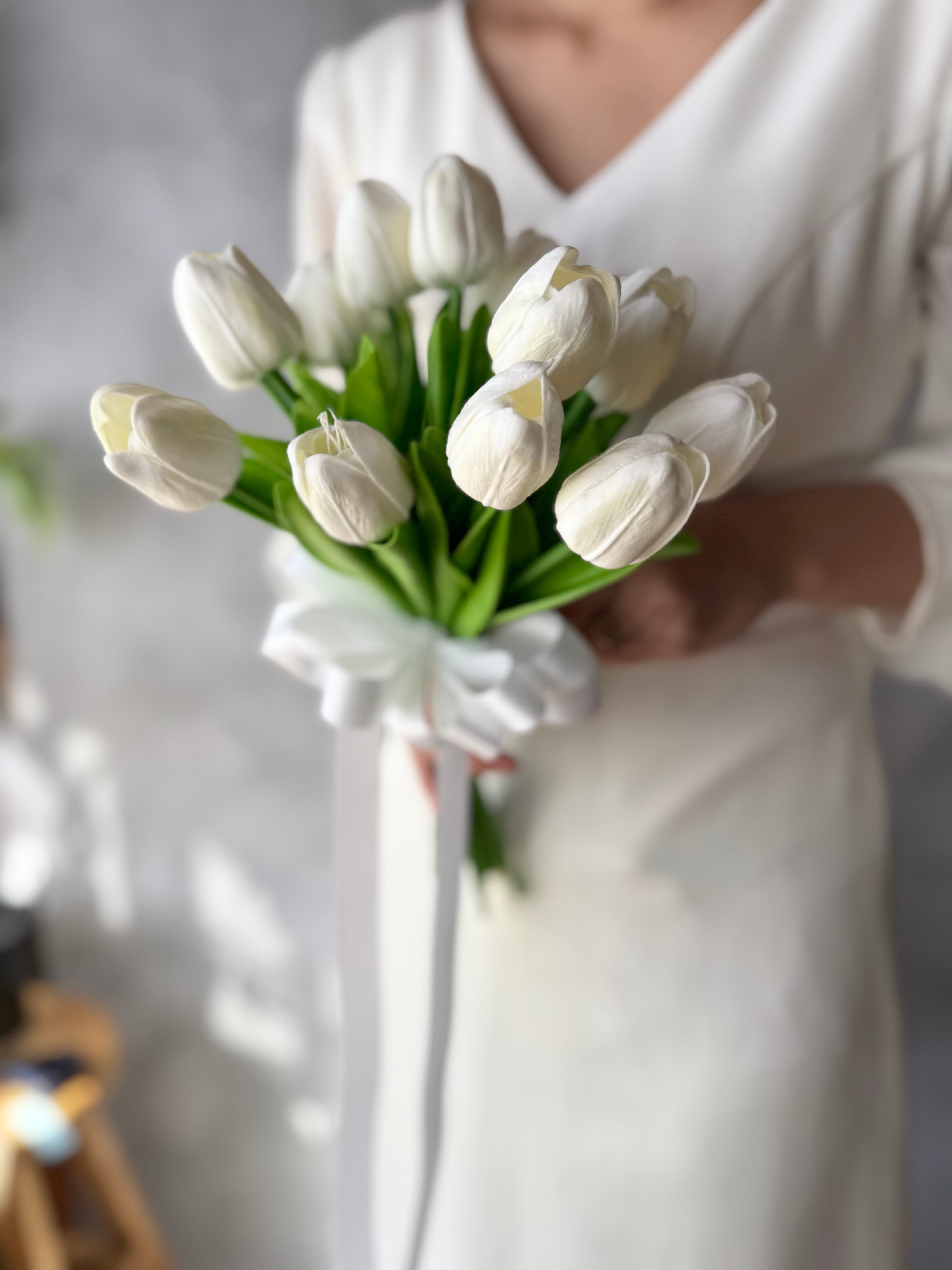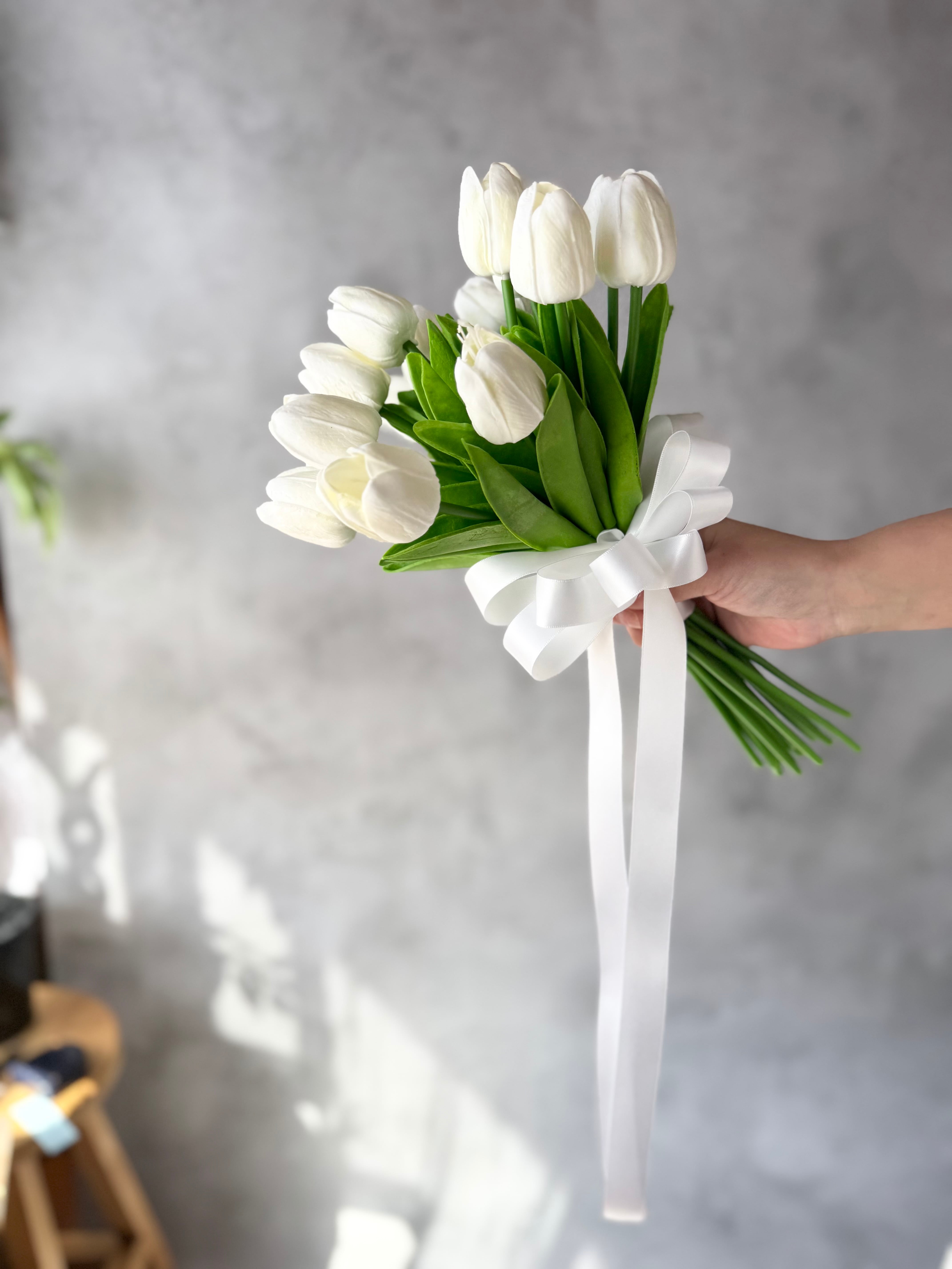 白チューリップだけでお作りしたシンプルで可愛いクラッチブーケです♪