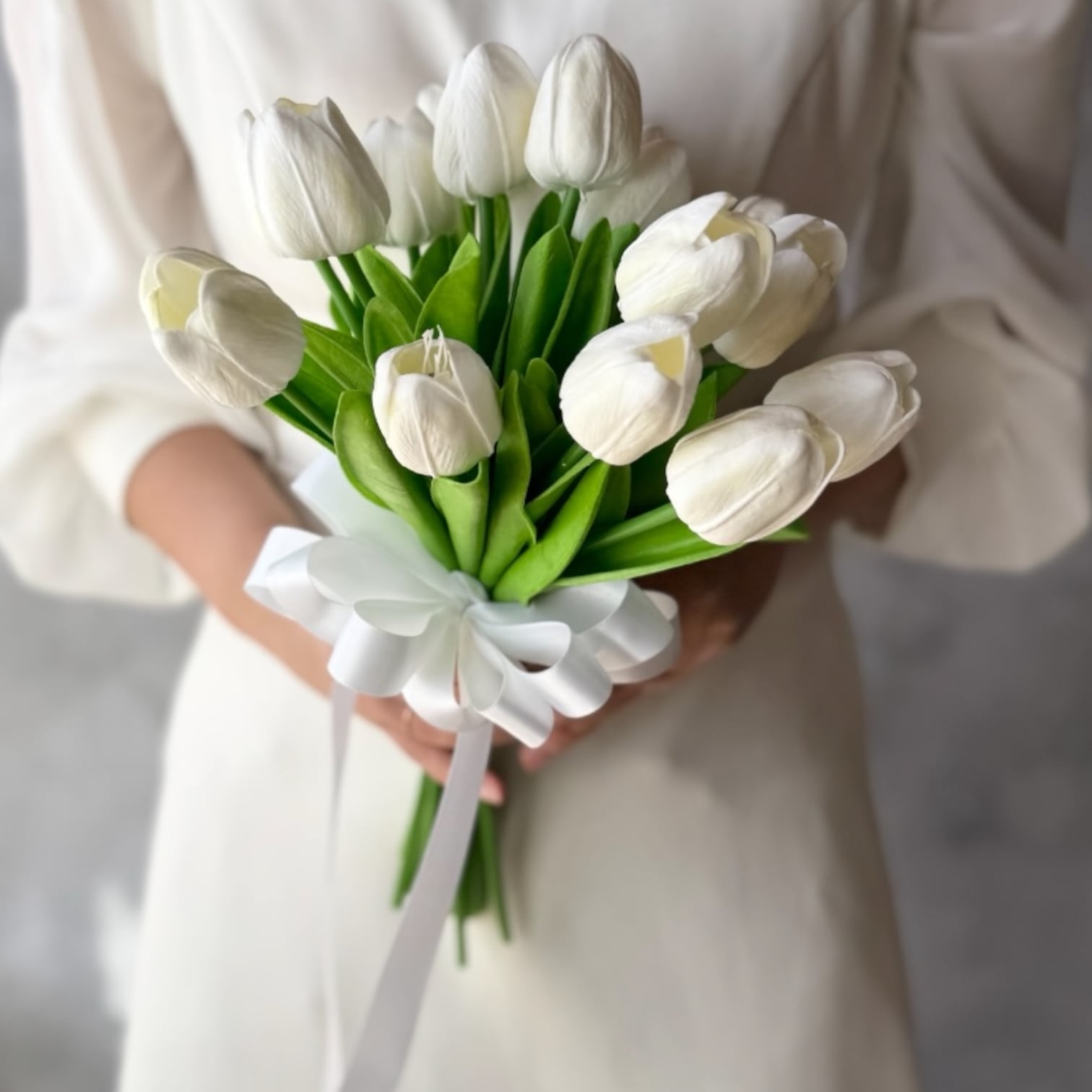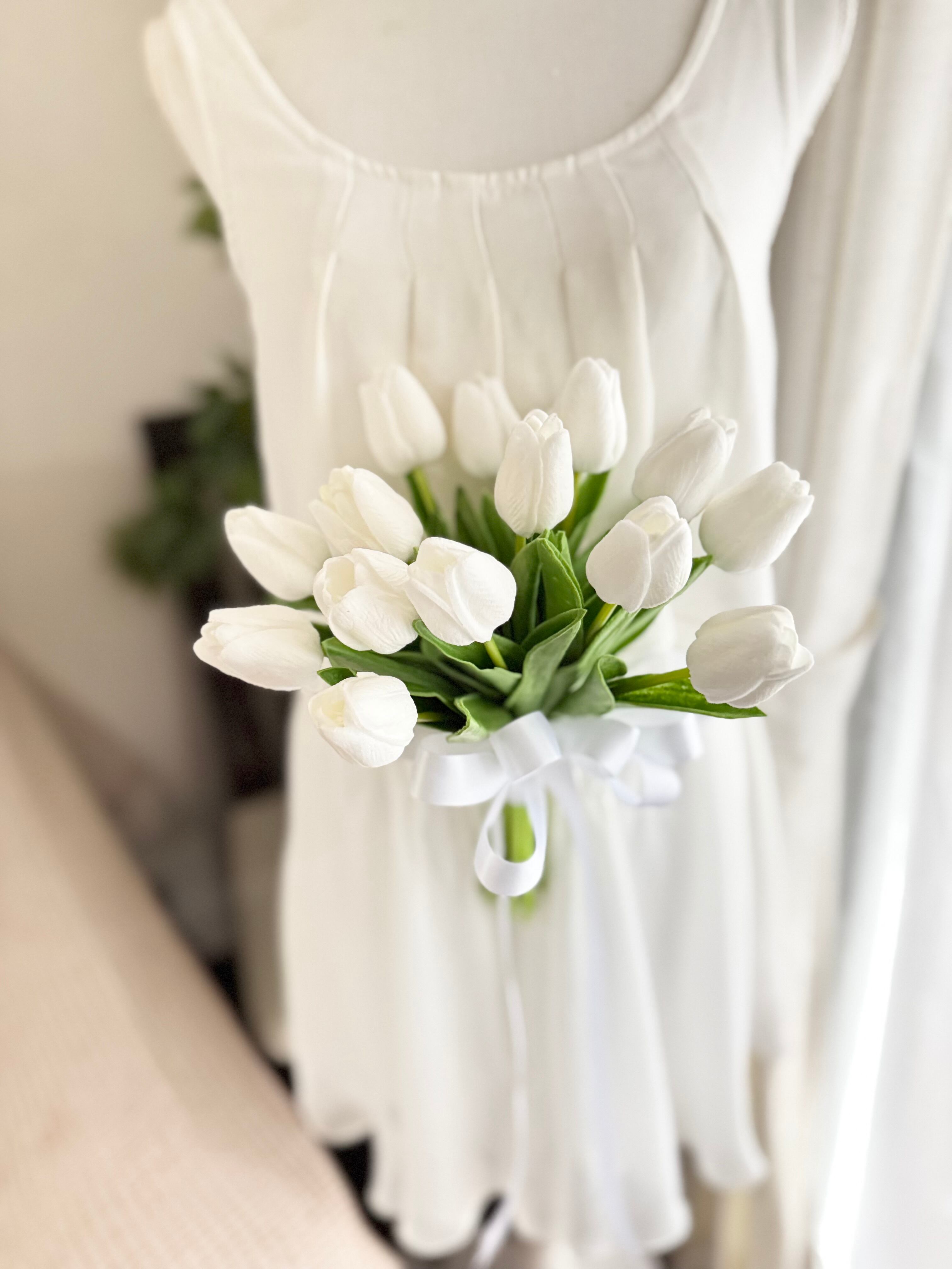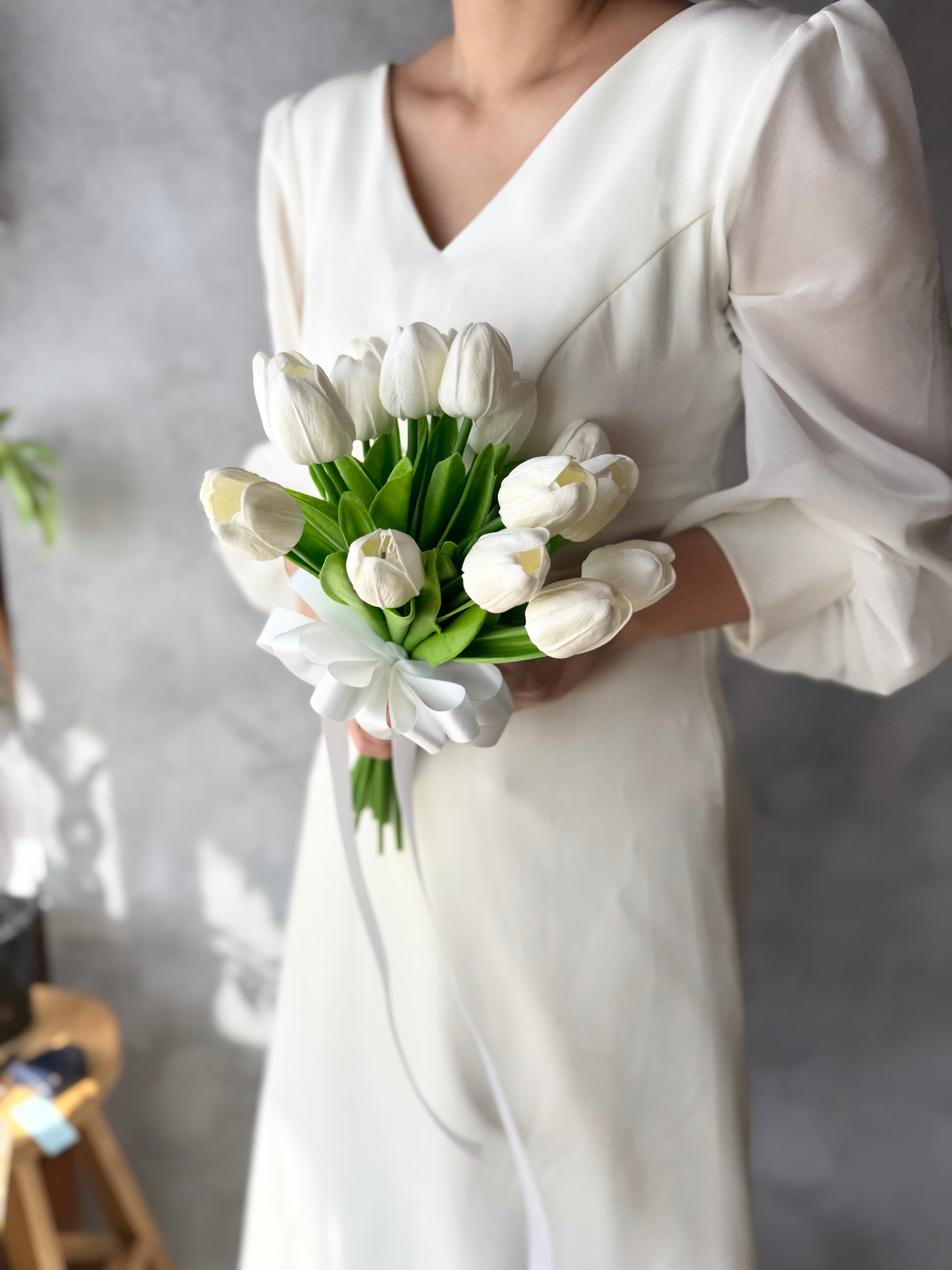 白チューリップだけでお作りしたシンプルで可愛いクラッチブーケです♪