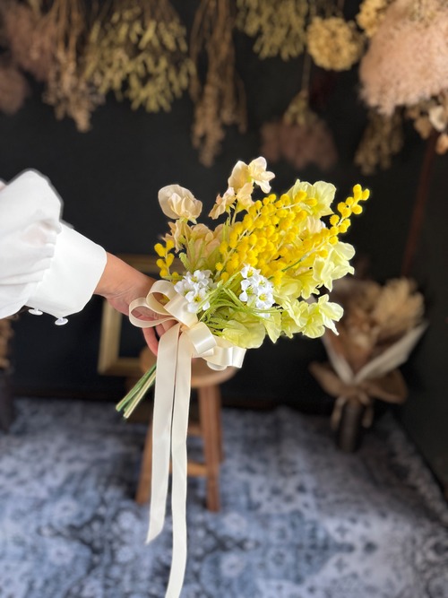 アーティフィシャルフラワーなので、前撮りやロケーション撮影、海外ウェディングにも安心してお持ちいただけます。
