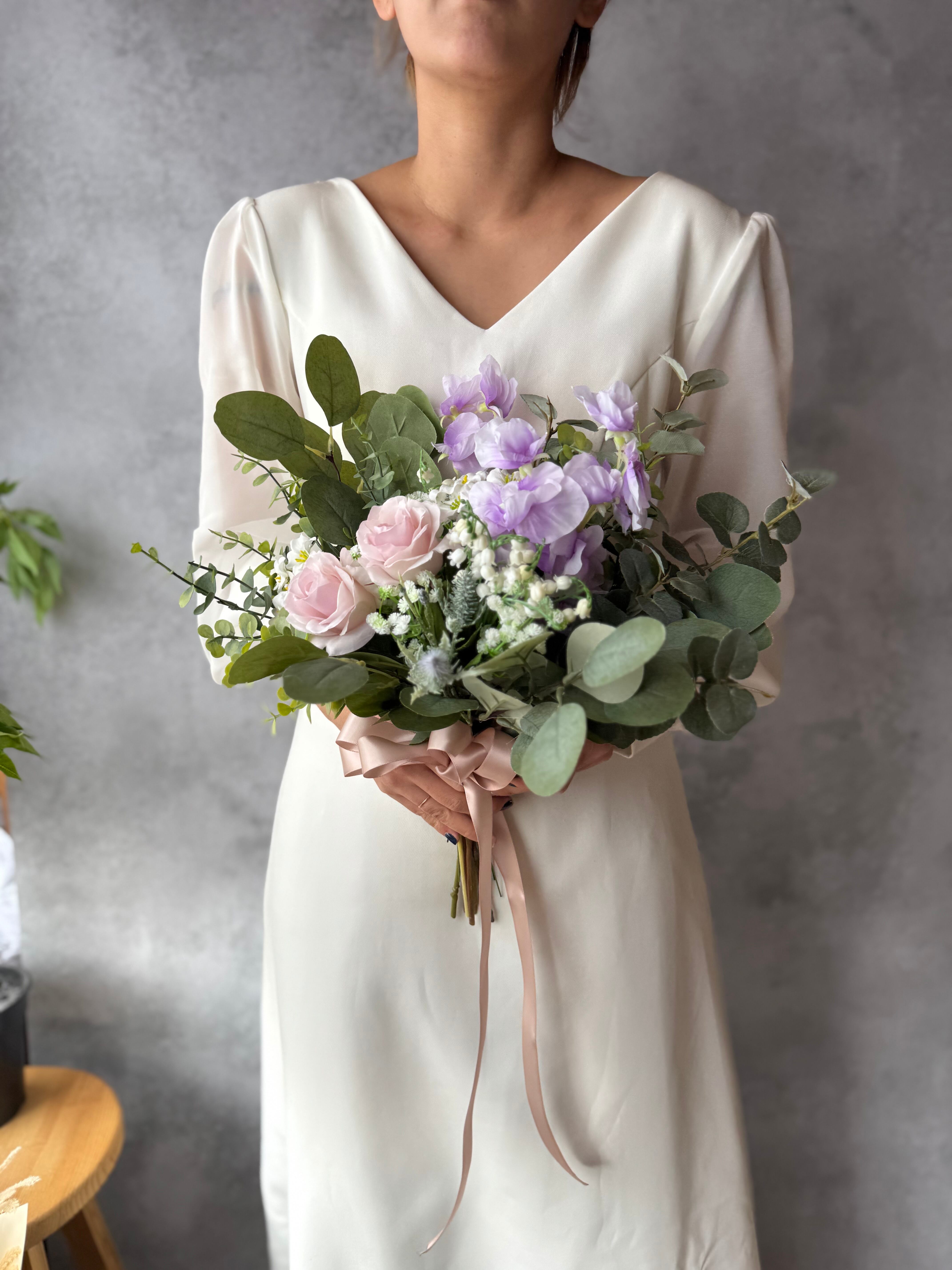 ユーカリのグリーンをたっぷり合わせたナチュラルブーケ。