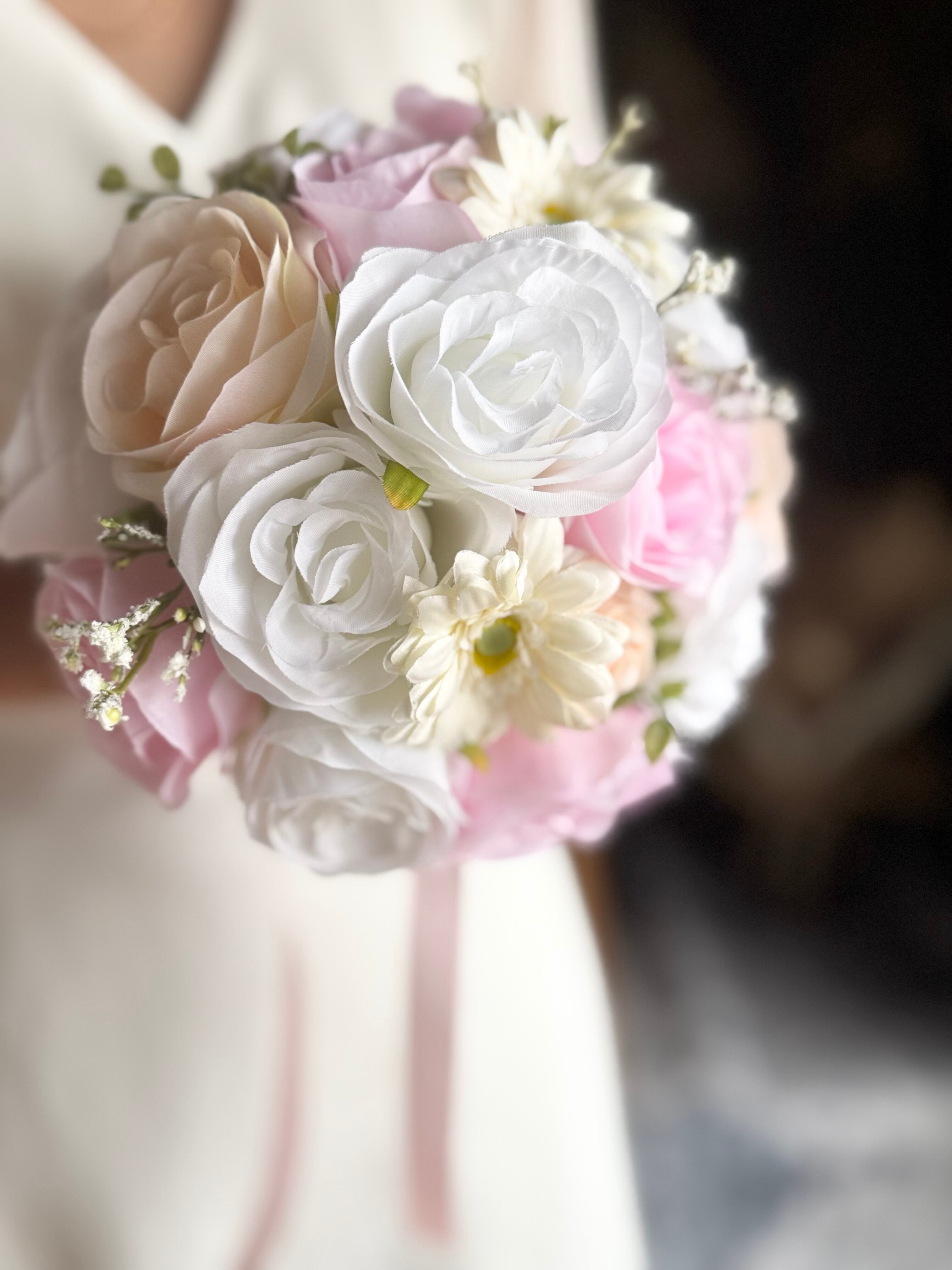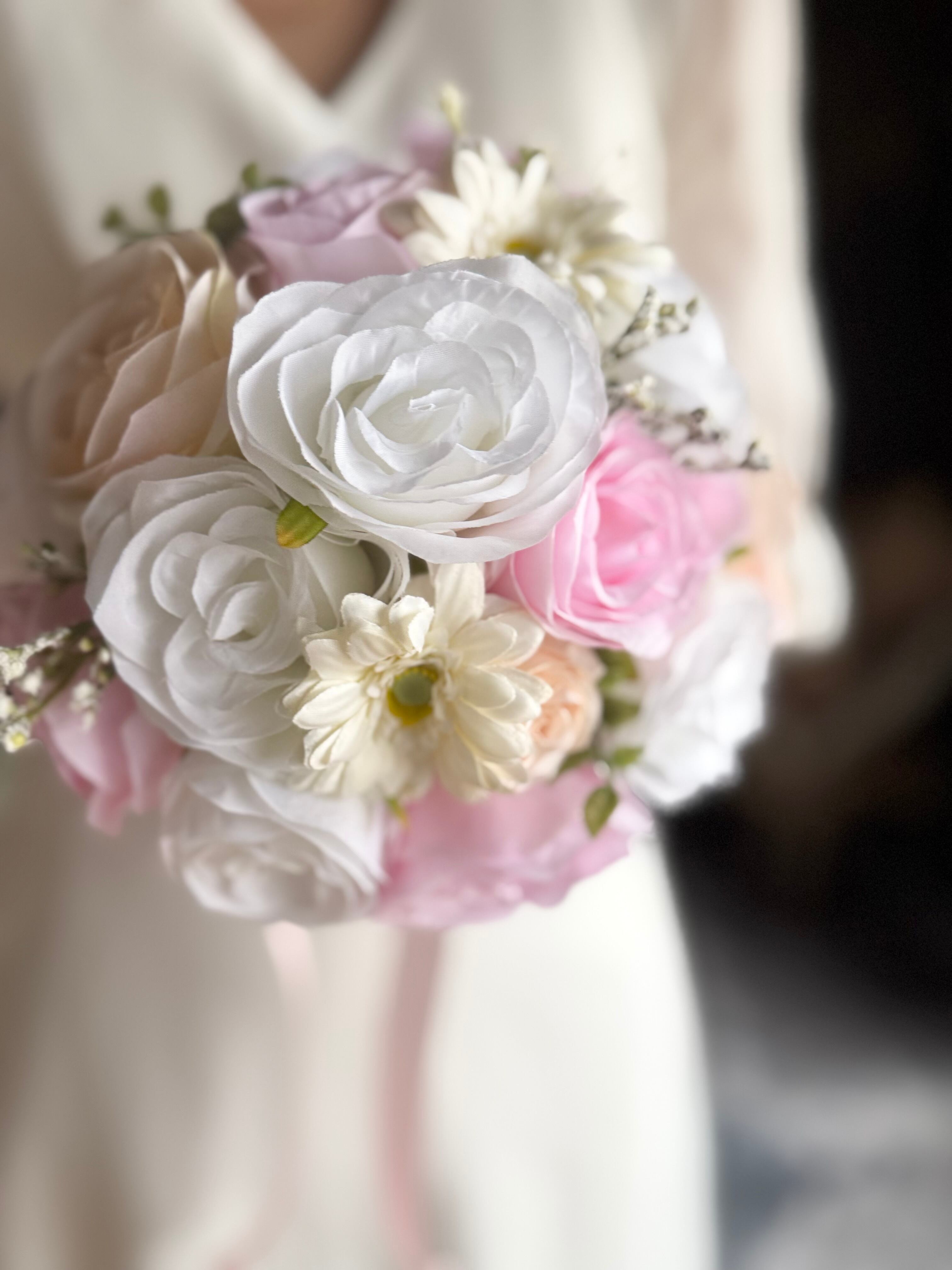 アーティフィシャルフラワー・造花のブーケです(‷ˊᗜˋ‷)ブートニア付き♪