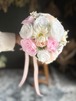 ホワイトベースに淡いピンクとオレンジをアクセントに入れた可愛いウェディングブーケ•*・