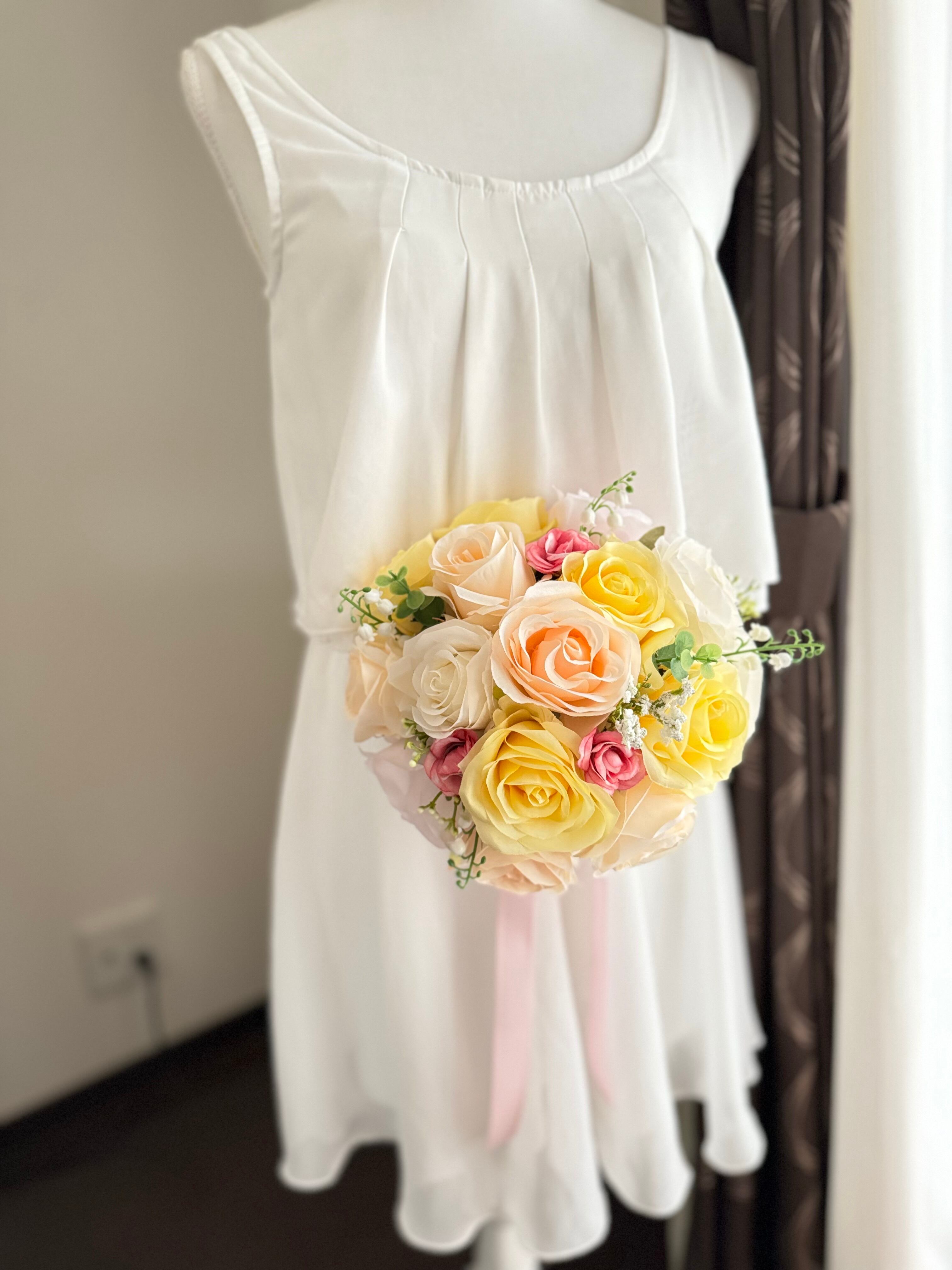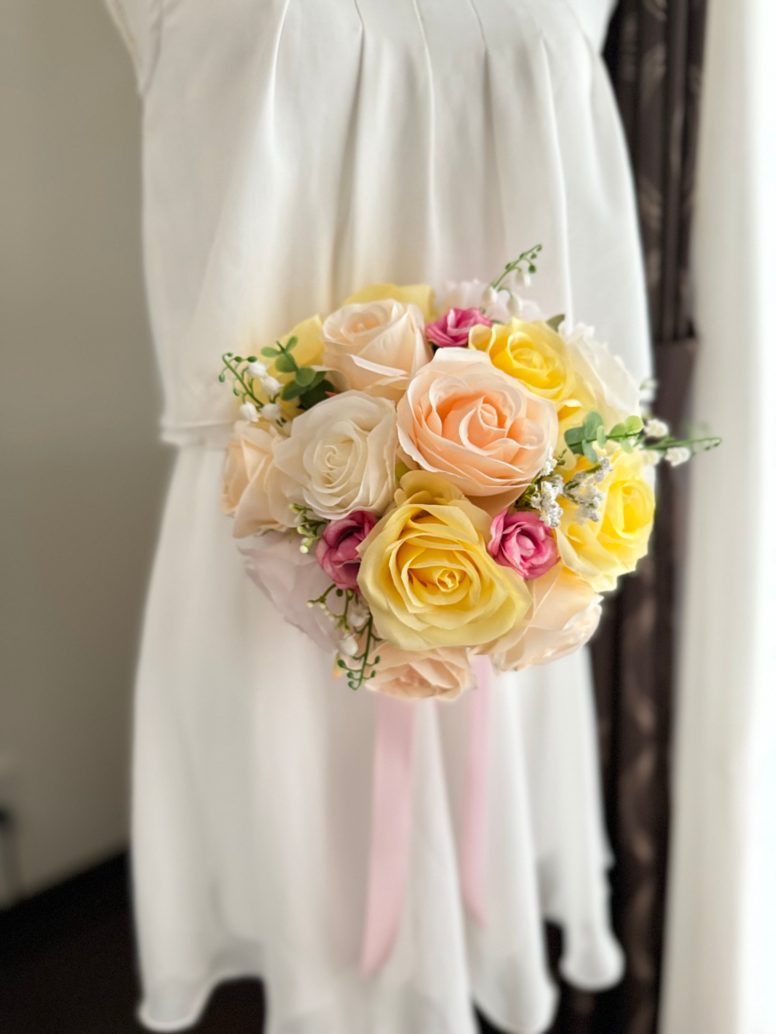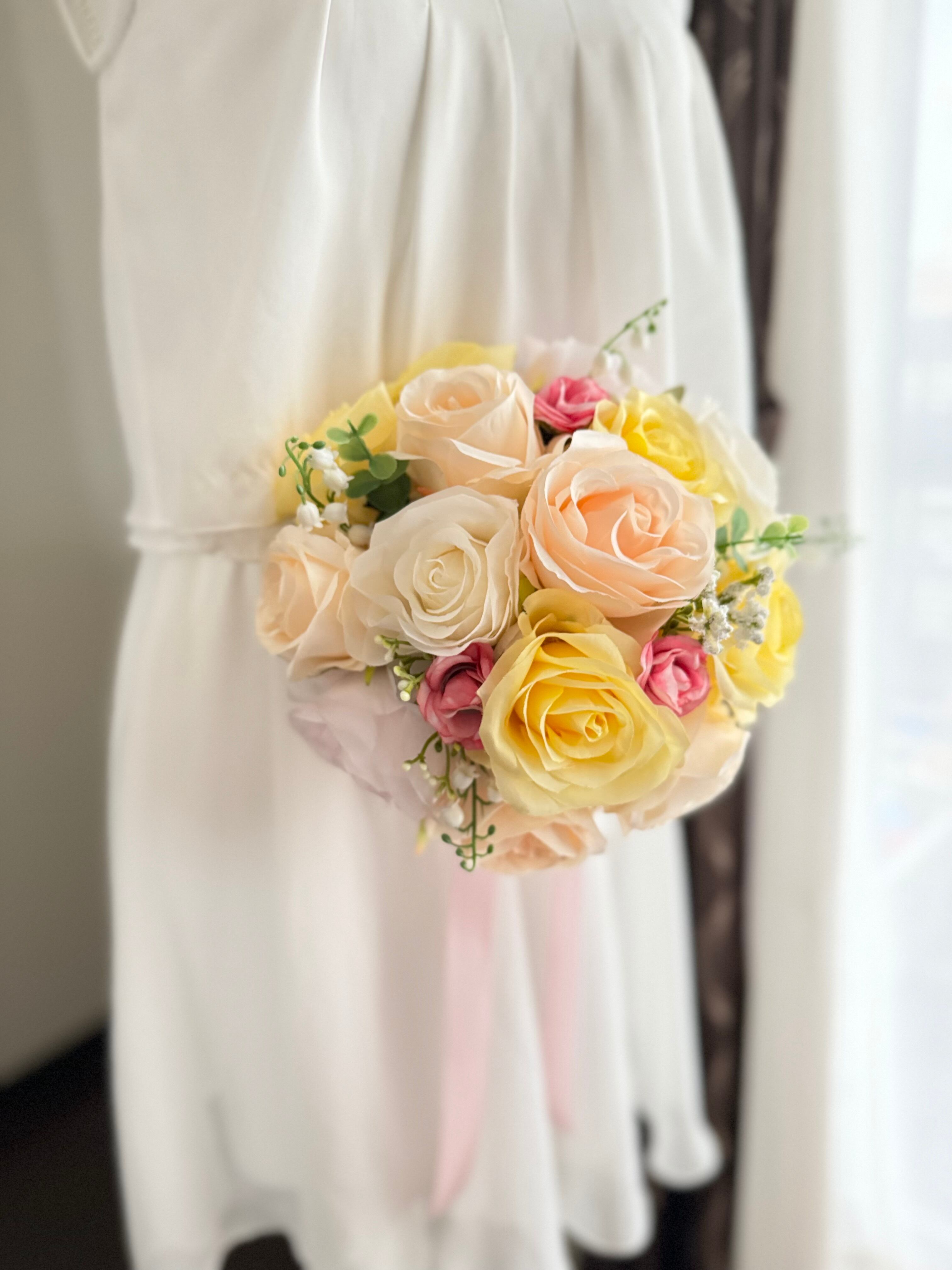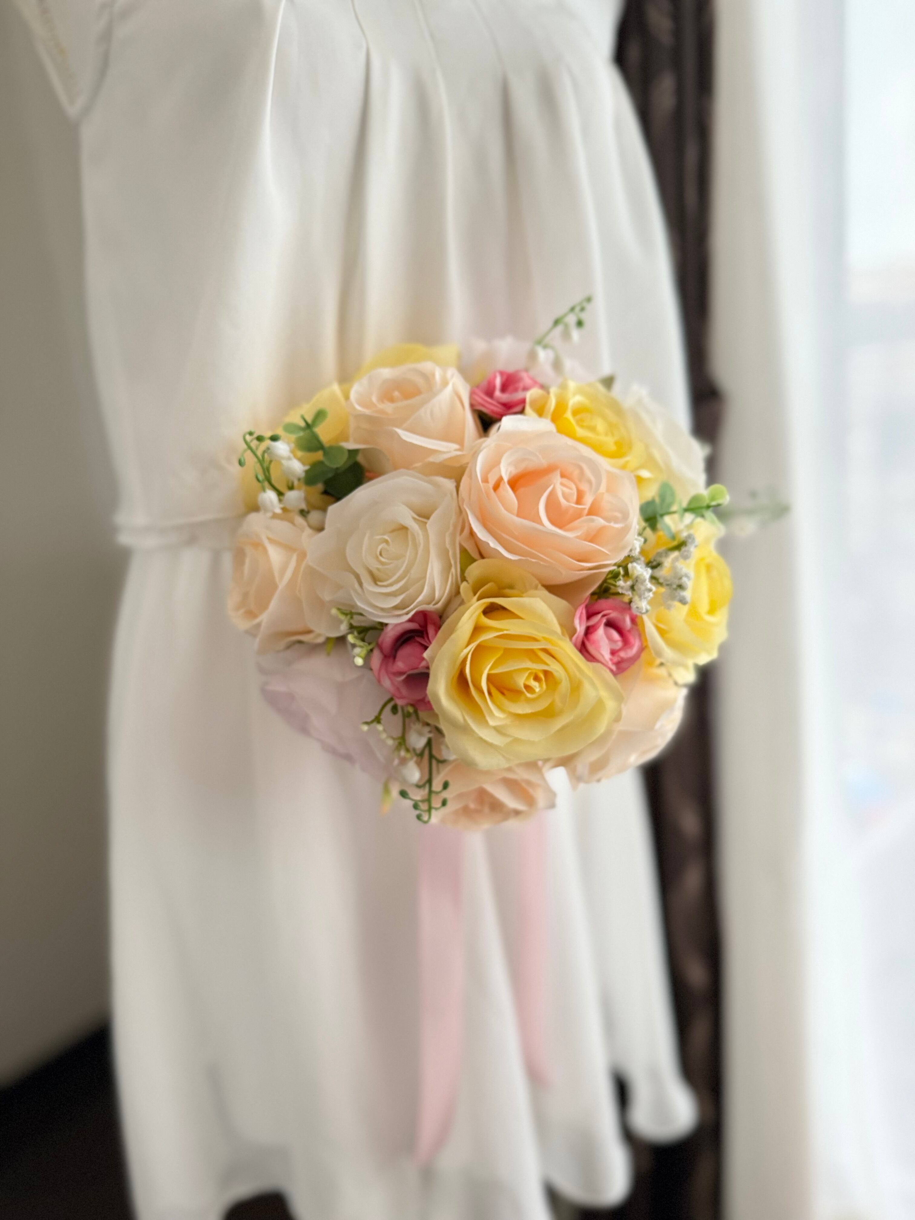 アーティフィシャルフラワー・造花のブーケです(‷ˊᗜˋ‷)ブートニア付き