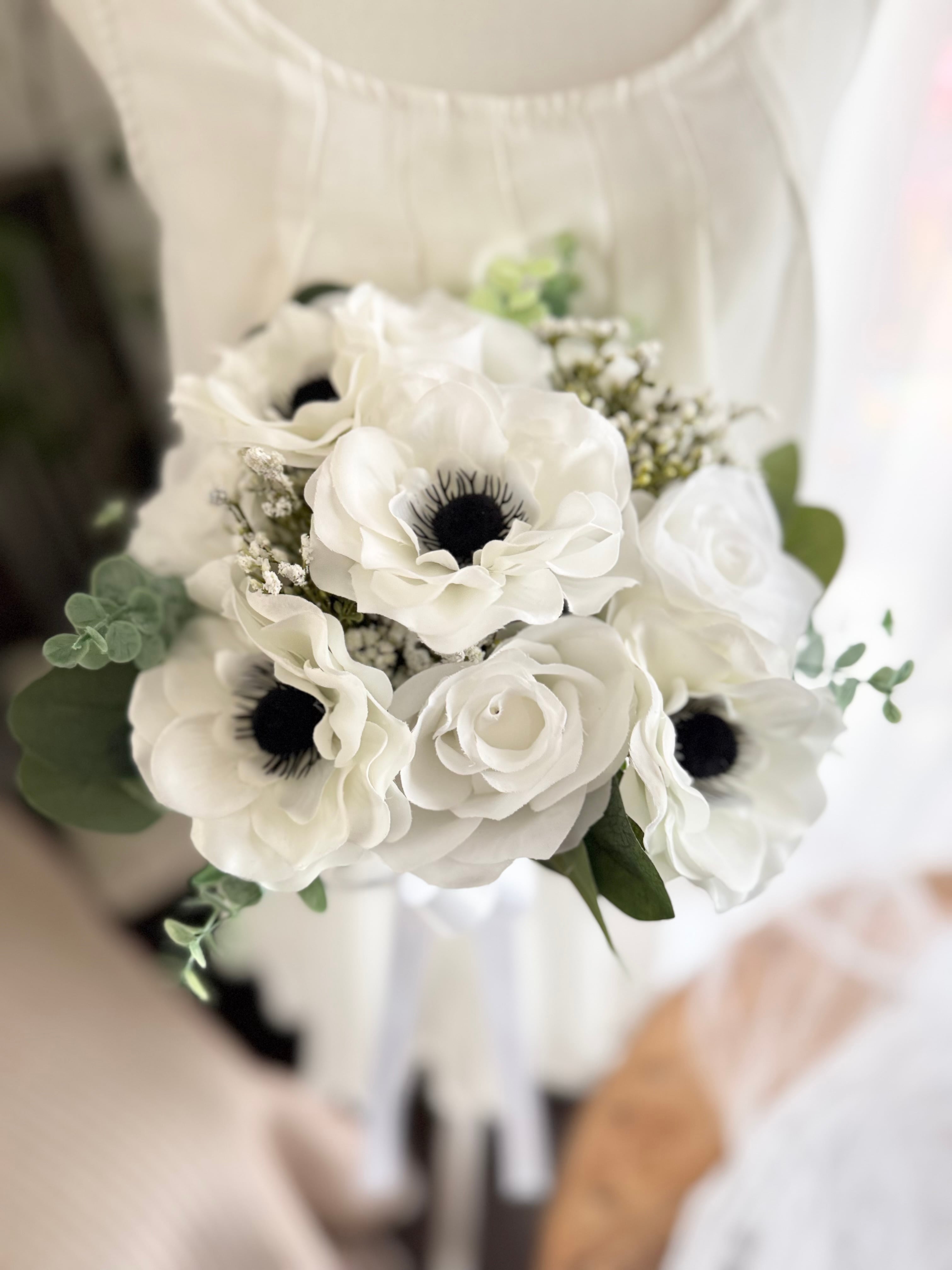 この度、白バラとアネモネを贅沢に使用した美しいクラッチブーケが登場しました!特別な日を彩るためのお花として最適なアイテムです♪