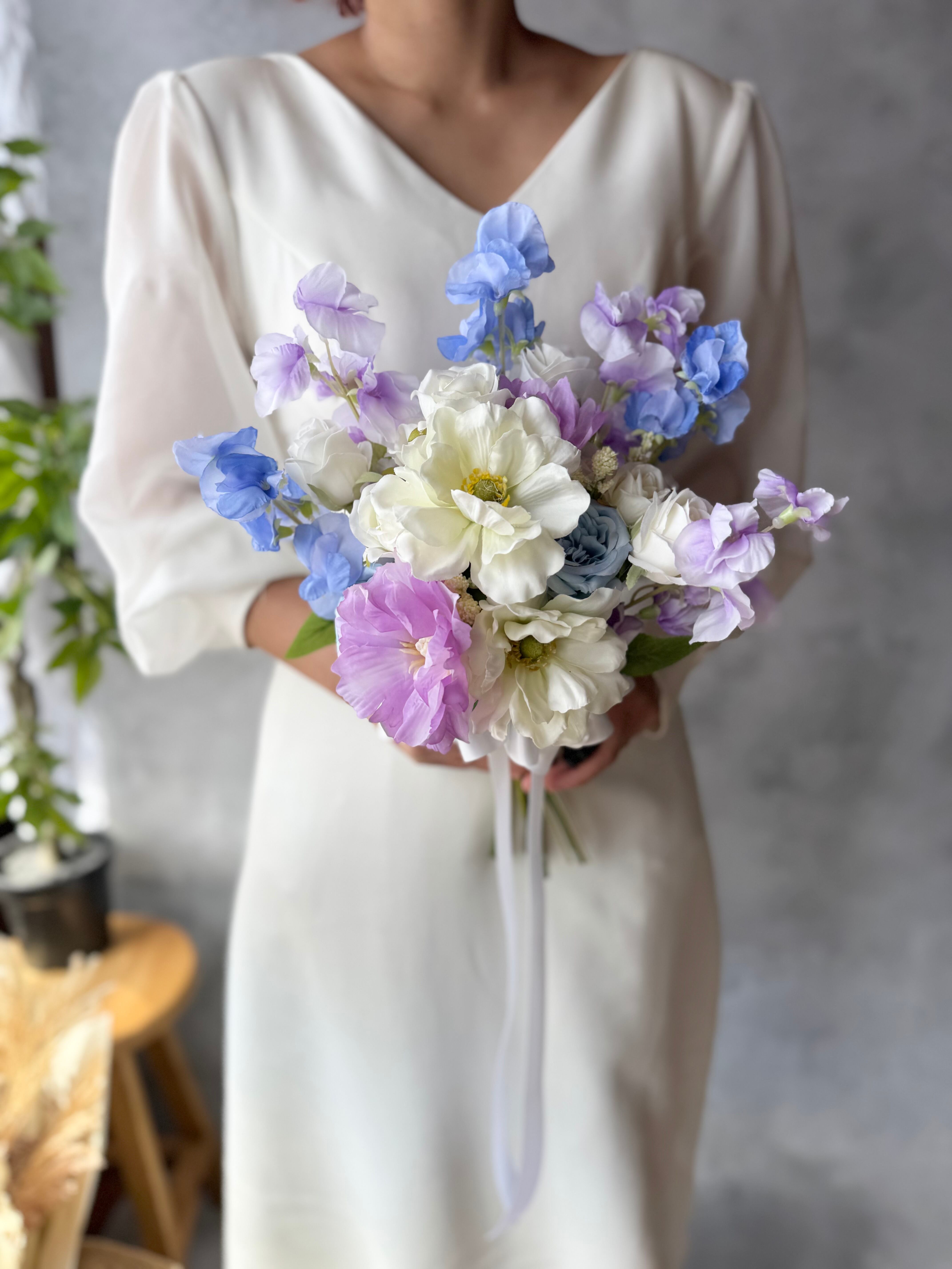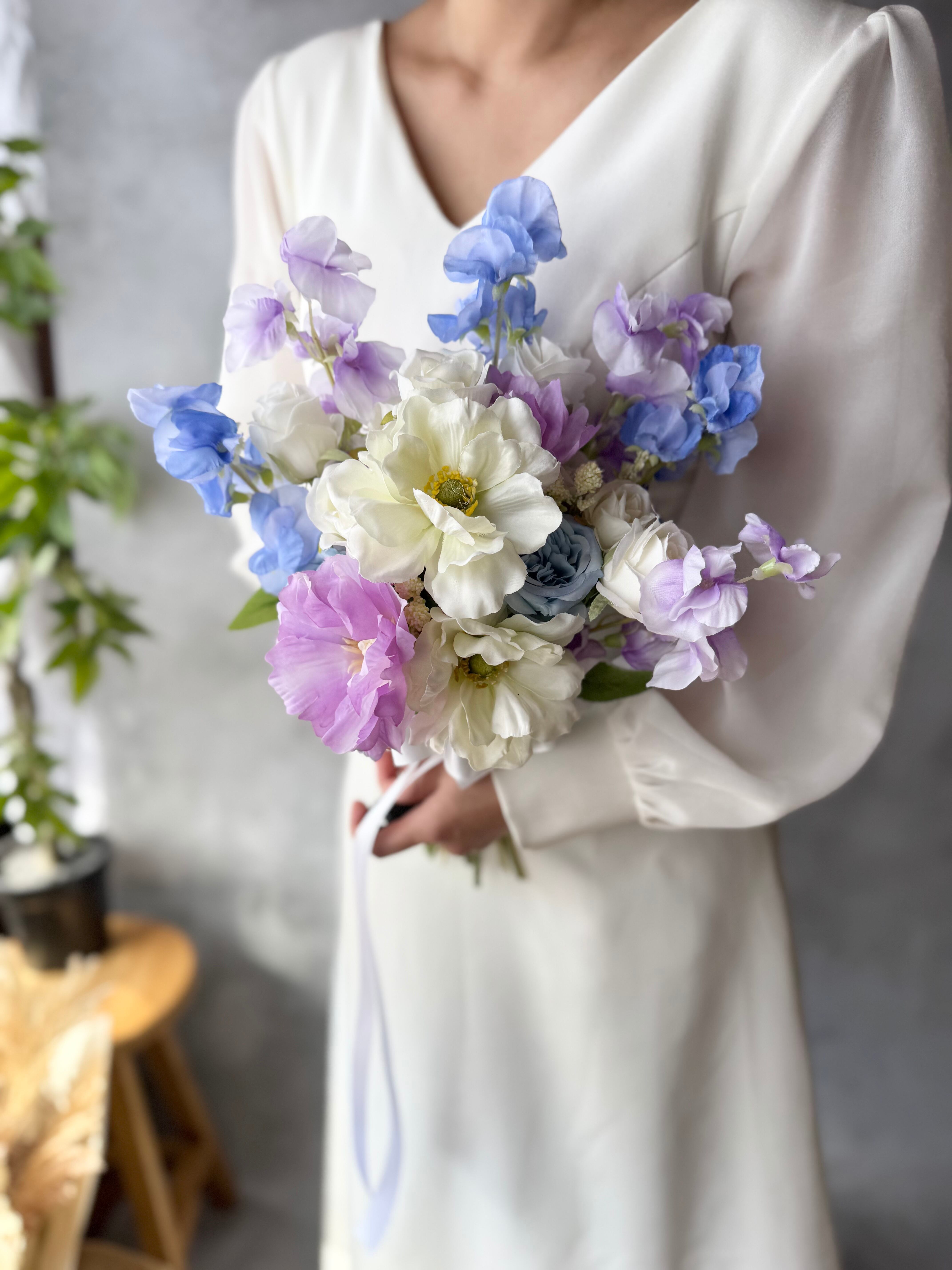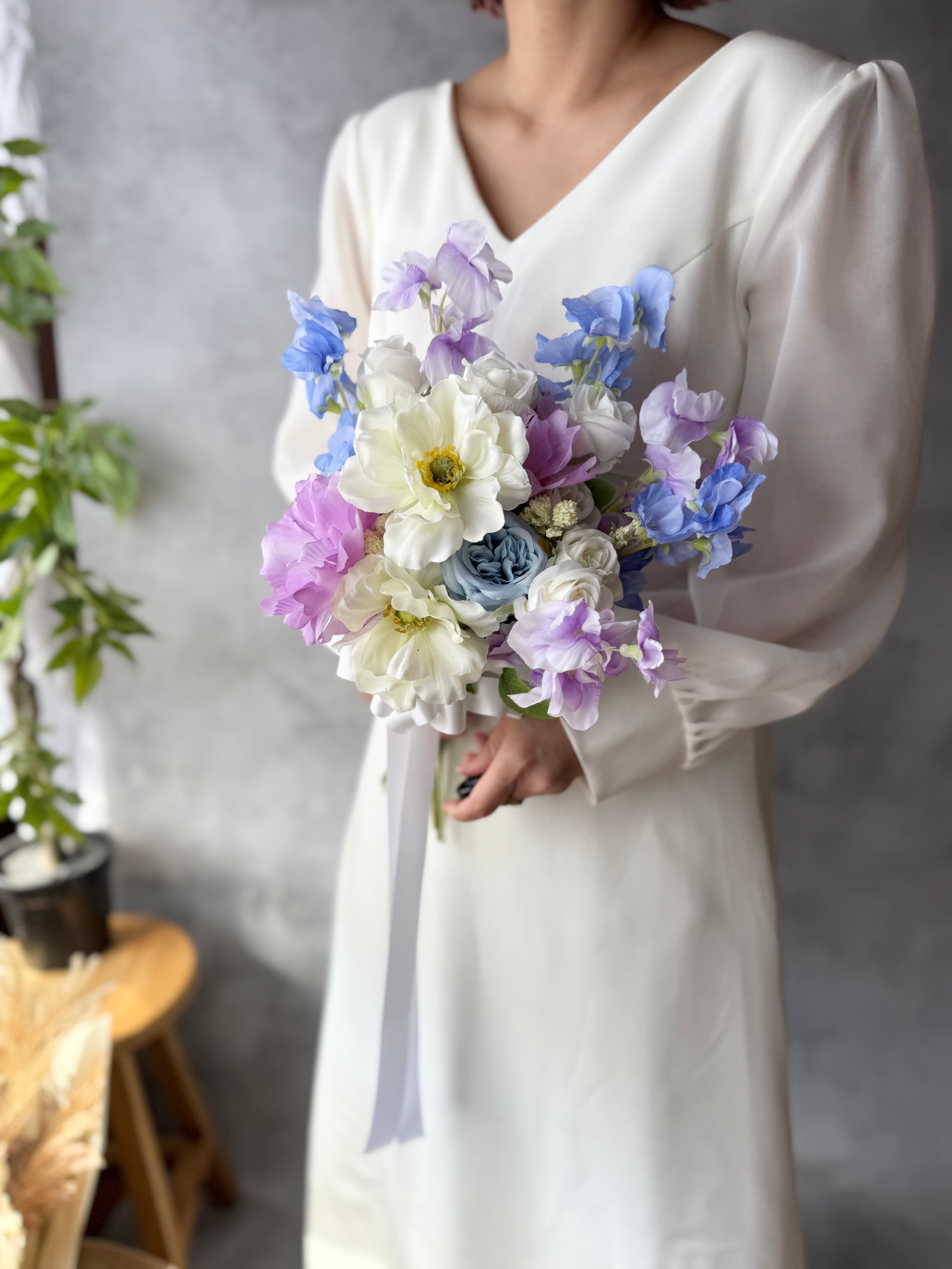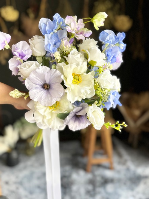 韓国風ブーケのぴょんぴょんふんわりしたクラッチブーケです♪特別なお花で特別な思い出を(๑˃̵ᴗ˂̵)