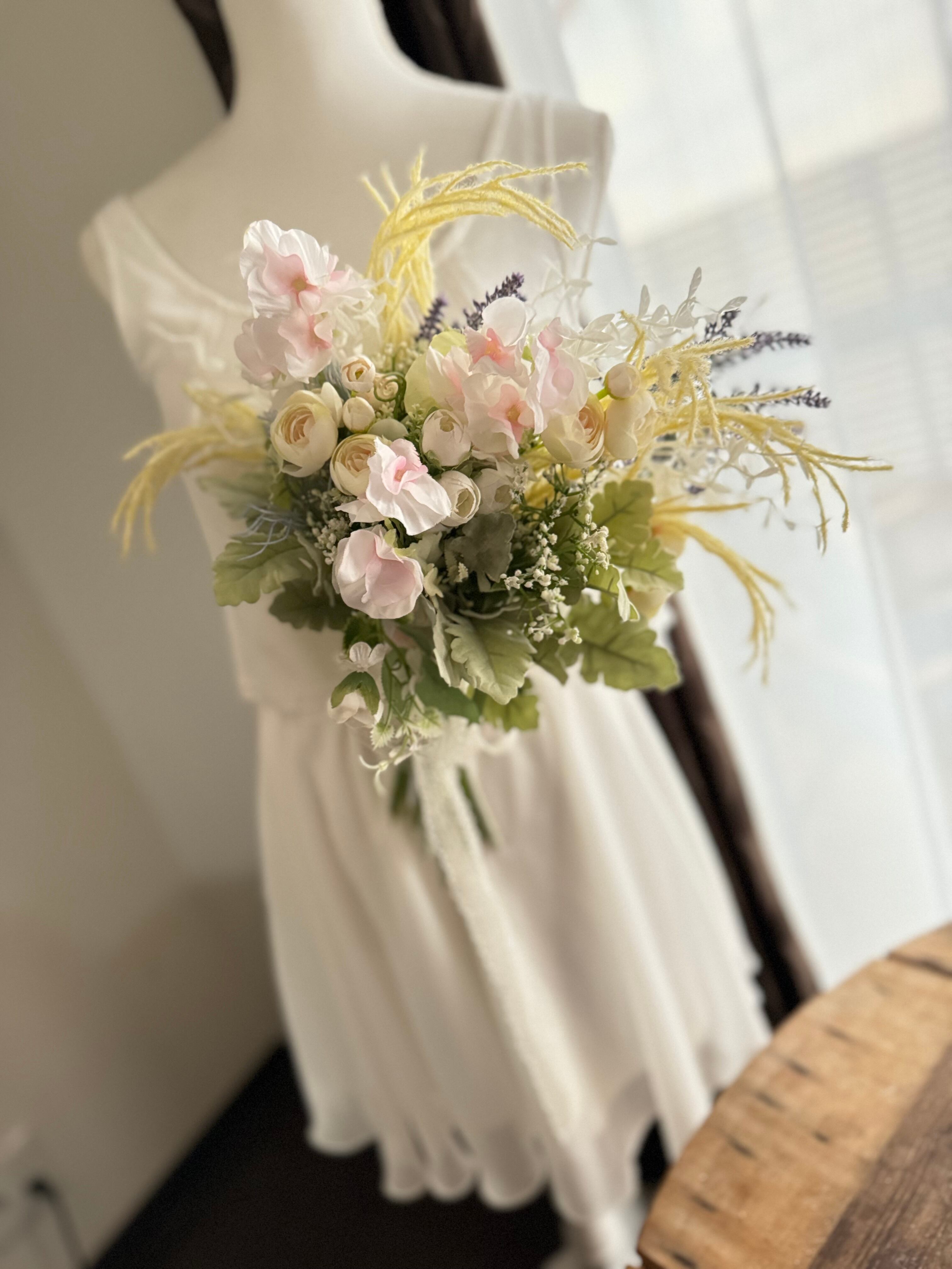 アーティフィシャルフラワー・造花のブーケです(‷ˊᗜˋ‷)ブートニア付き
