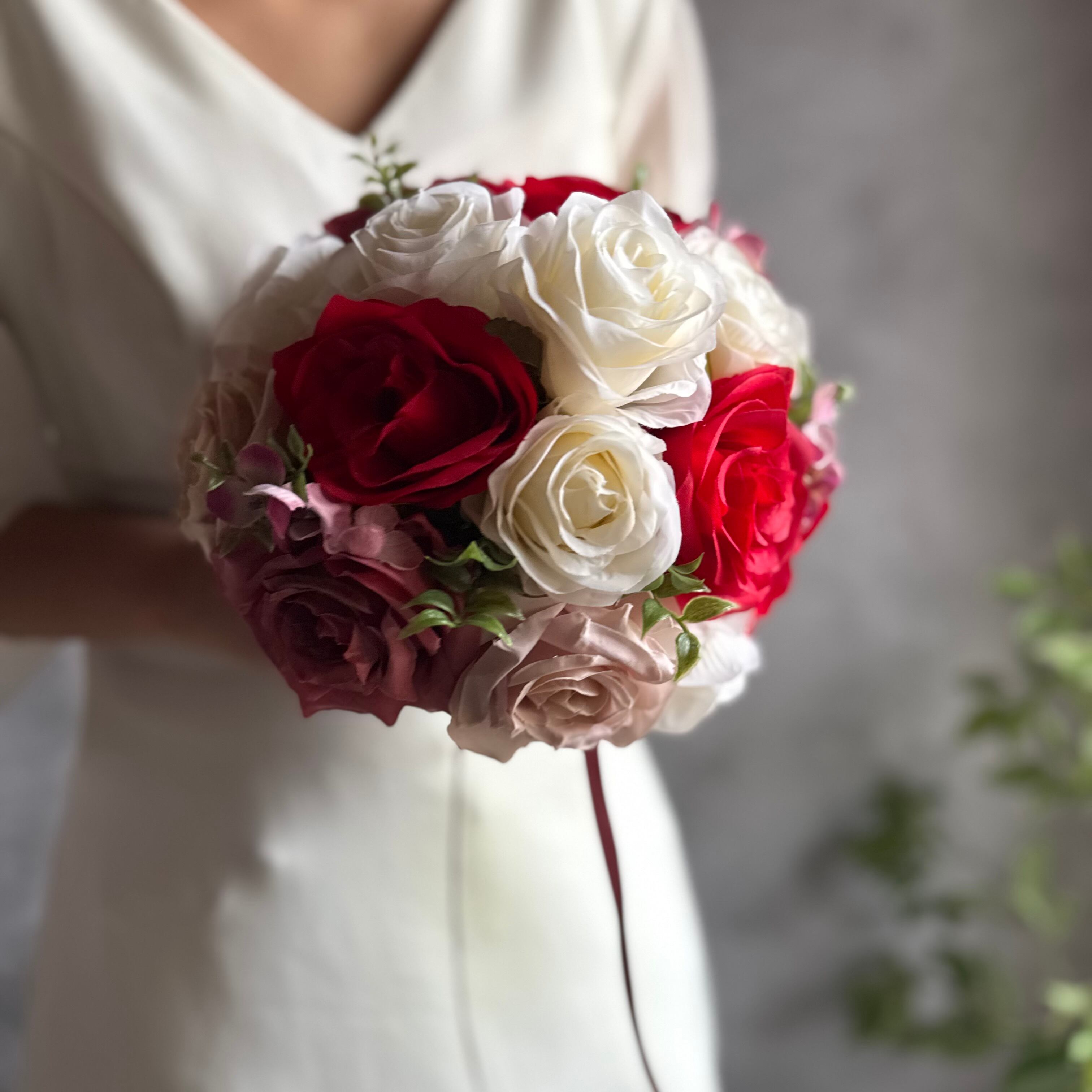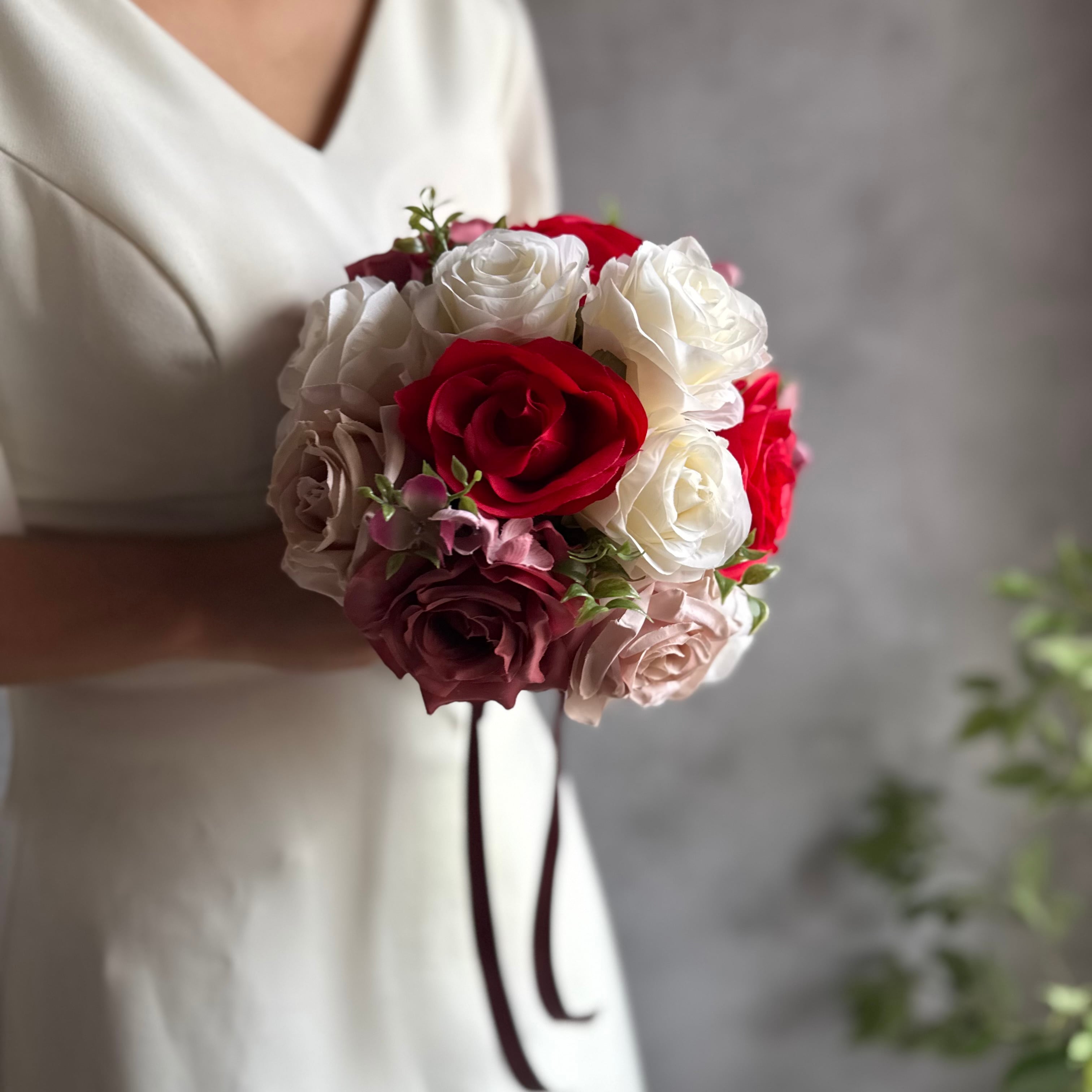 一つ一つのお花に、心を込めてお造りしています•*・クラシカルで華やかなラウンドブーケ。