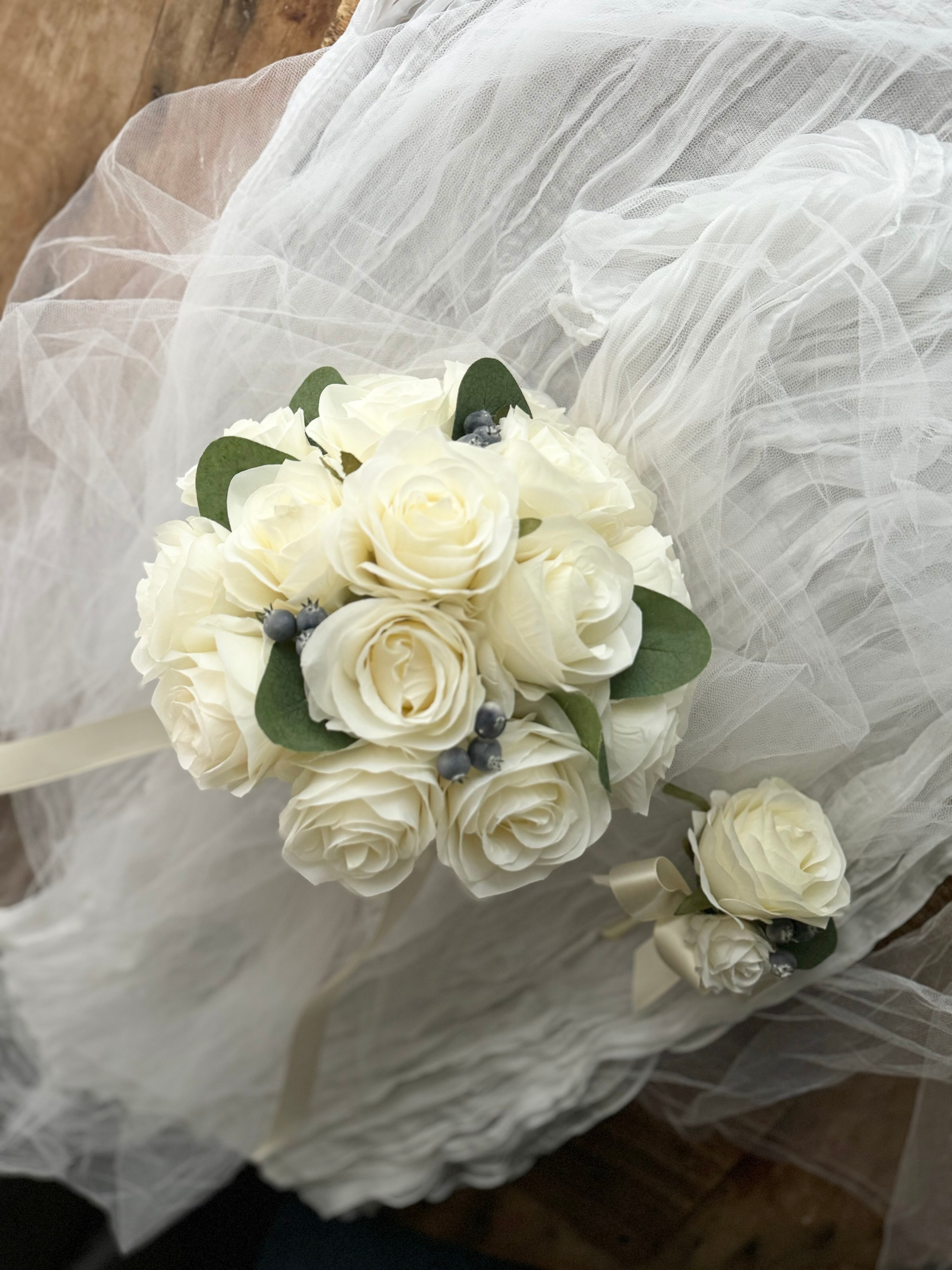 アーティフィシャルフラワー・造花のブーケです(‷ˊᗜˋ‷)ブートニア付き