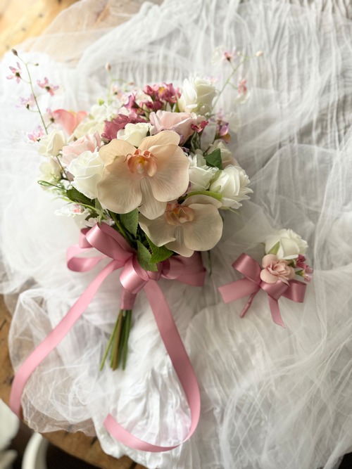 アーティフィシャルフラワー・造花のブーケです(‷ˊᗜˋ‷)ブートニア付き