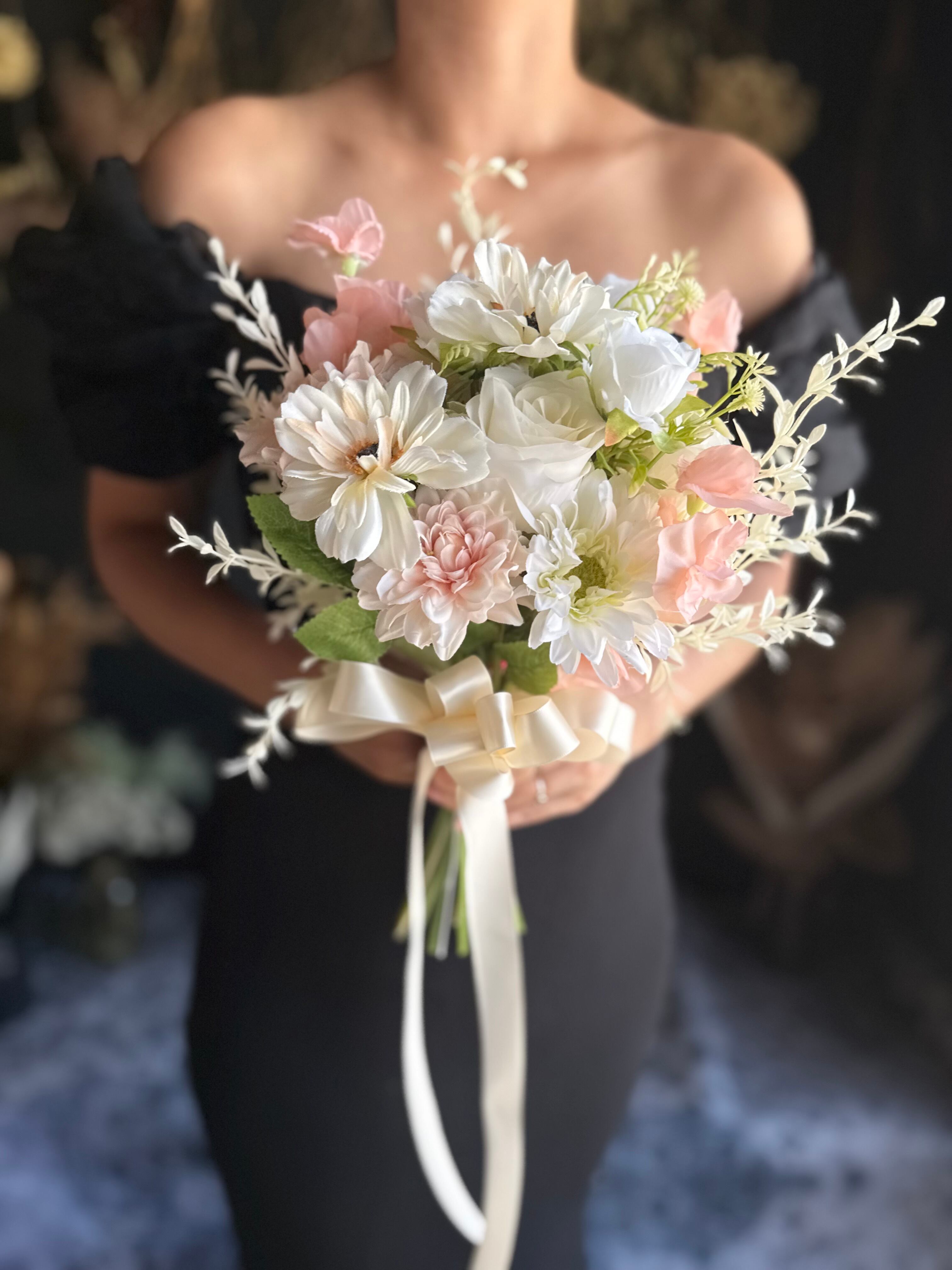 永遠に枯れない造花ブーケだから、挙式後も思い出として長く飾っていただけます。