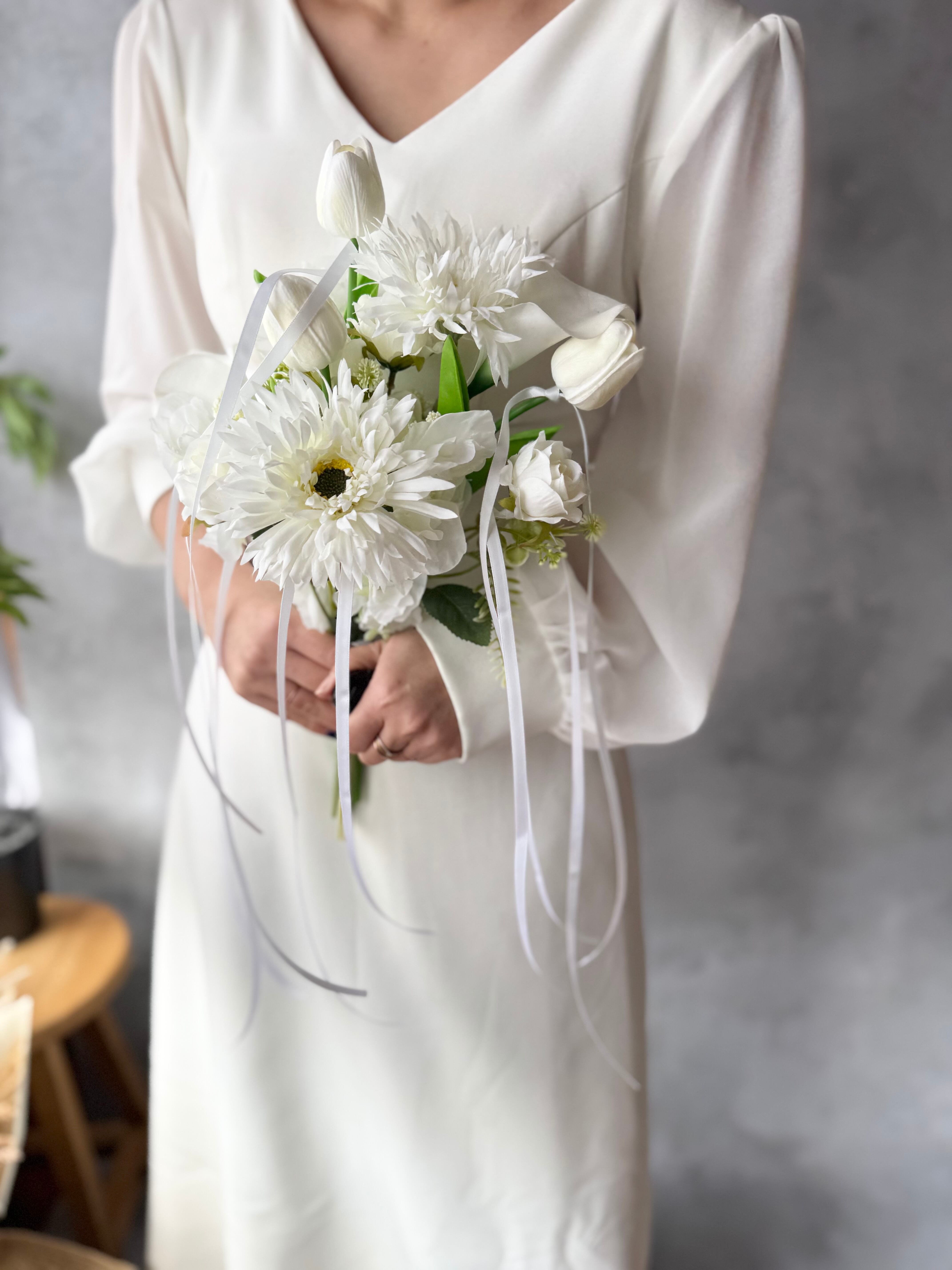 ホワイト系の可愛いお花たちのウェディングブーケ•*・
