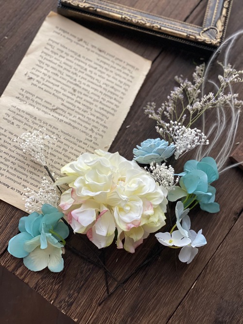 造花の髪飾りセットです(*^^*)たまにプリザーブドやドライフラワー混ざってます♪