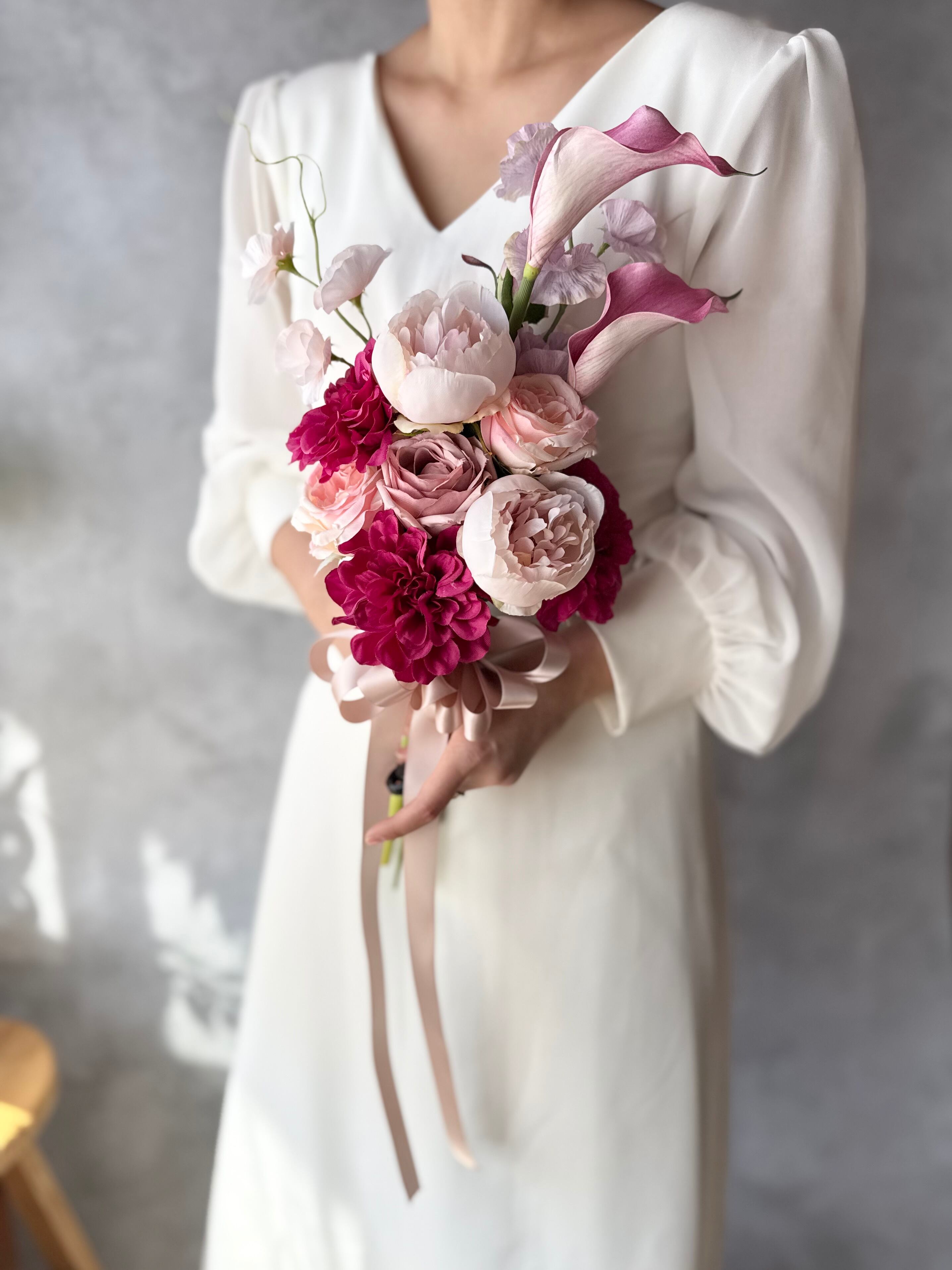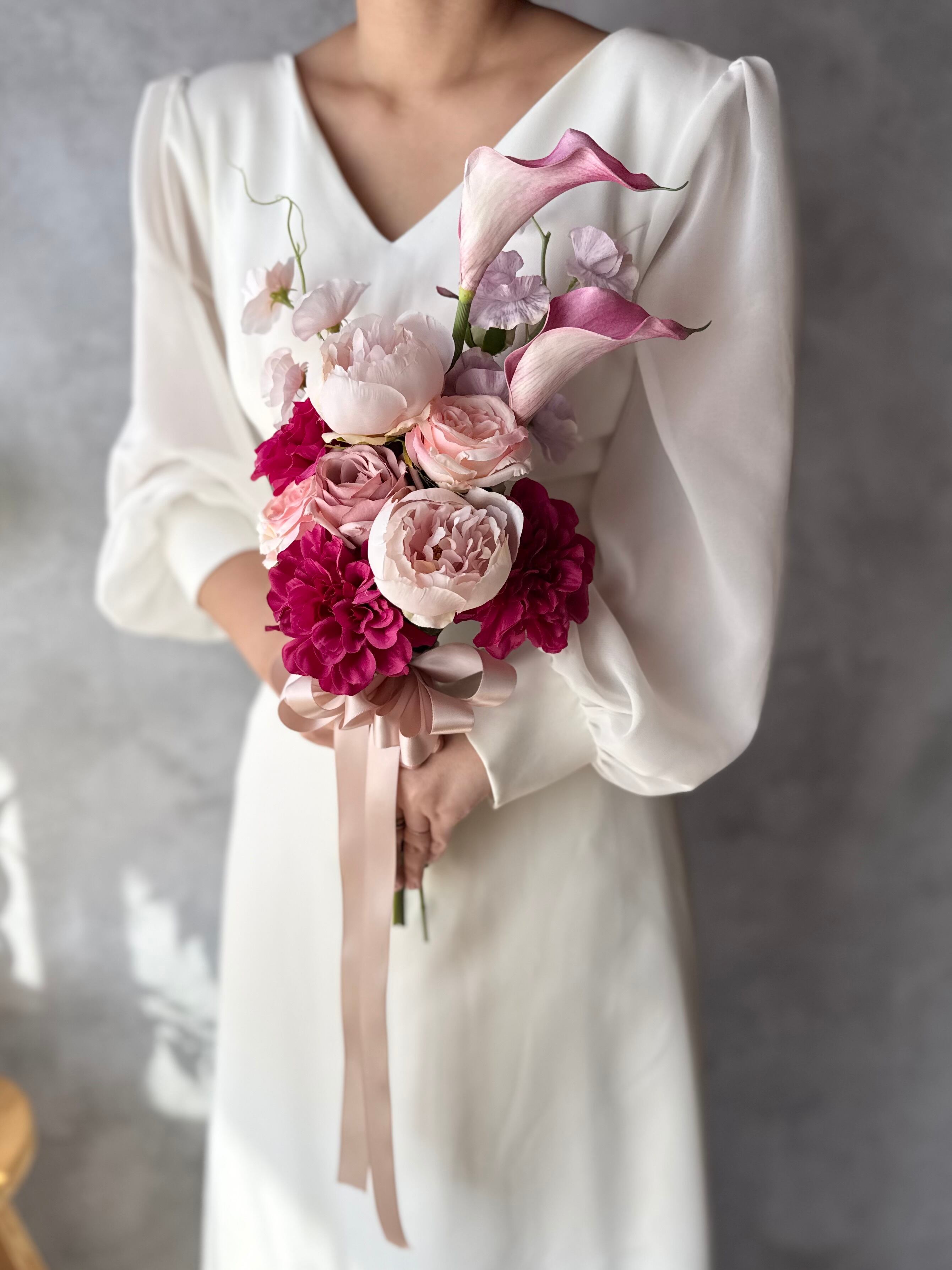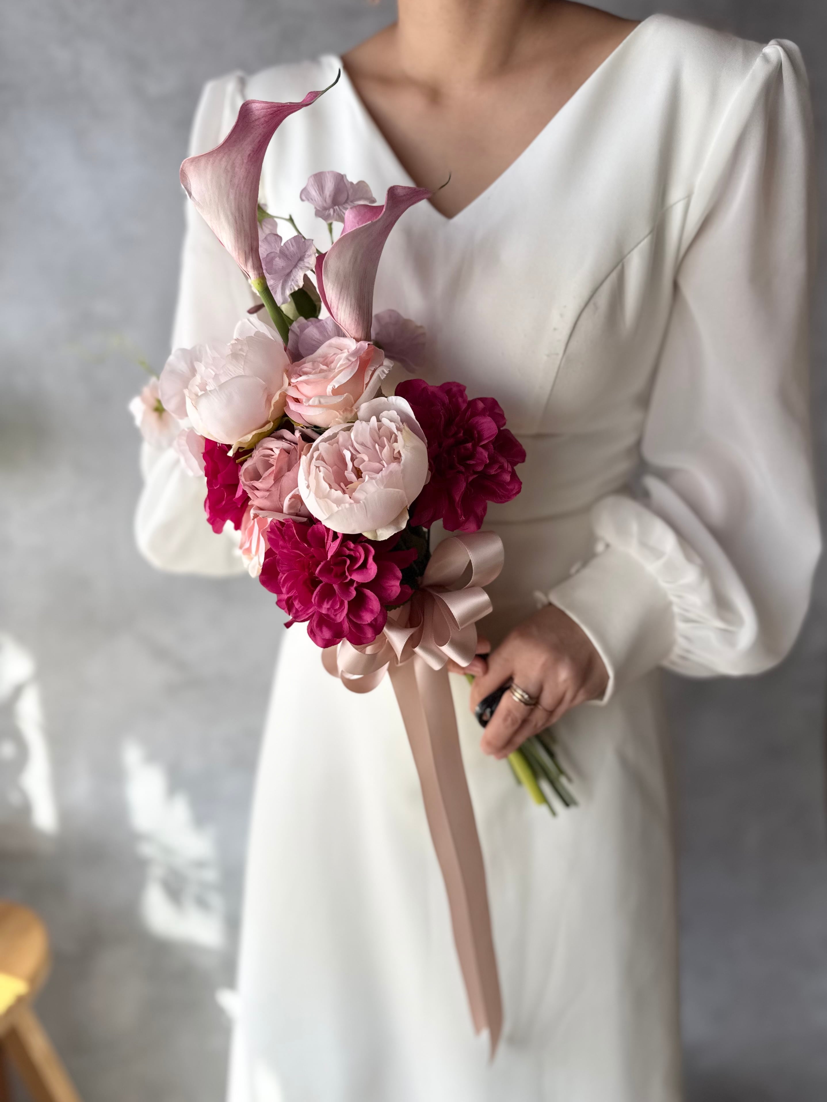 アーティフィシャルフラワー・造花のブーケです(‷ˊᗜˋ‷)ブートニア付き