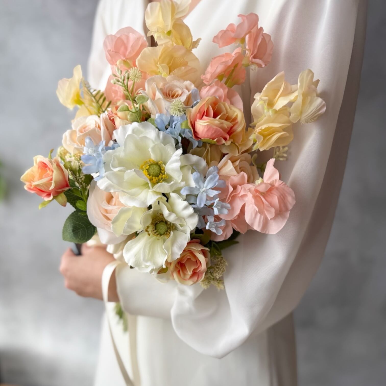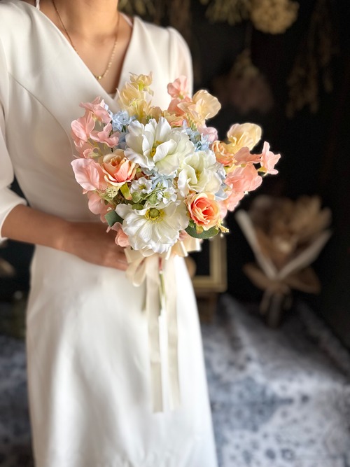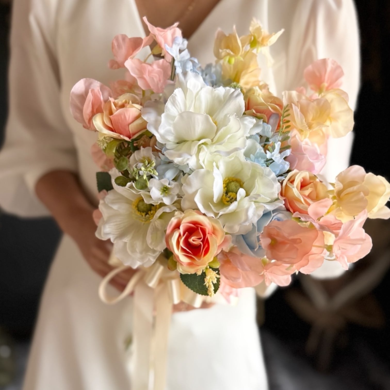 アーティフィシャルフラワーなので、持ち運びも安心&お式後も記念に残せます•*・
