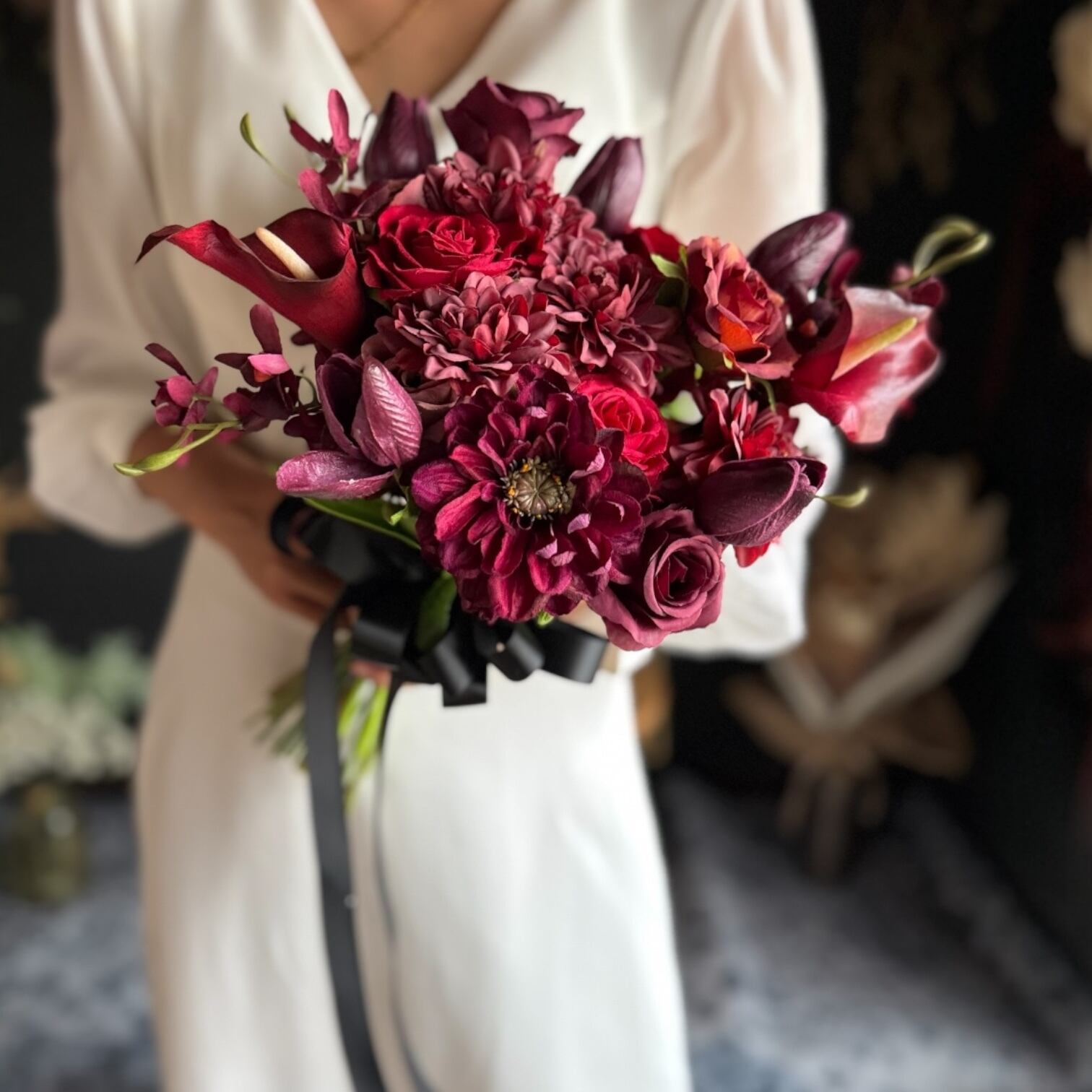 造花(アーティフィシャルフラワー)なので、前撮りや結婚式本番はもちろん、挙式後もそのままインテリアとして飾っていただけます。