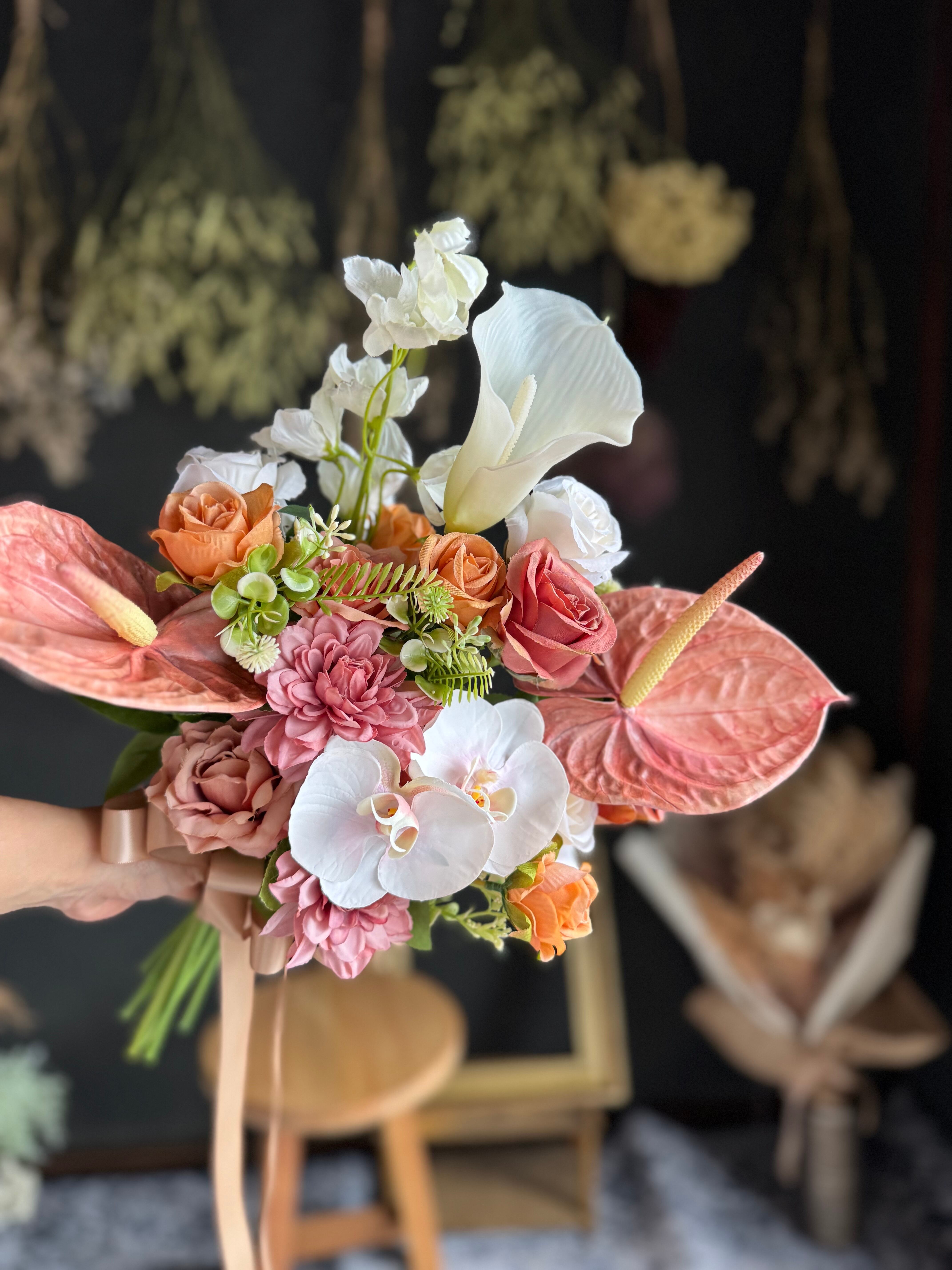 アーティフィシャルフラワーなので、持ち運びも安心&お式後も記念に残せます•*・
