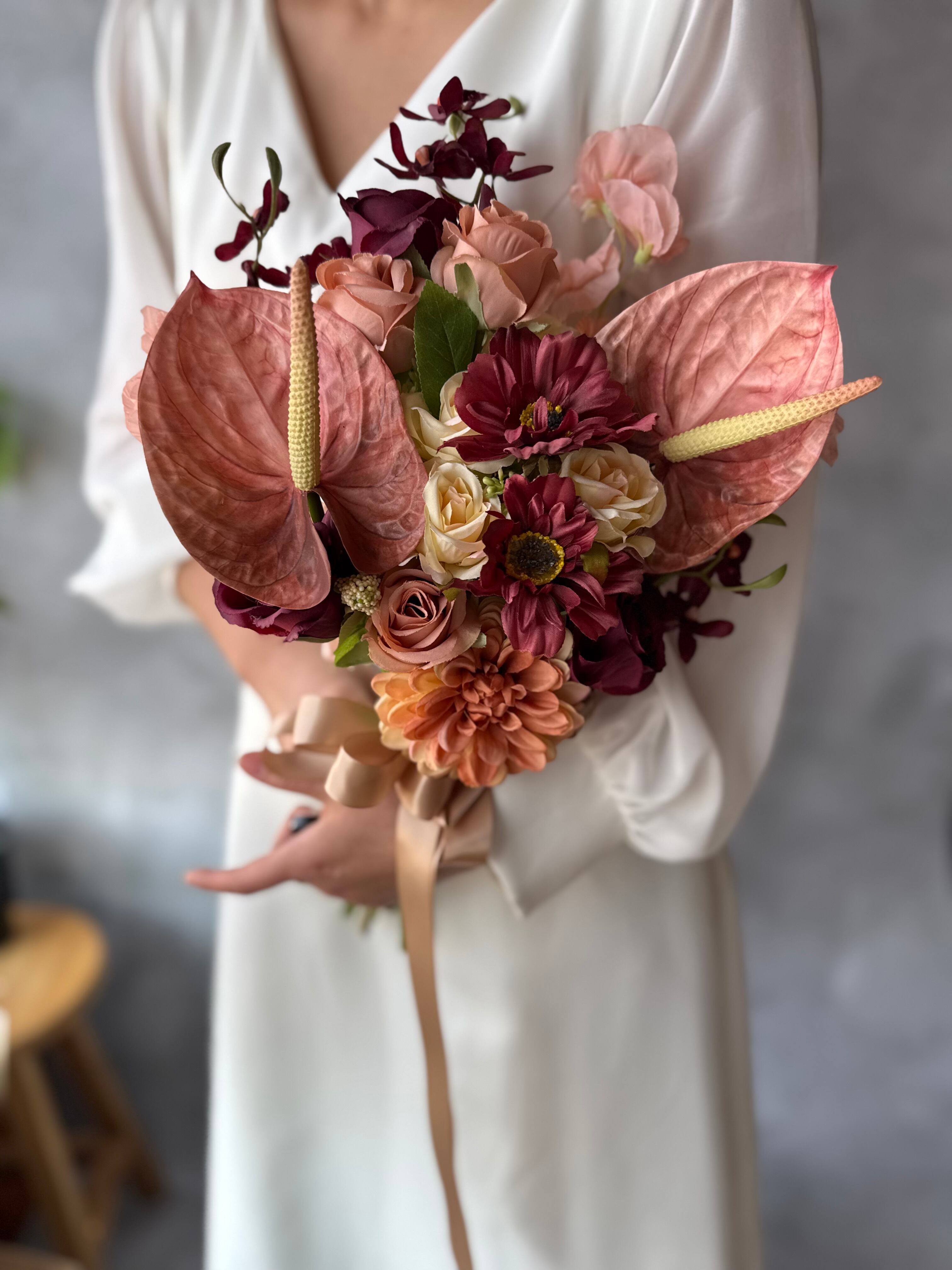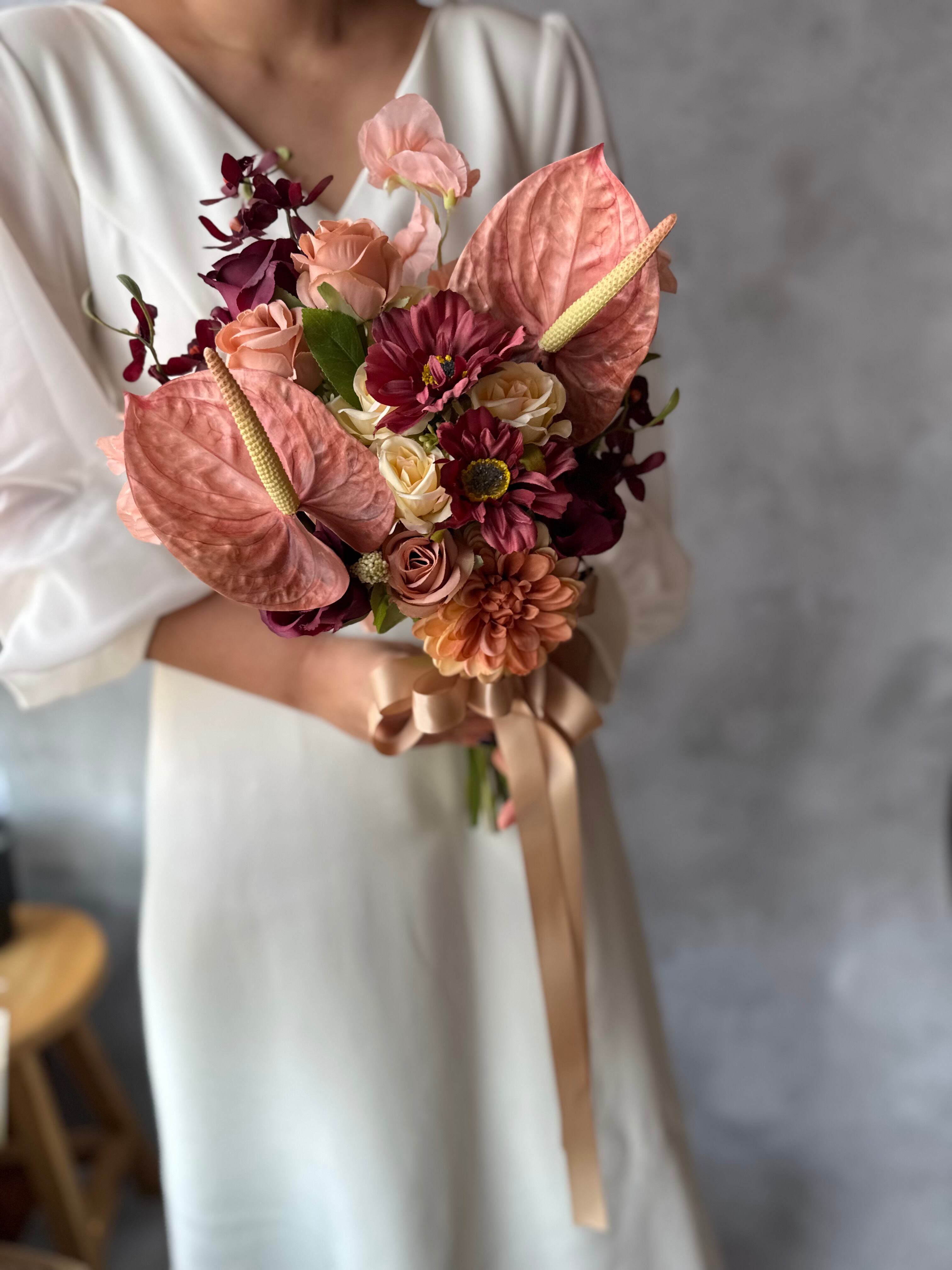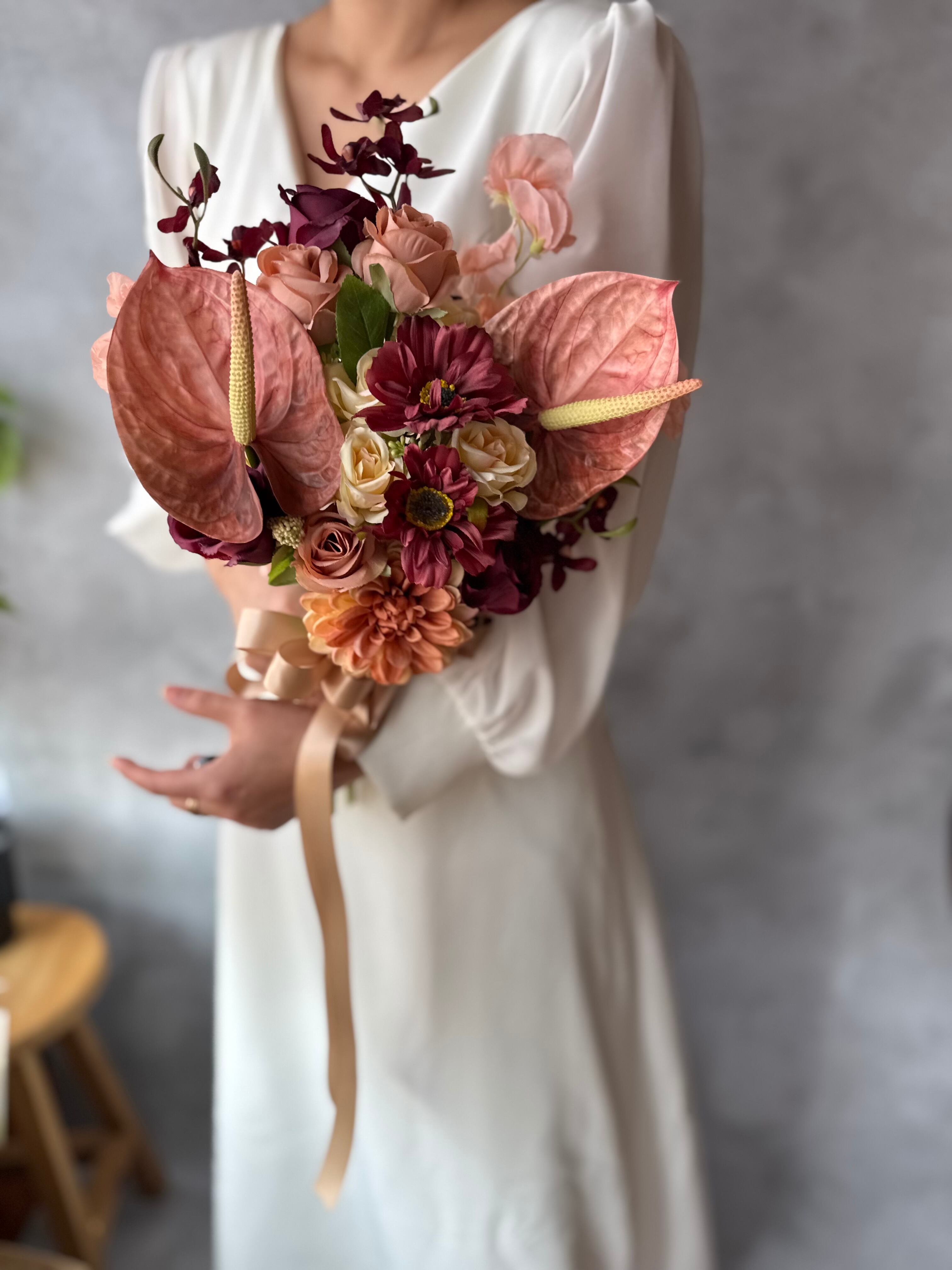 人気のテラコッタ色のおしゃれなクラッチブーケ•*・大人の上品さと個性を兼ね備えた、唯一無二のブーケです•*・
