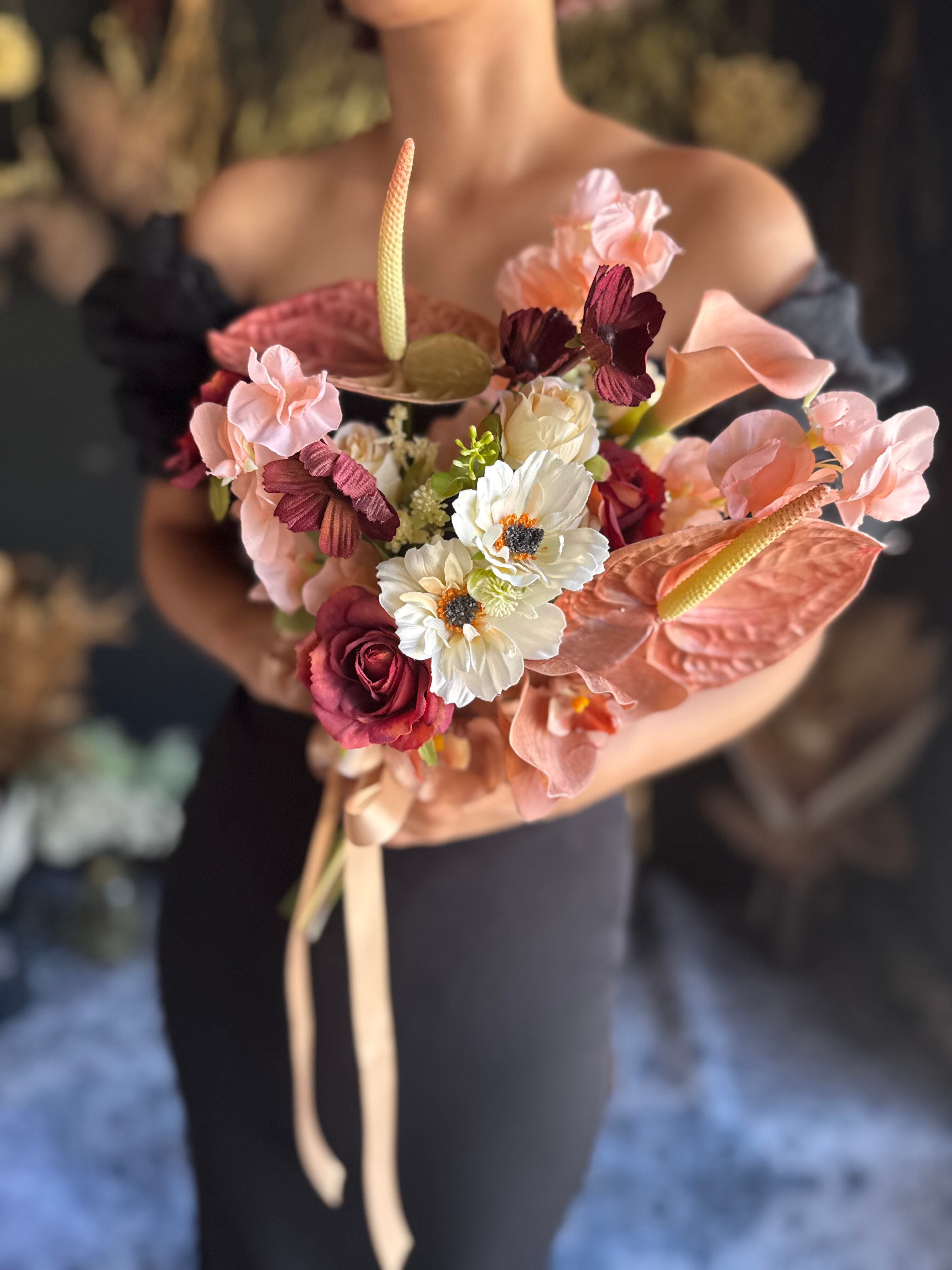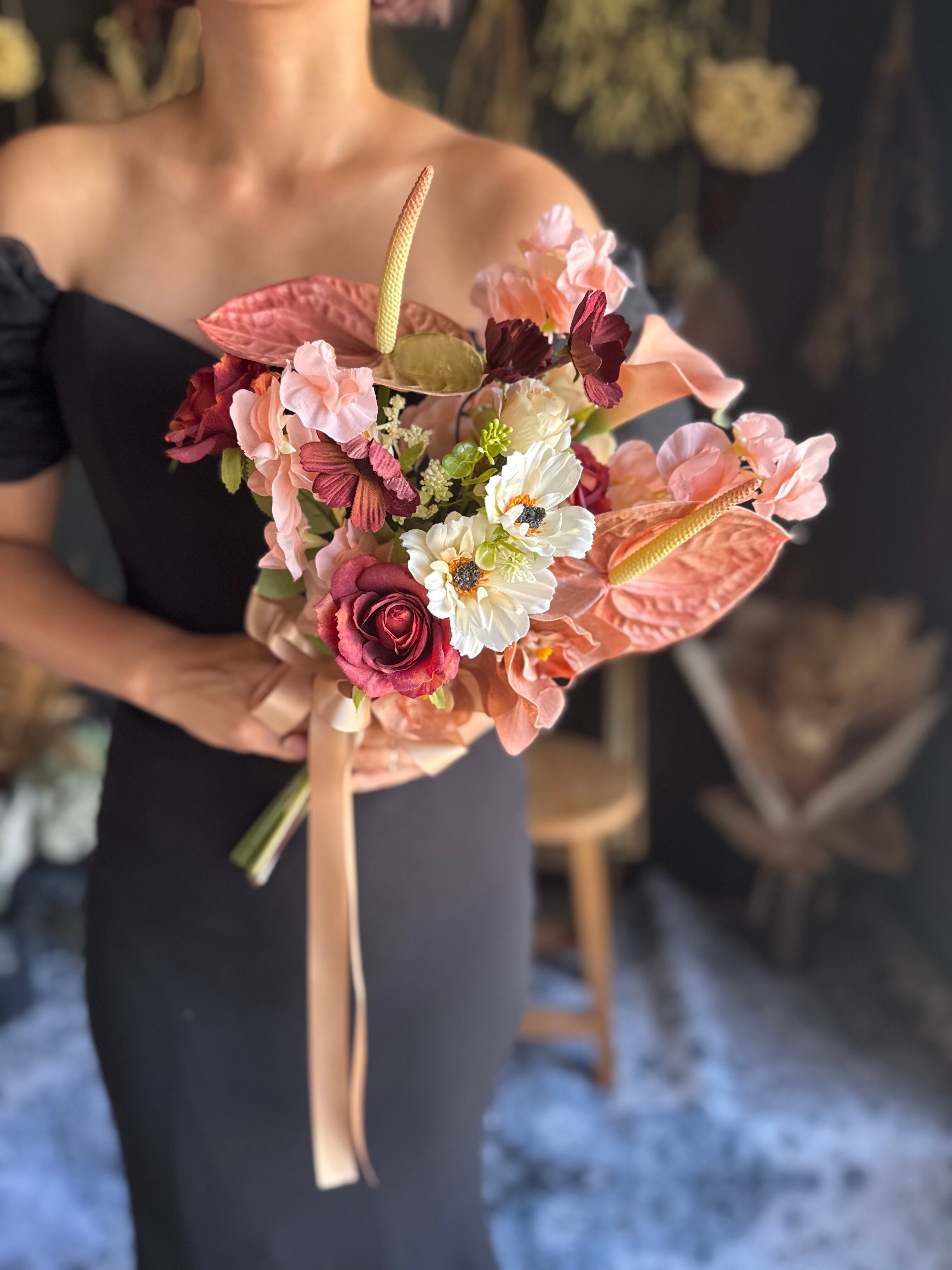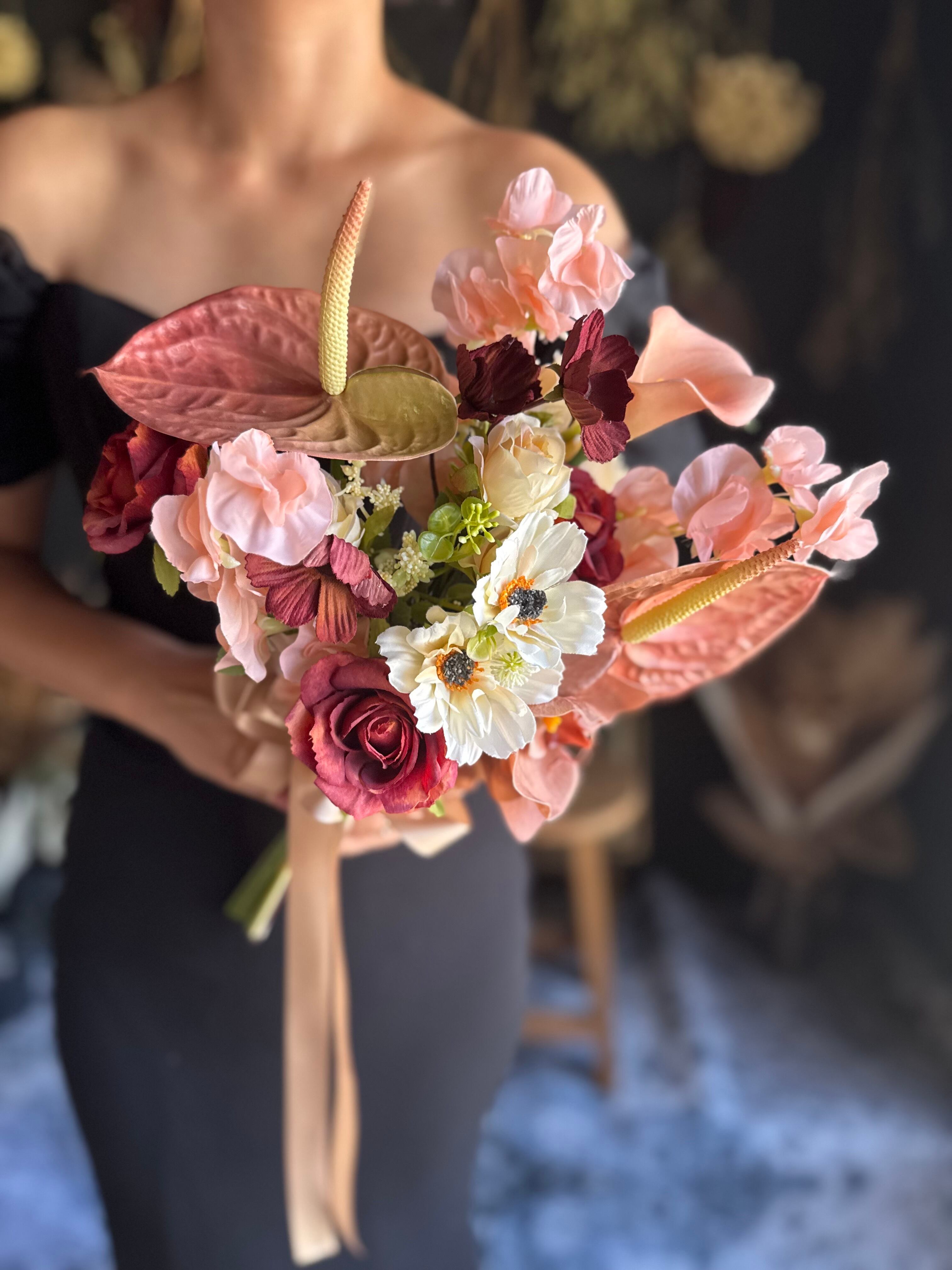 人気のテラコッタ色のおしゃれなクラッチブーケ•*・大人の上品さと個性を兼ね備えた、唯一無二のブーケです•*・