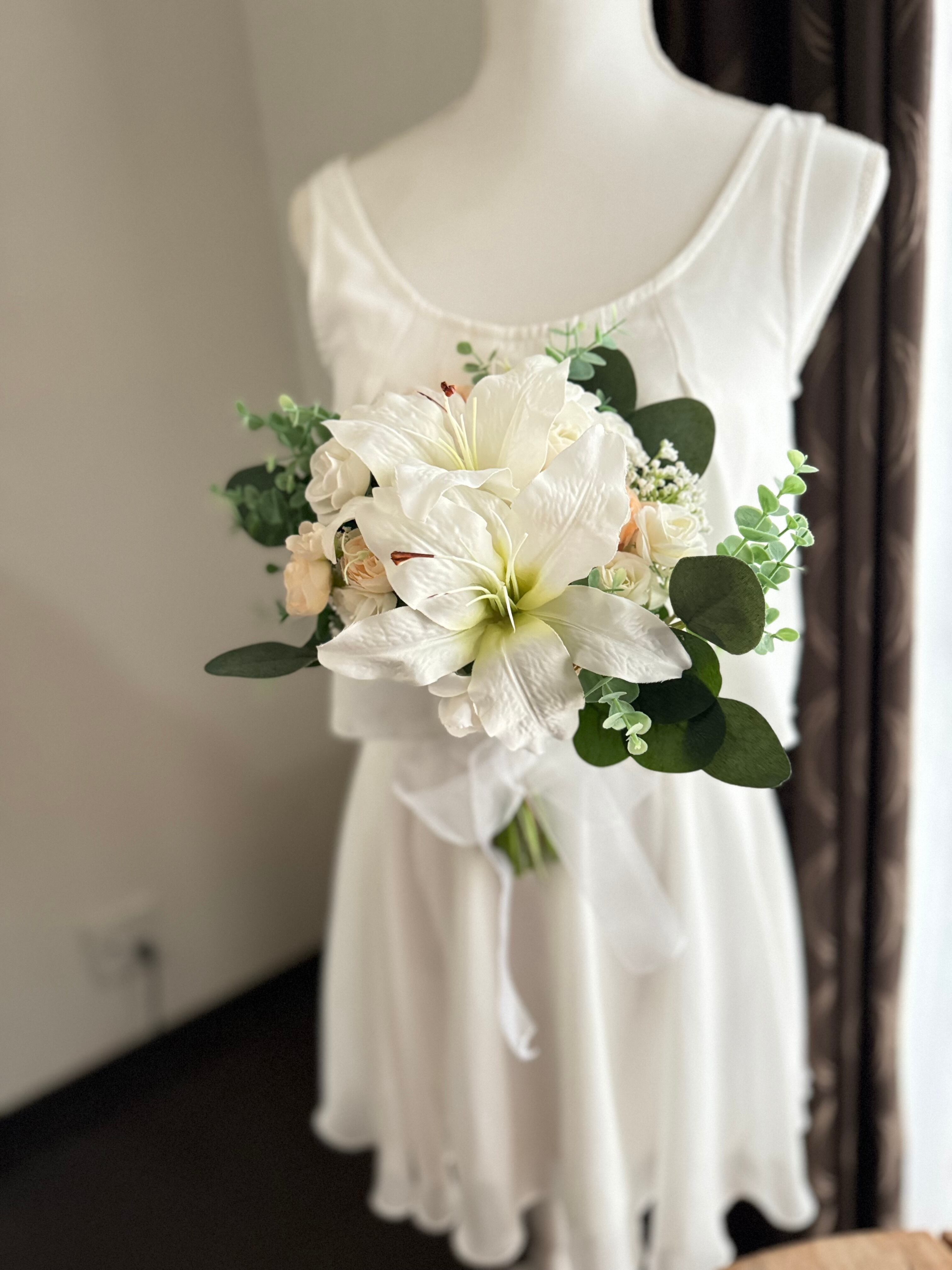 バラ、ミニバラ、ユーカリ、カサブランカ