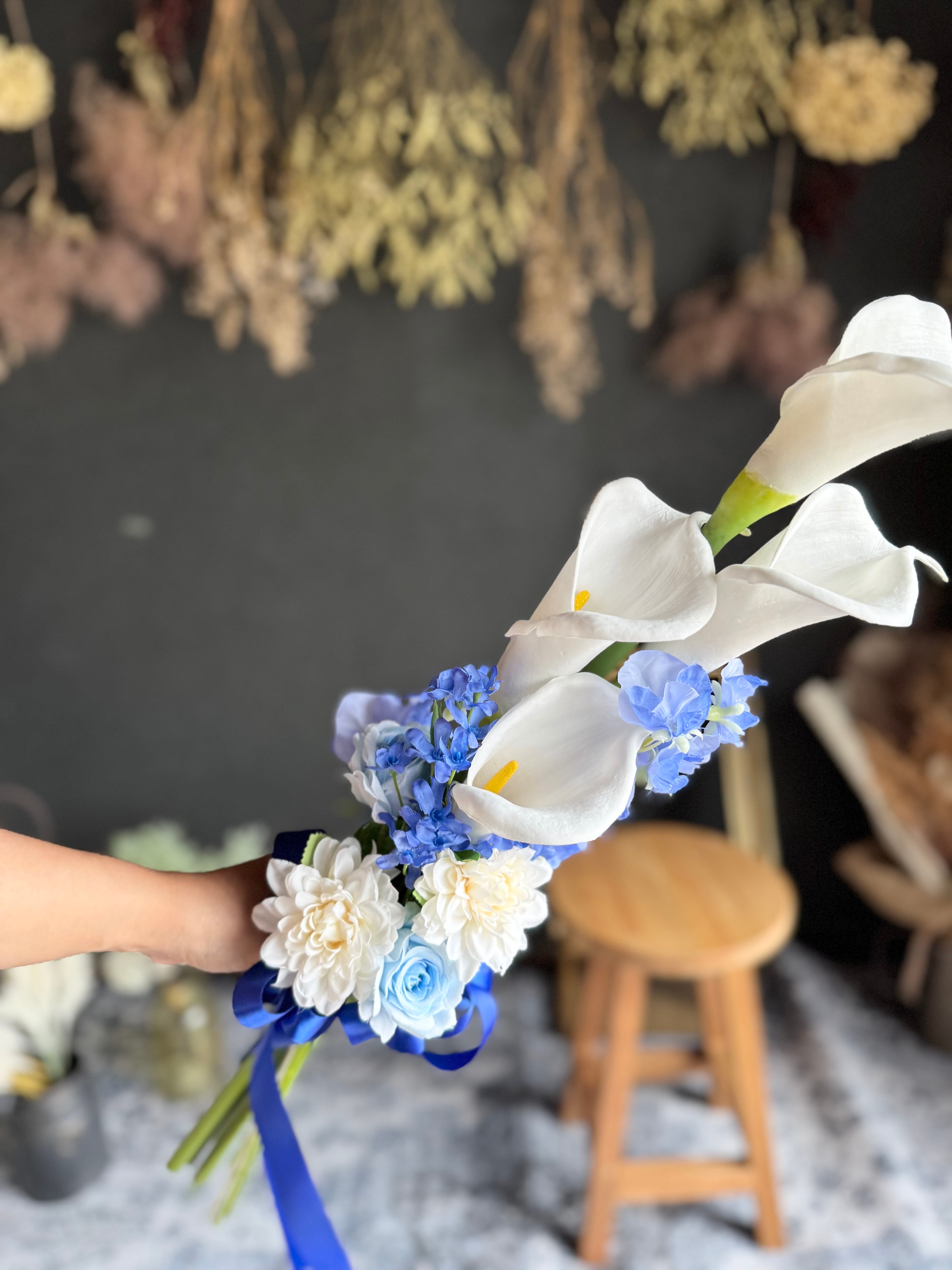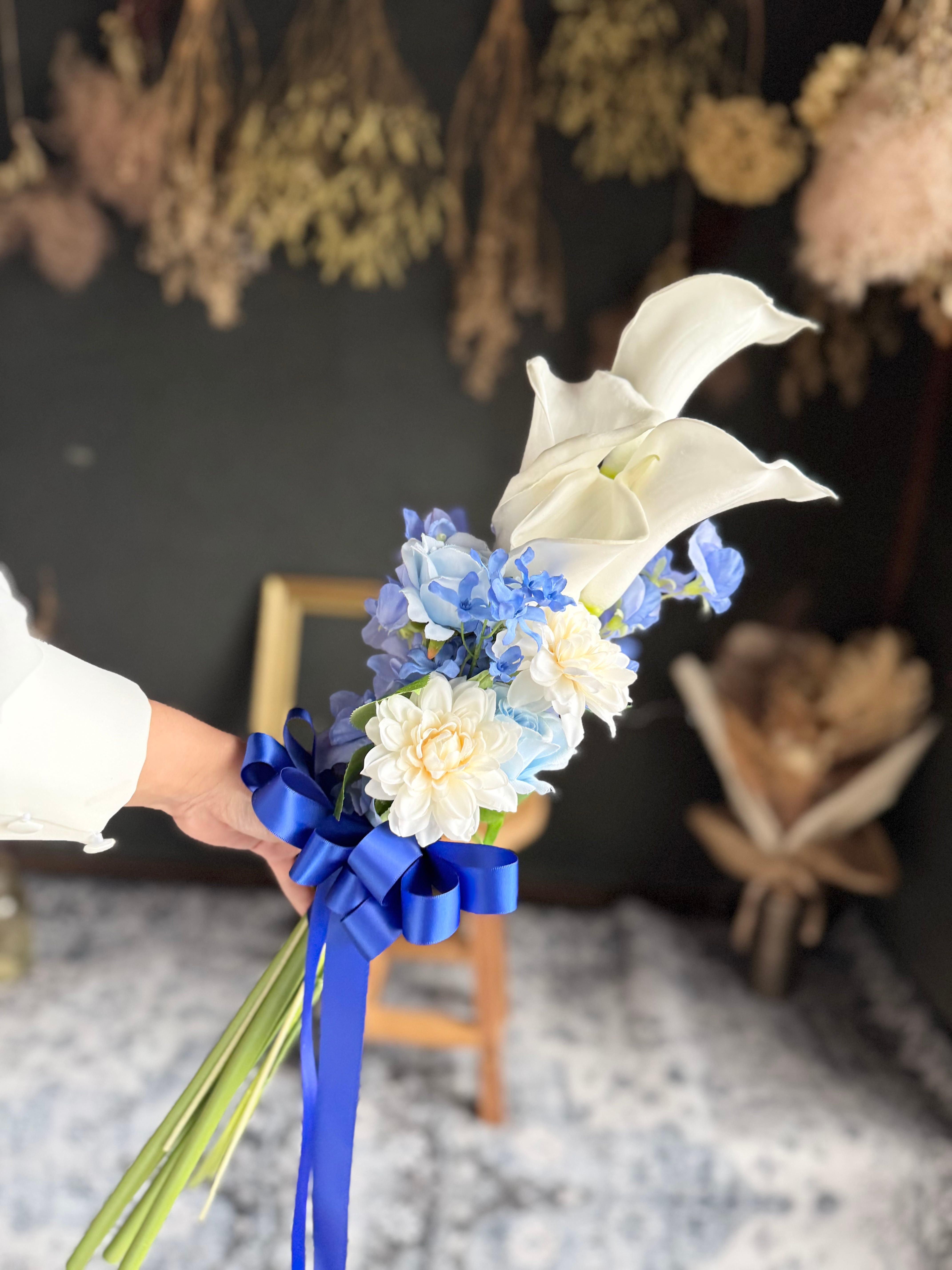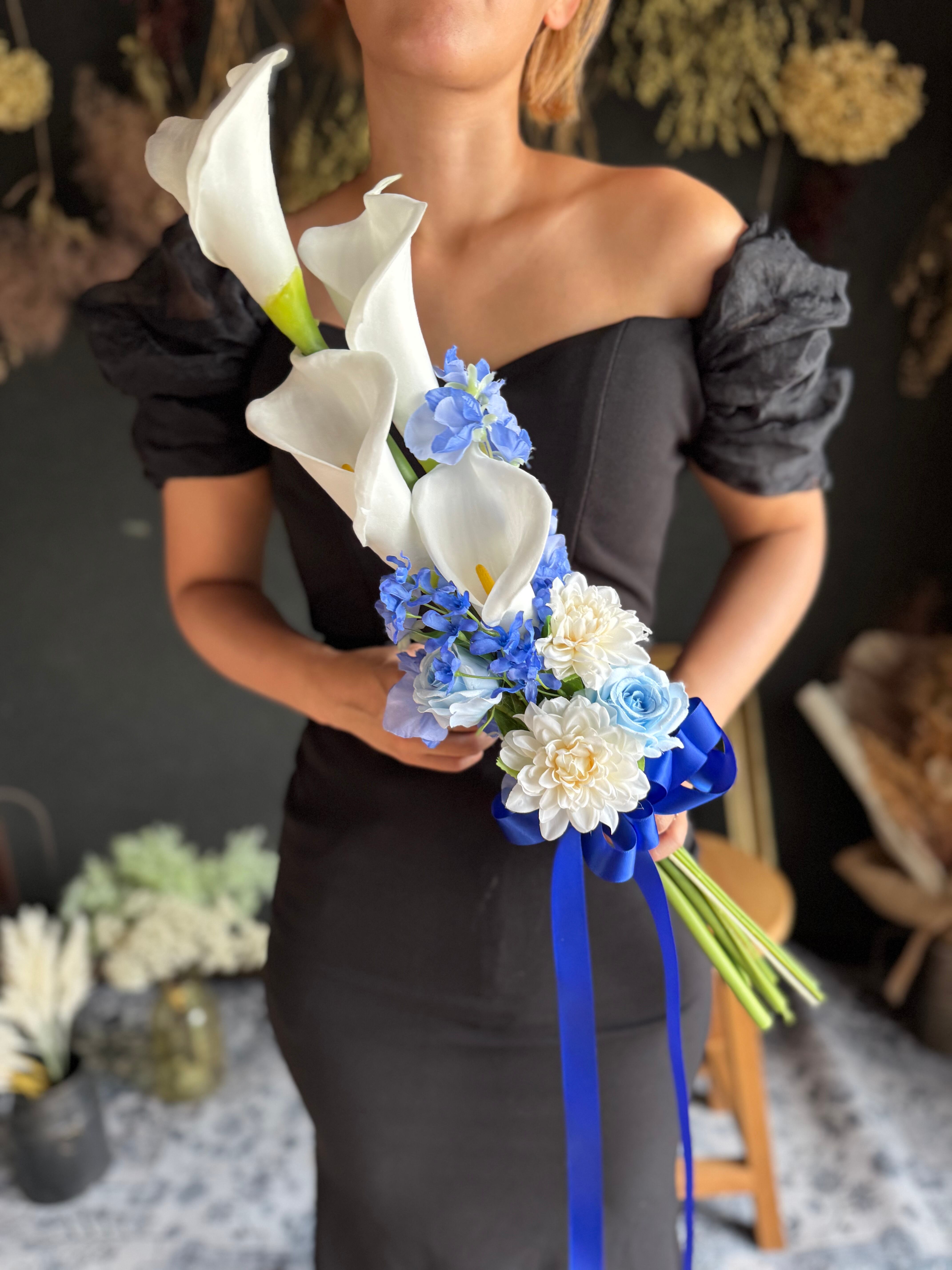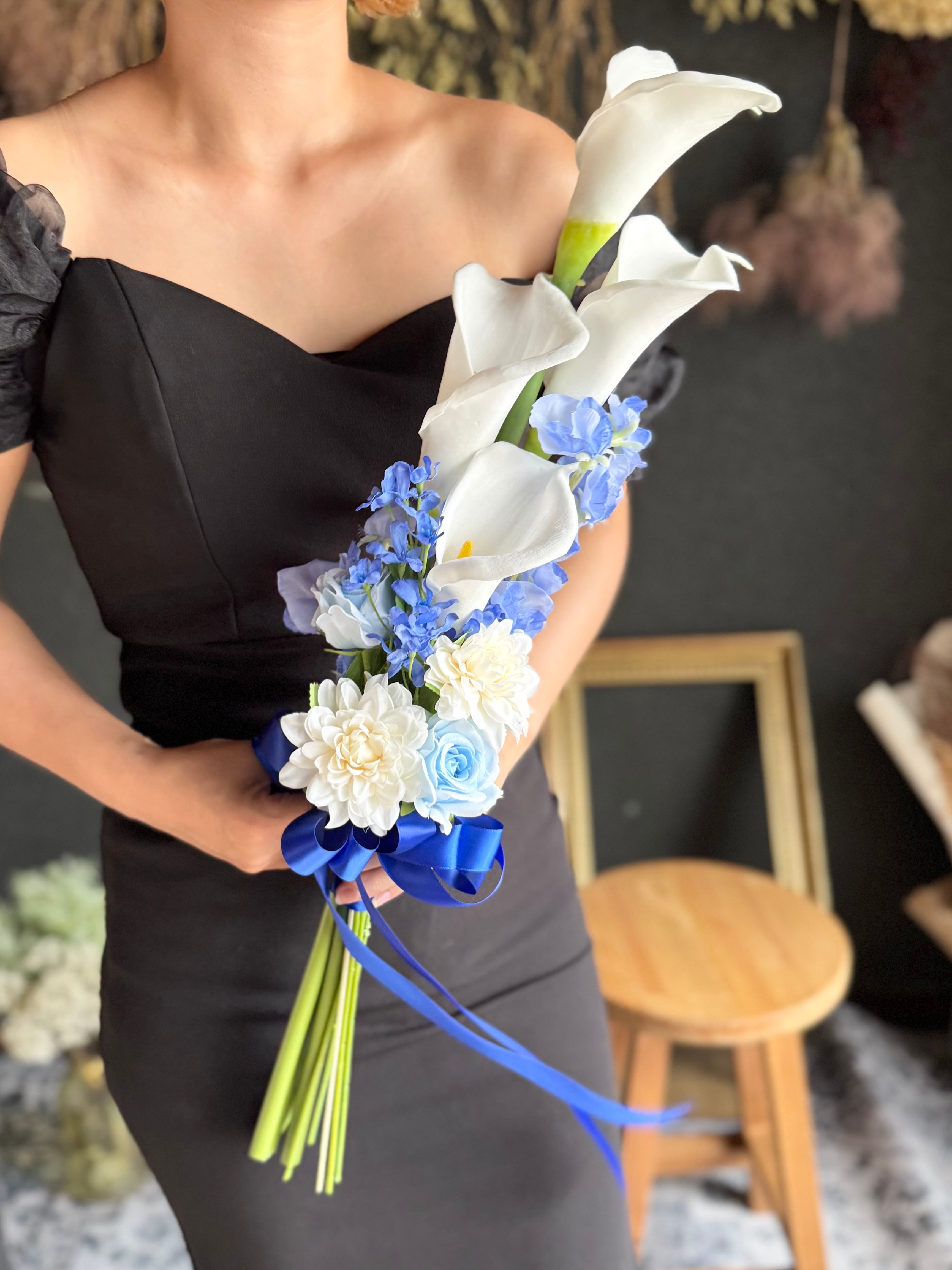 マーメイドラインのドレスや大人っぽいスタイリッシュなドレスにピッタリのブーケです•*・