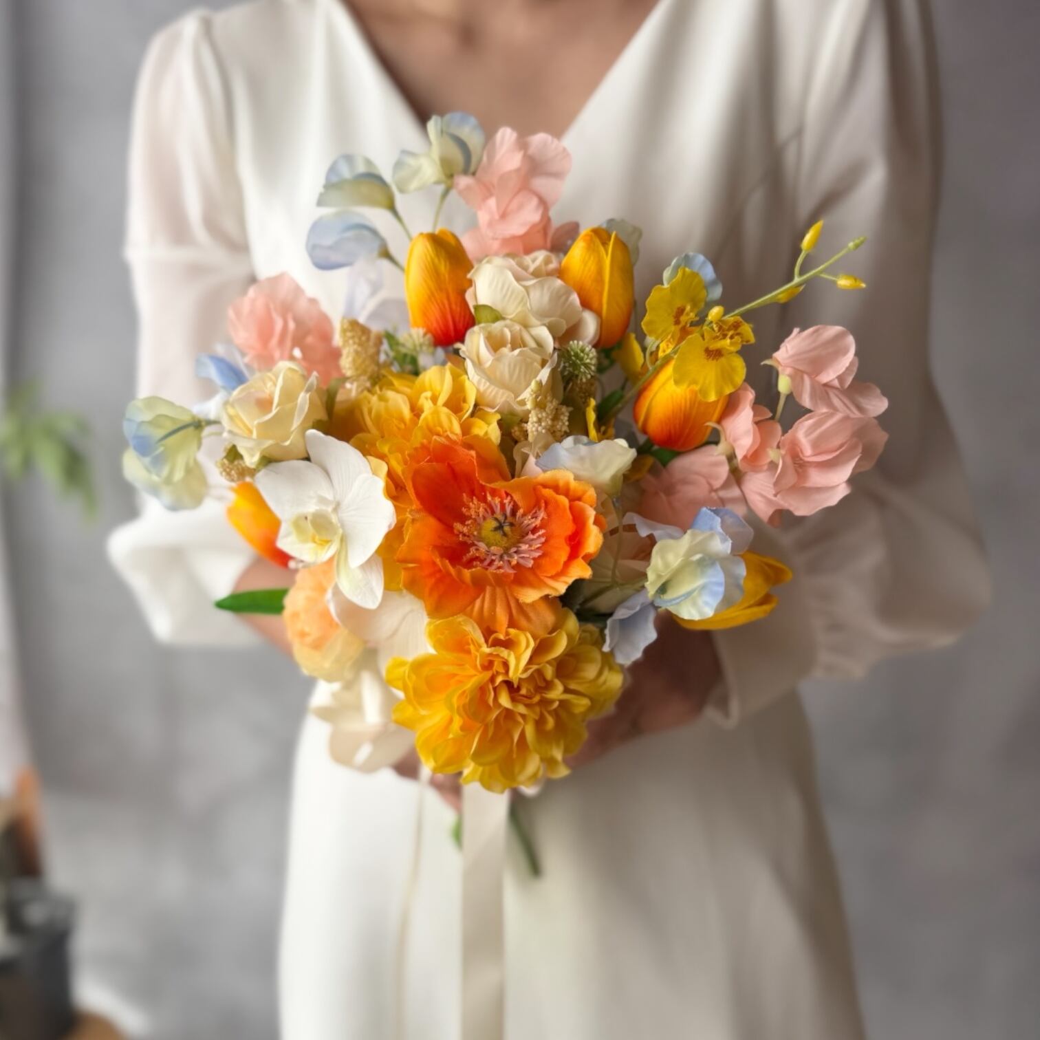チューリップやポピー、胡蝶蘭などを合わせた