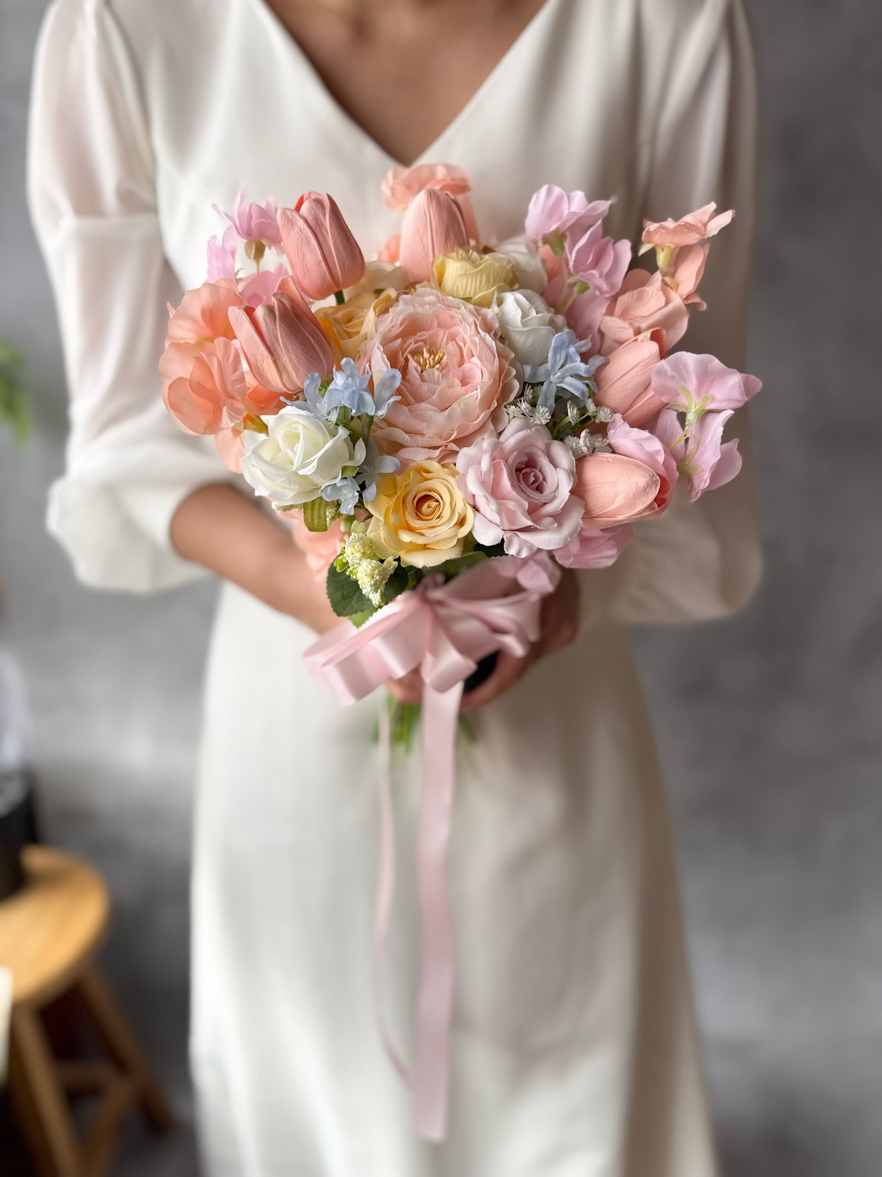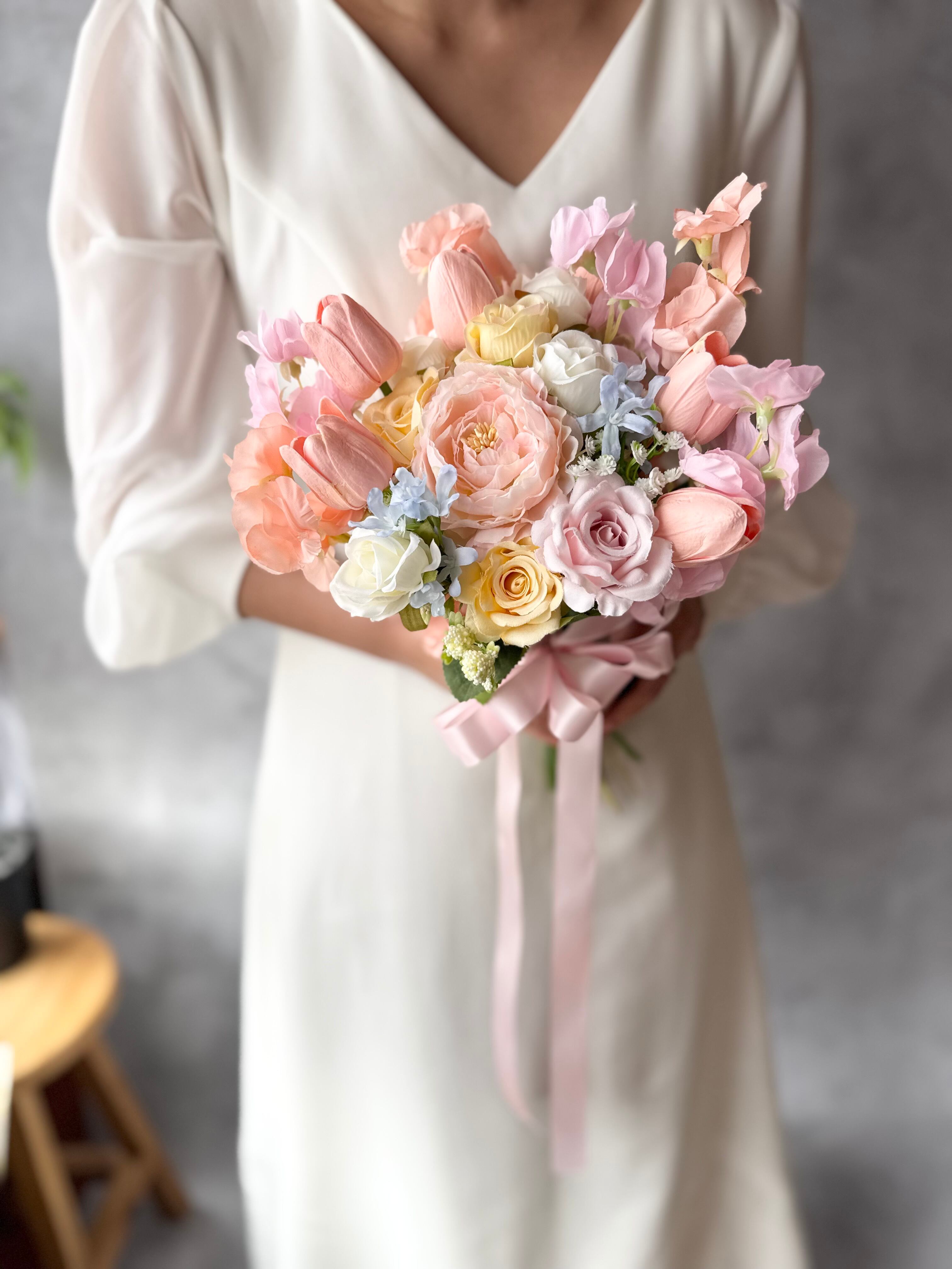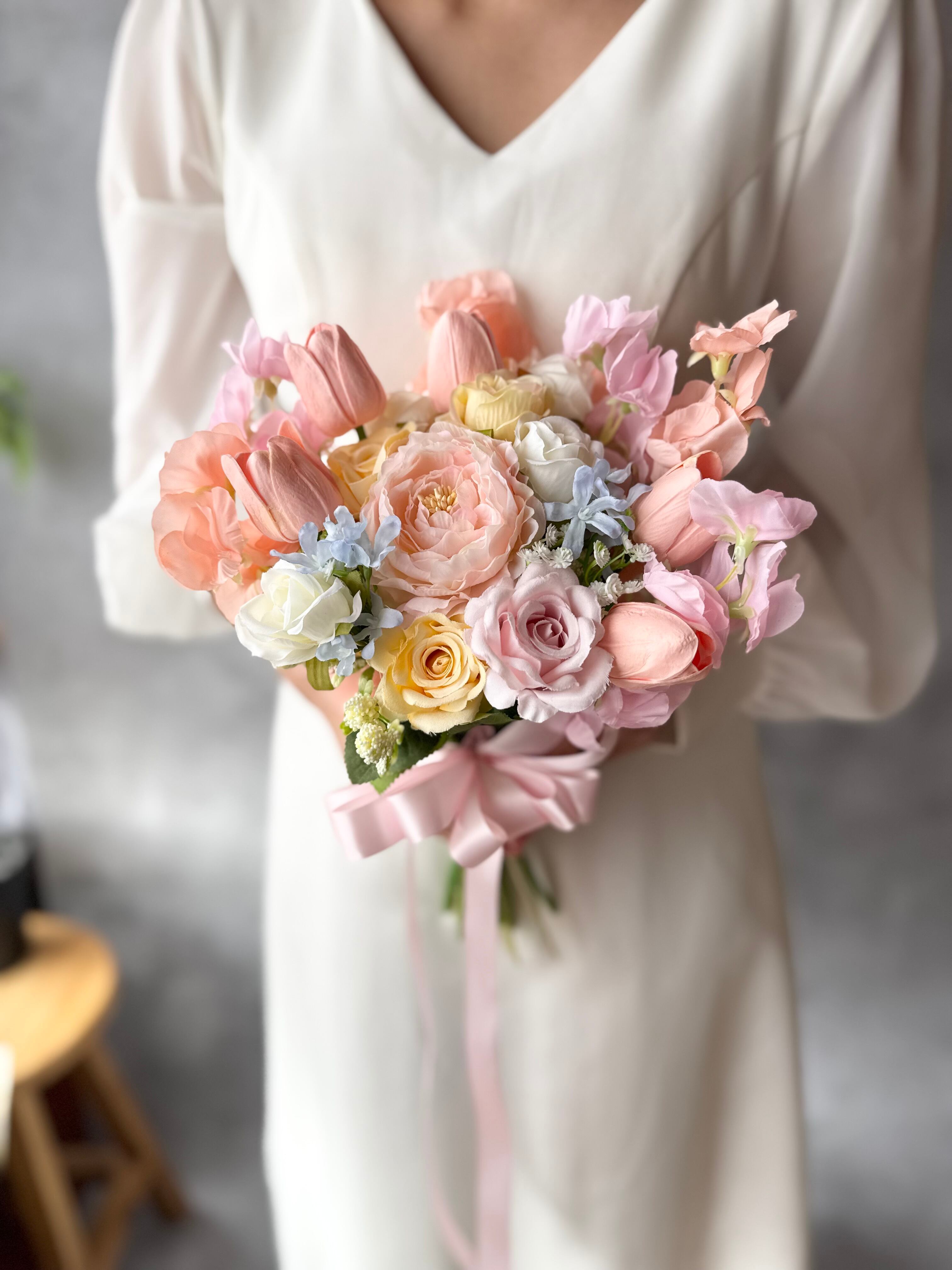 春の空気をまとったような優しい雰囲気のブーケです•*・