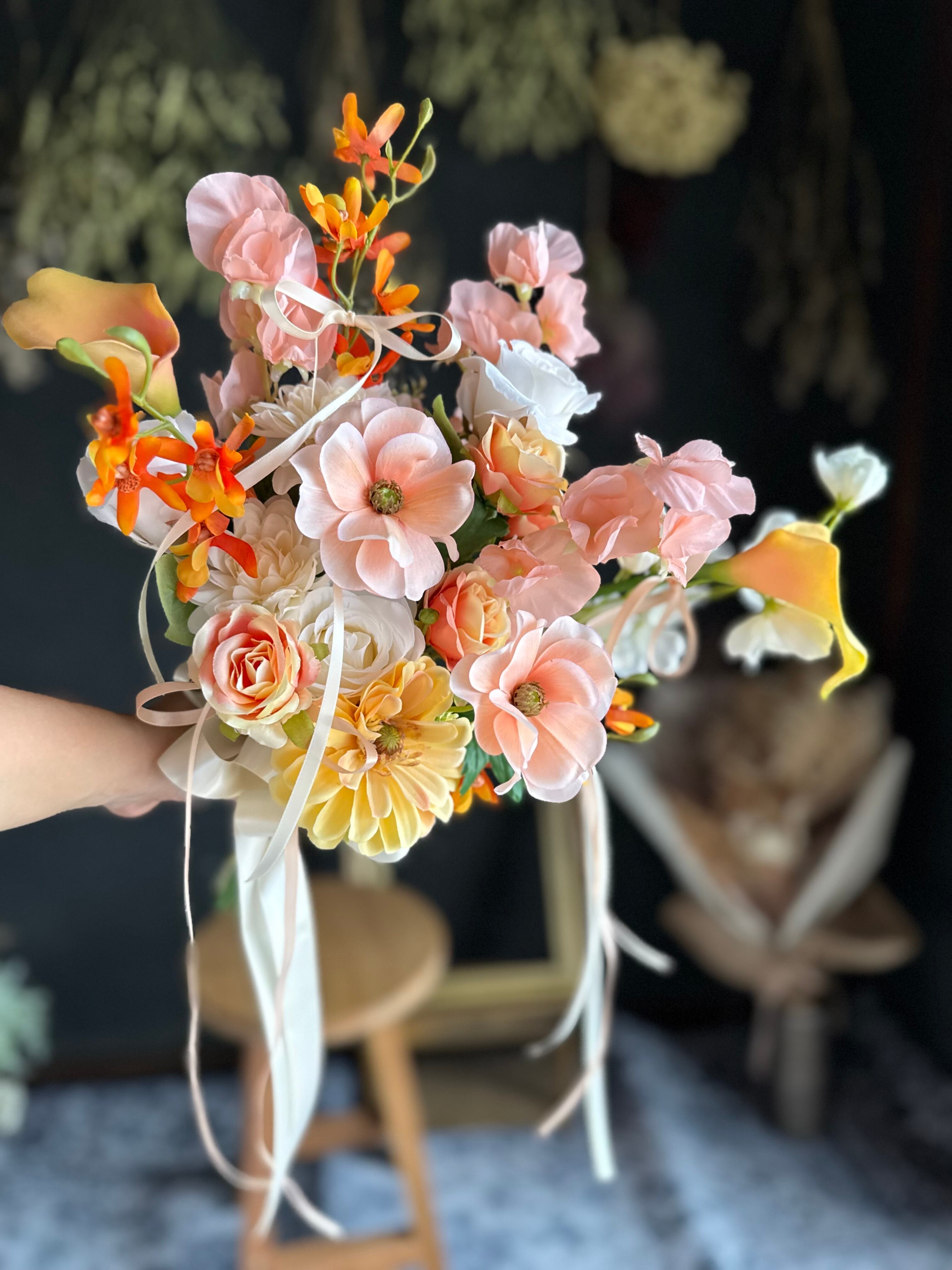 アーティフィシャルフラワー・造花のブーケです(‷ˊᗜˋ‷)ブートニア付き♪