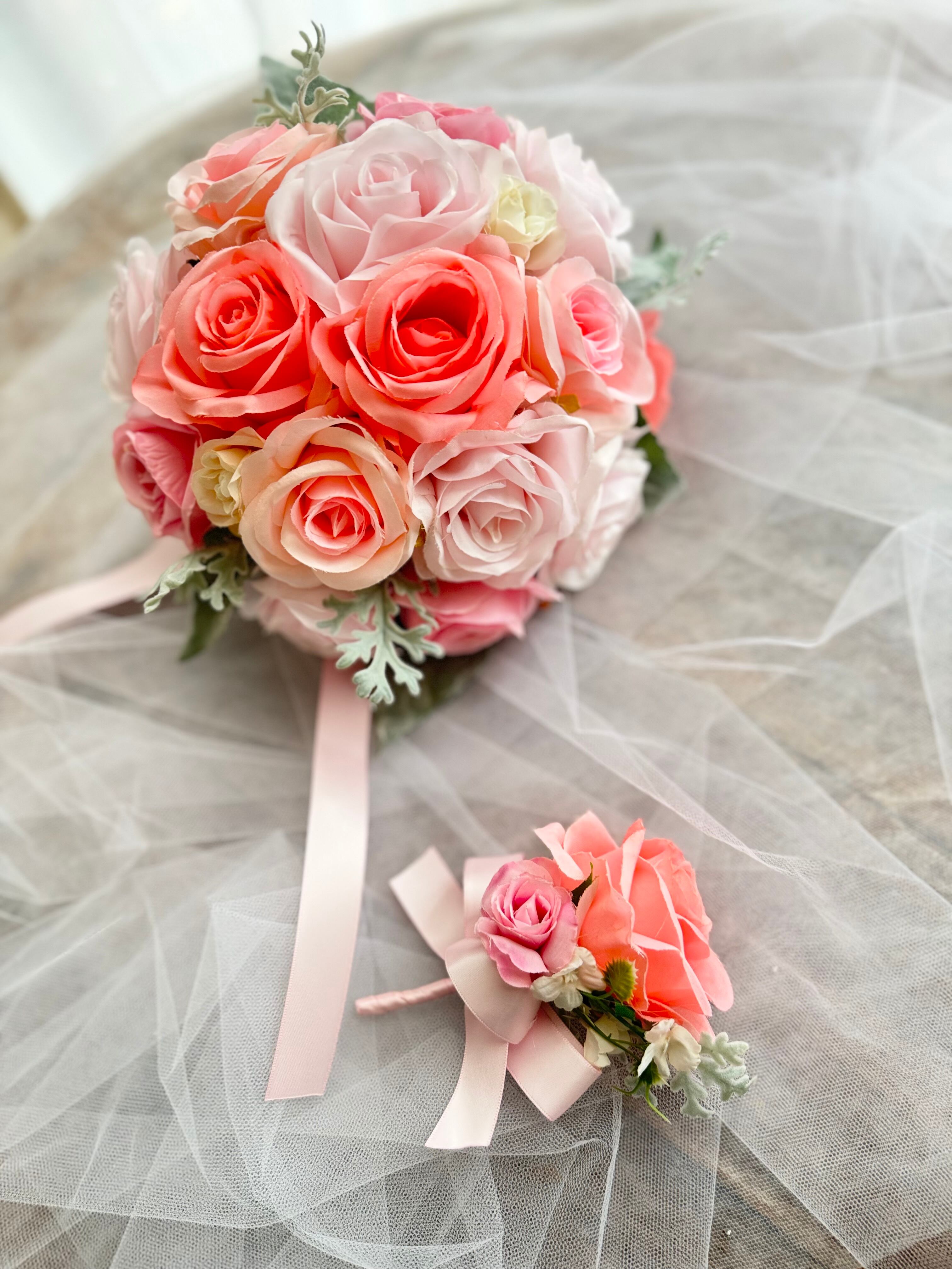 アーティフィシャルフラワー・造花のブーケです(‷ˊᗜˋ‷)ブートニア付き