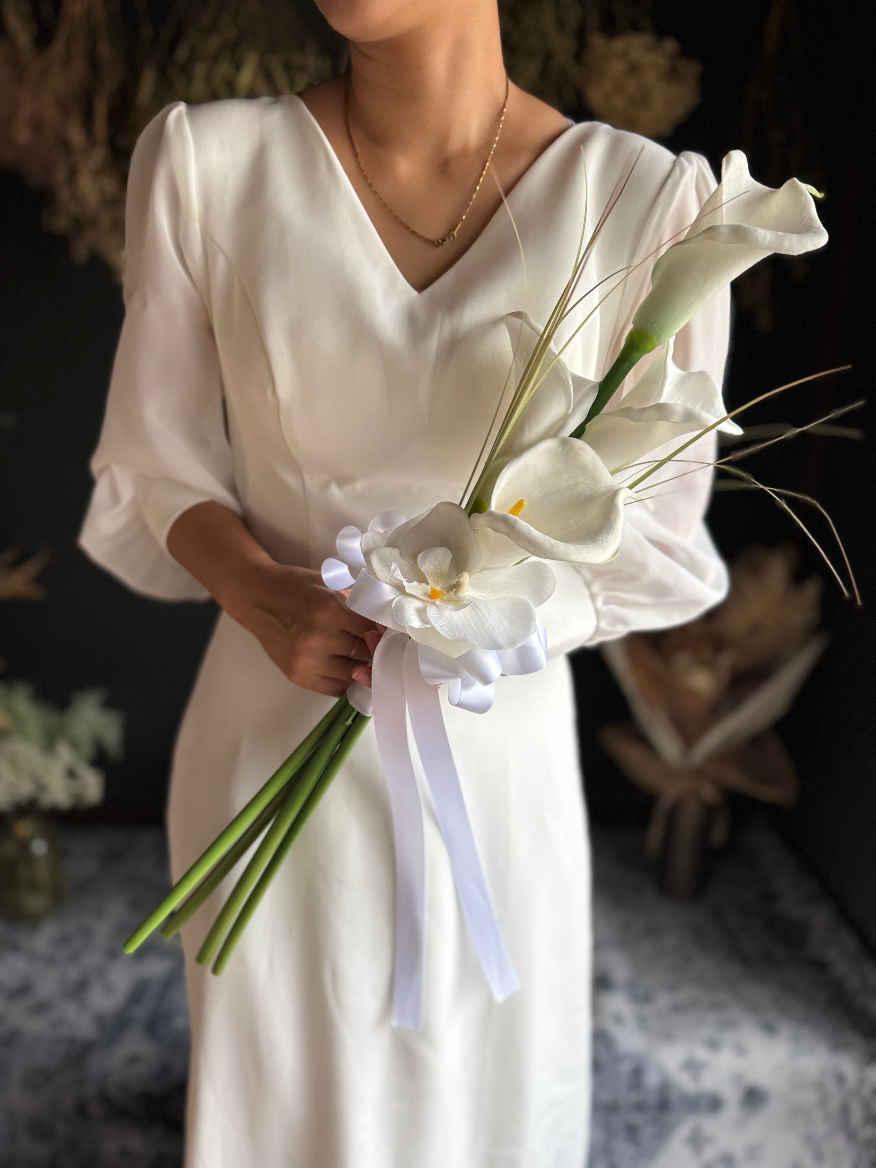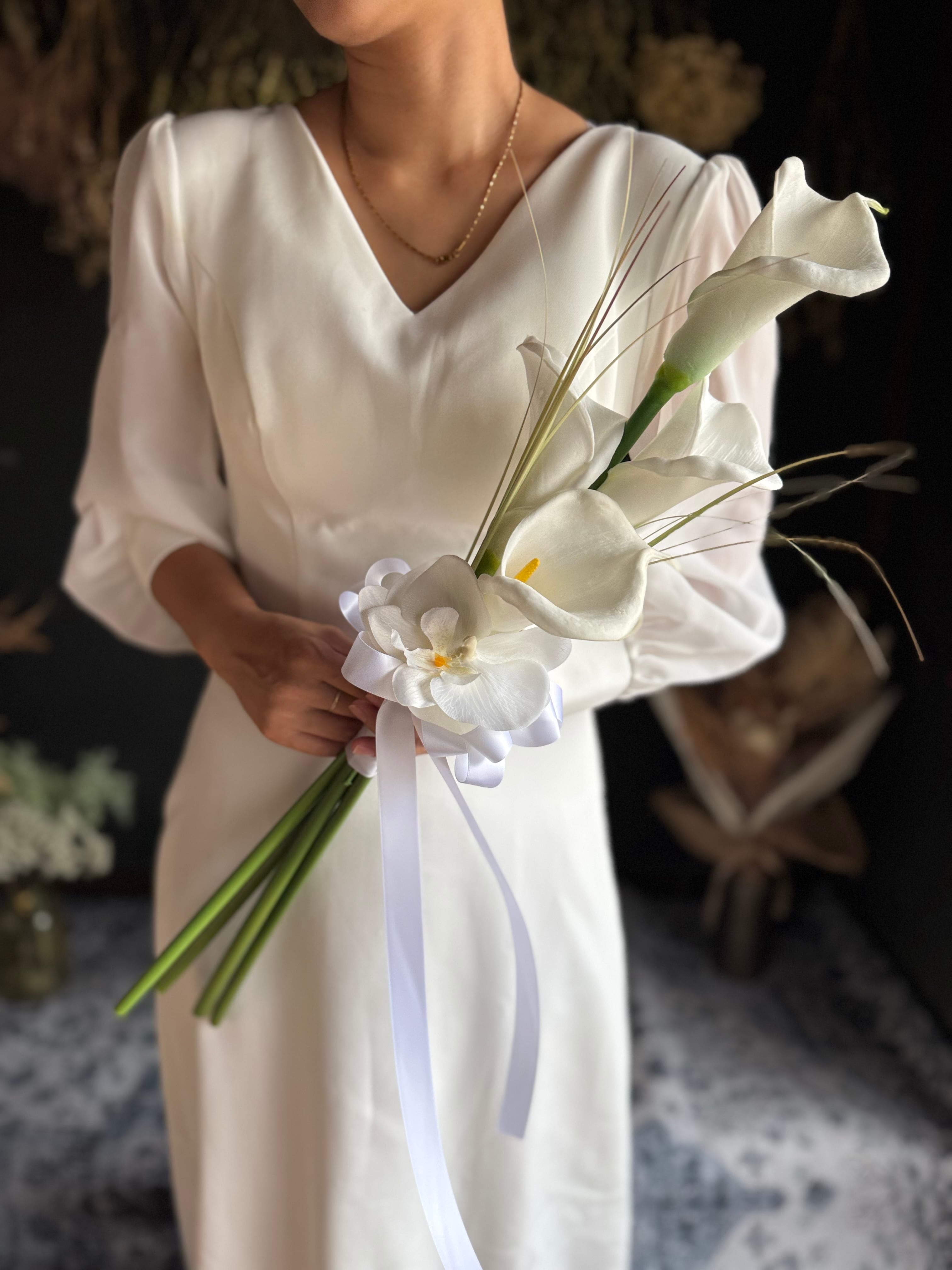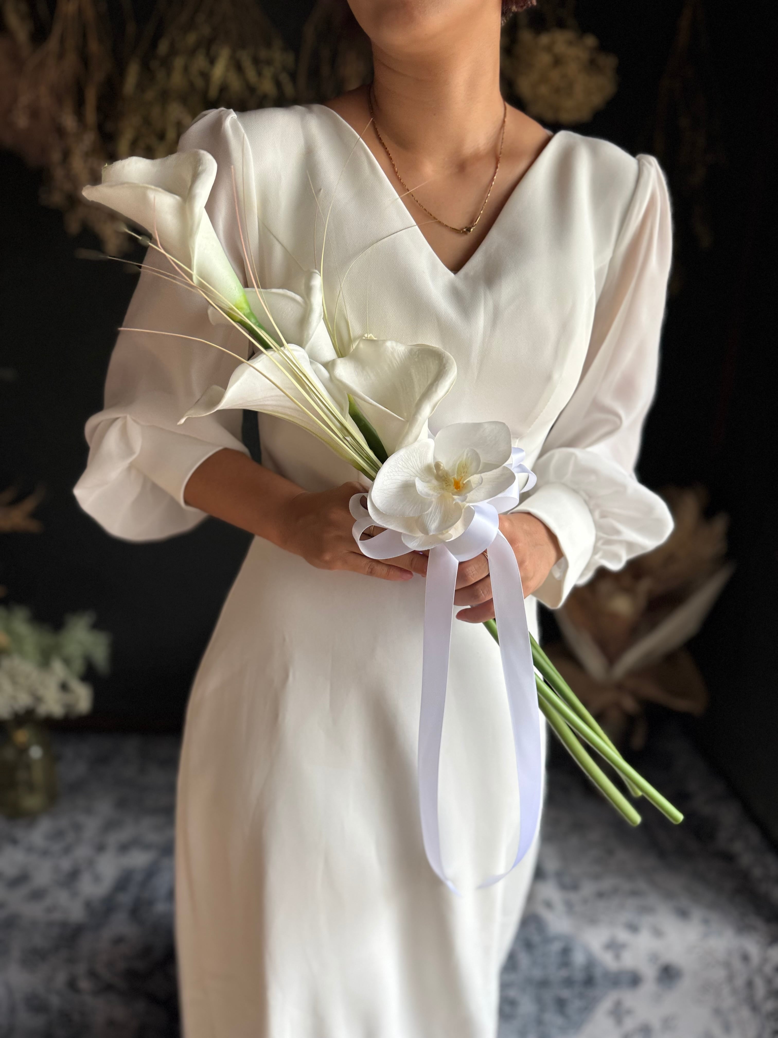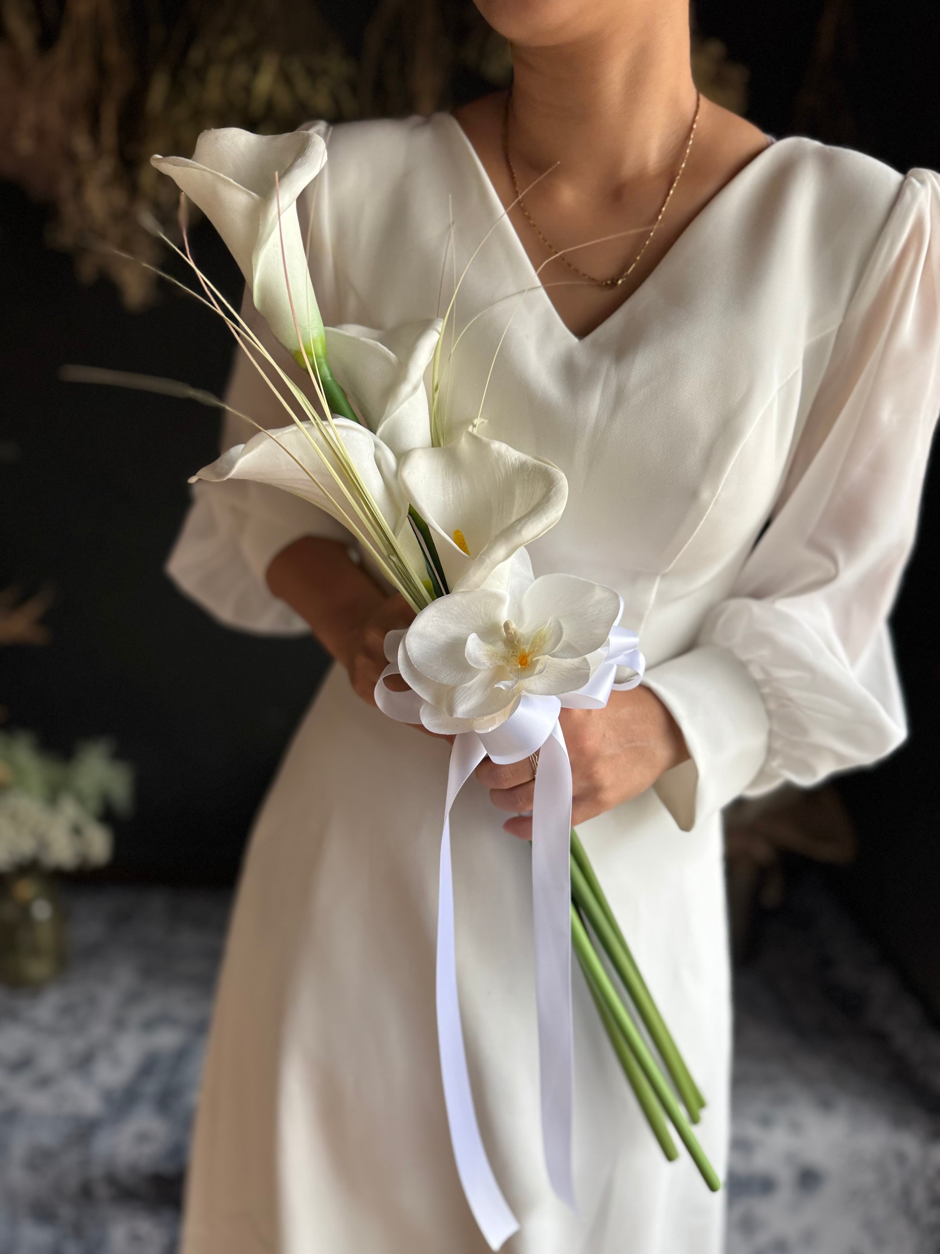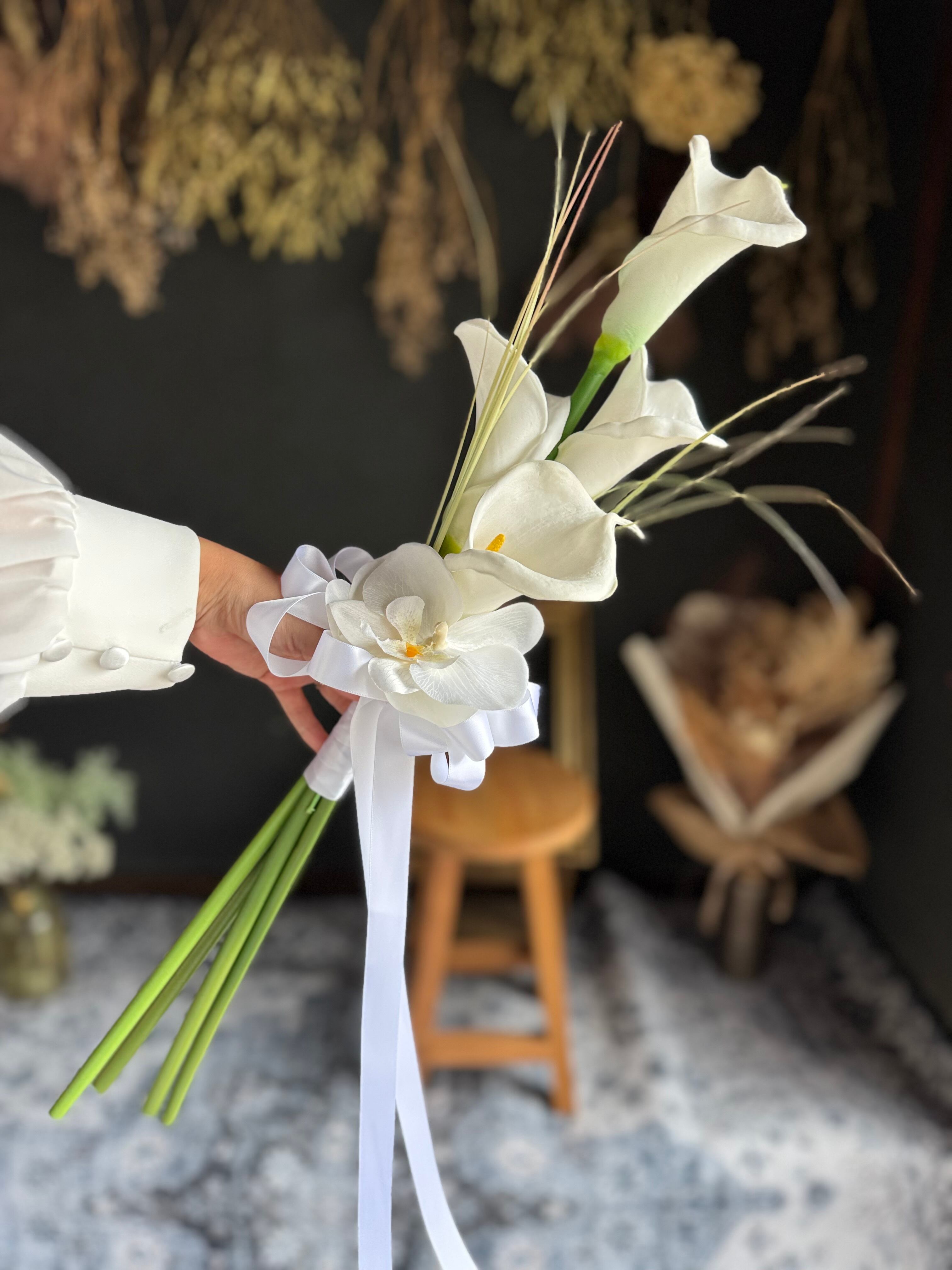 マーメイドラインのドレスや大人っぽいスタイリッシュなドレスにピッタリのブーケです•*・