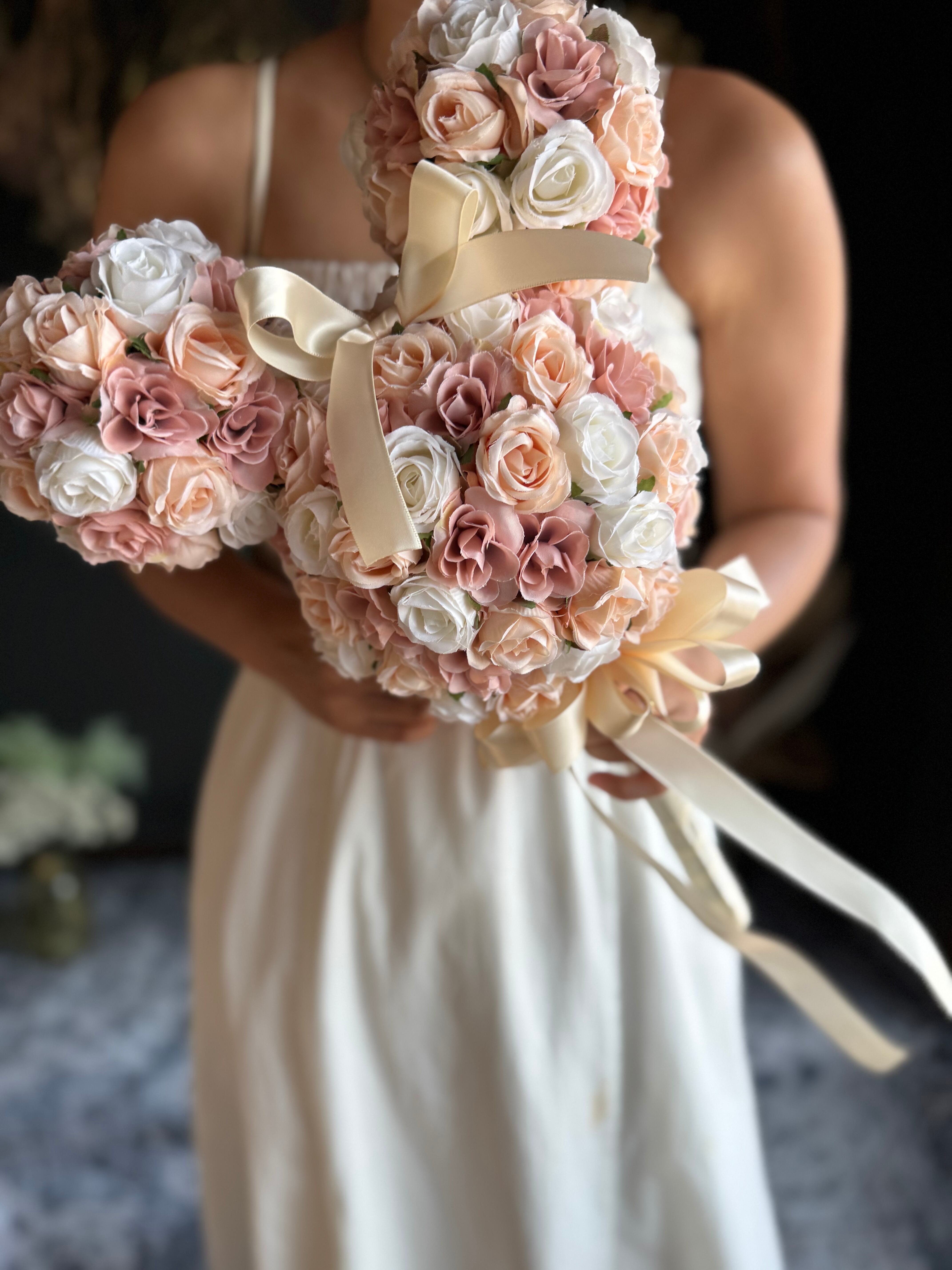 インパクト大で可愛さを最高に演出してくれるステッキブーケ•*・サーモンピンクとベージュのミックスで大人可愛いブーケ•*・